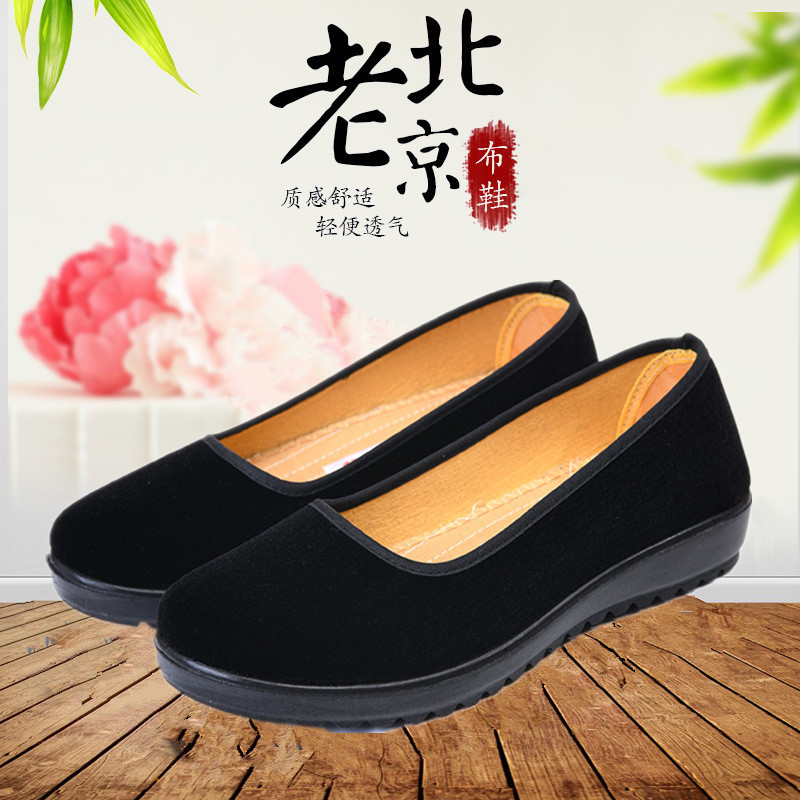 Дышащие и удобные женские туфли, старые пекинские тканевые туфли, женские туфли для работы весной и осенью, черные мягкие туфли
