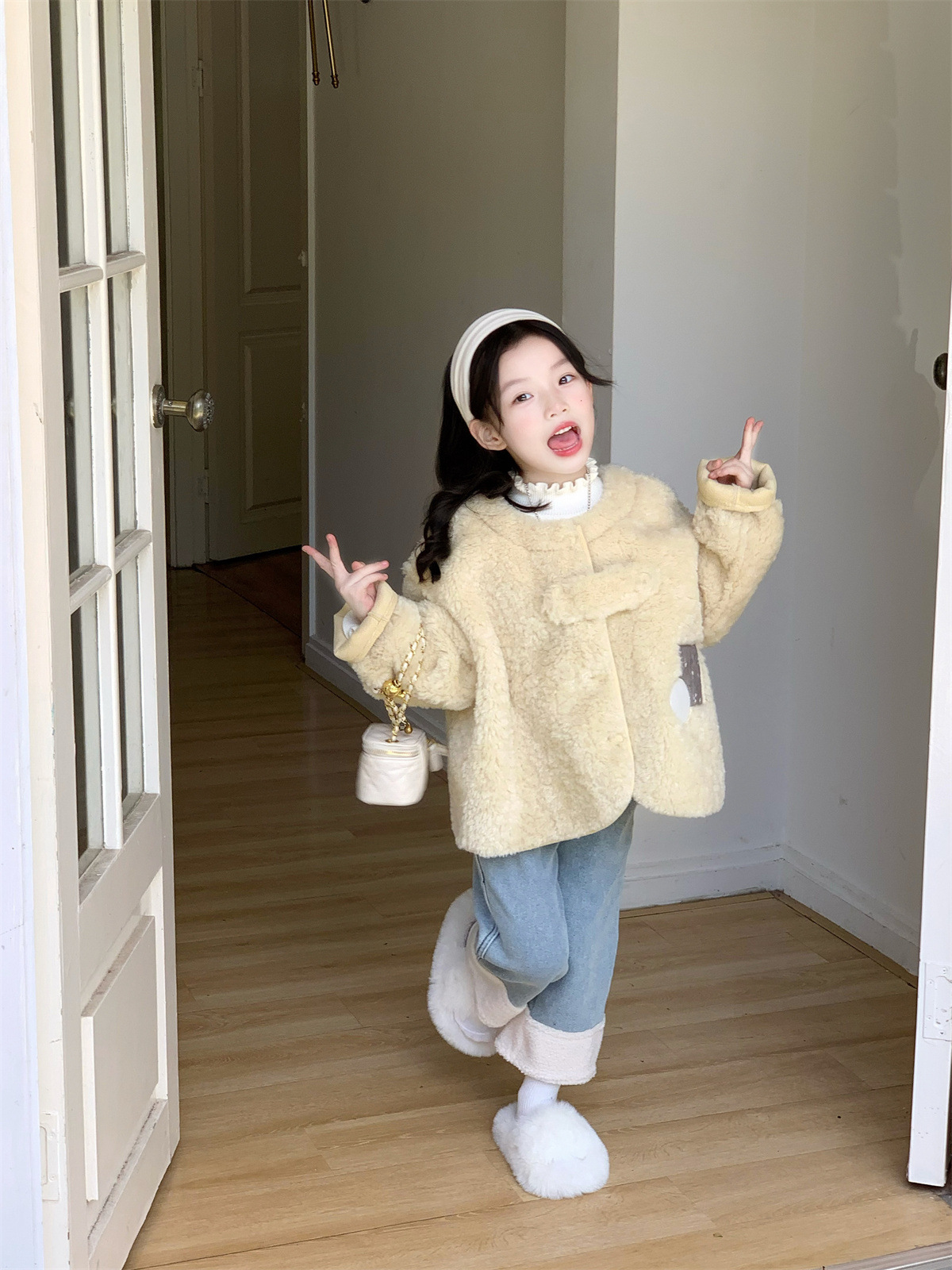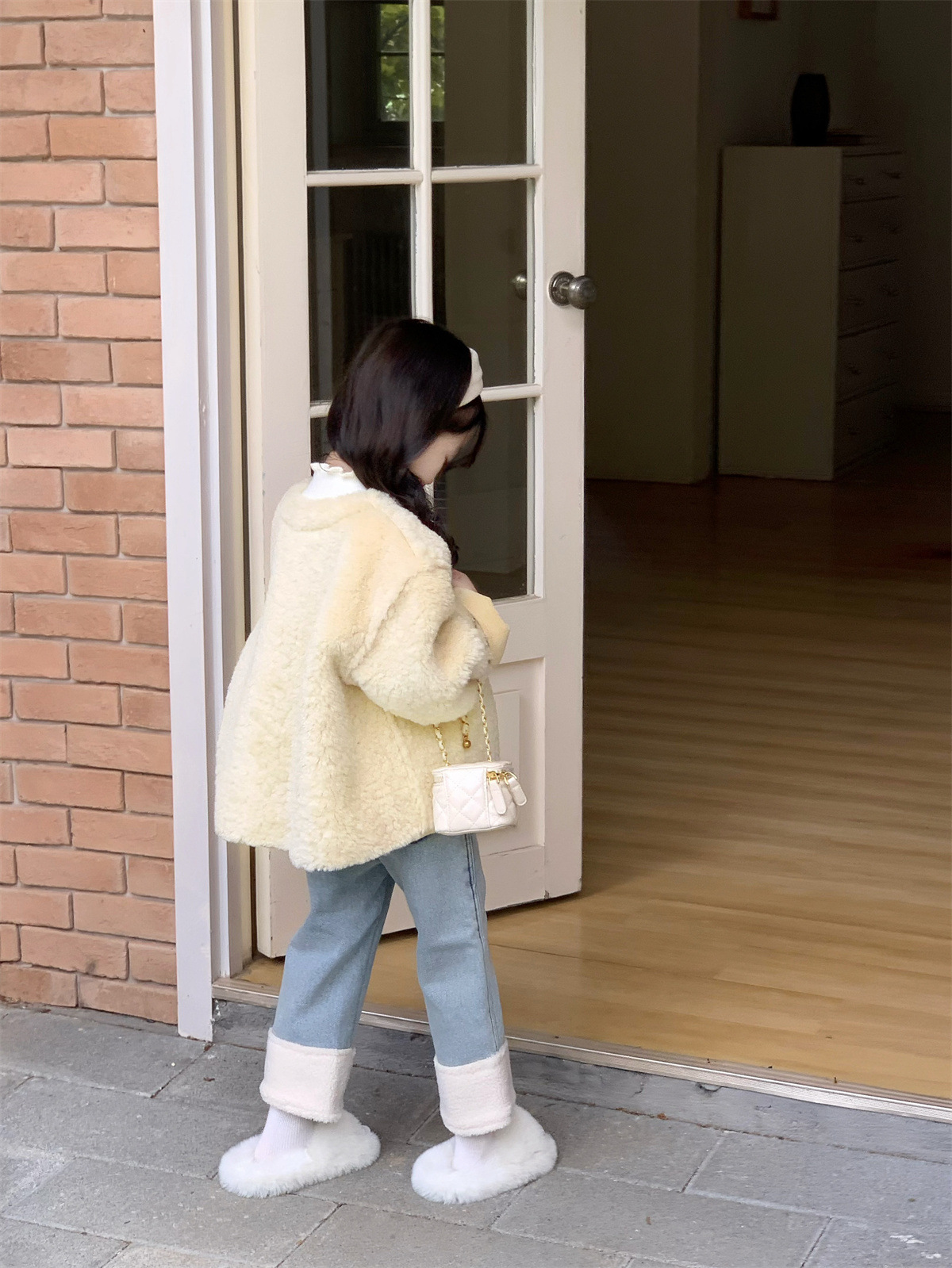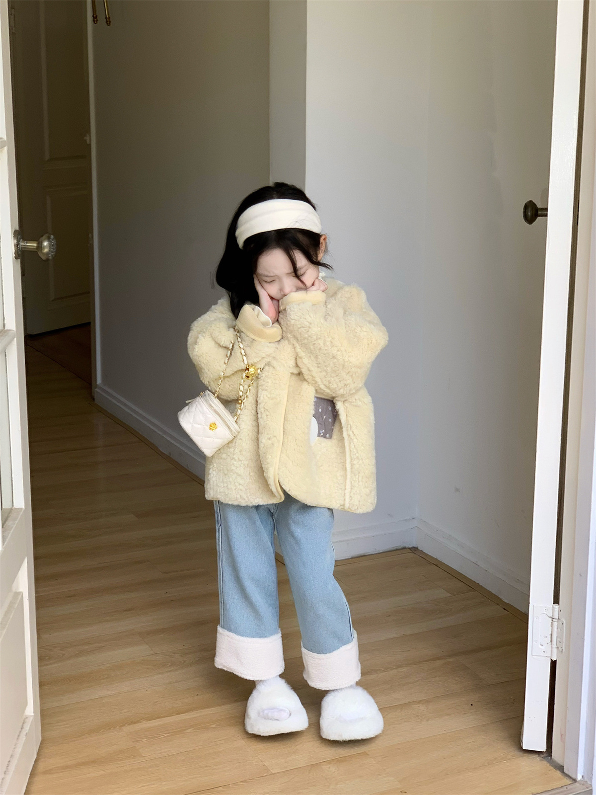 2025 новый зимний стиль девичий меховой комбинезон + водолазка + джинсы с подкладкой из завитого меха