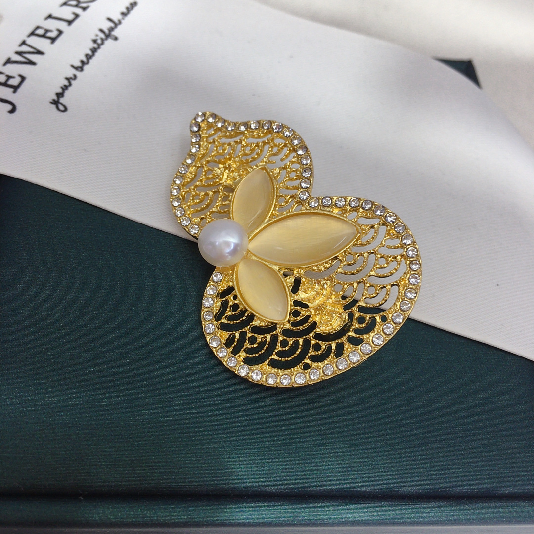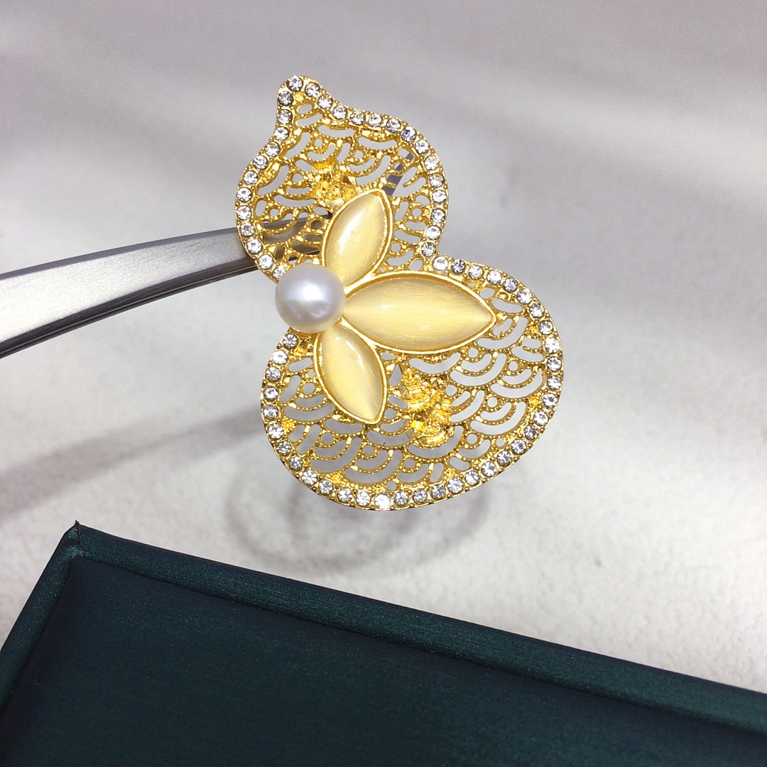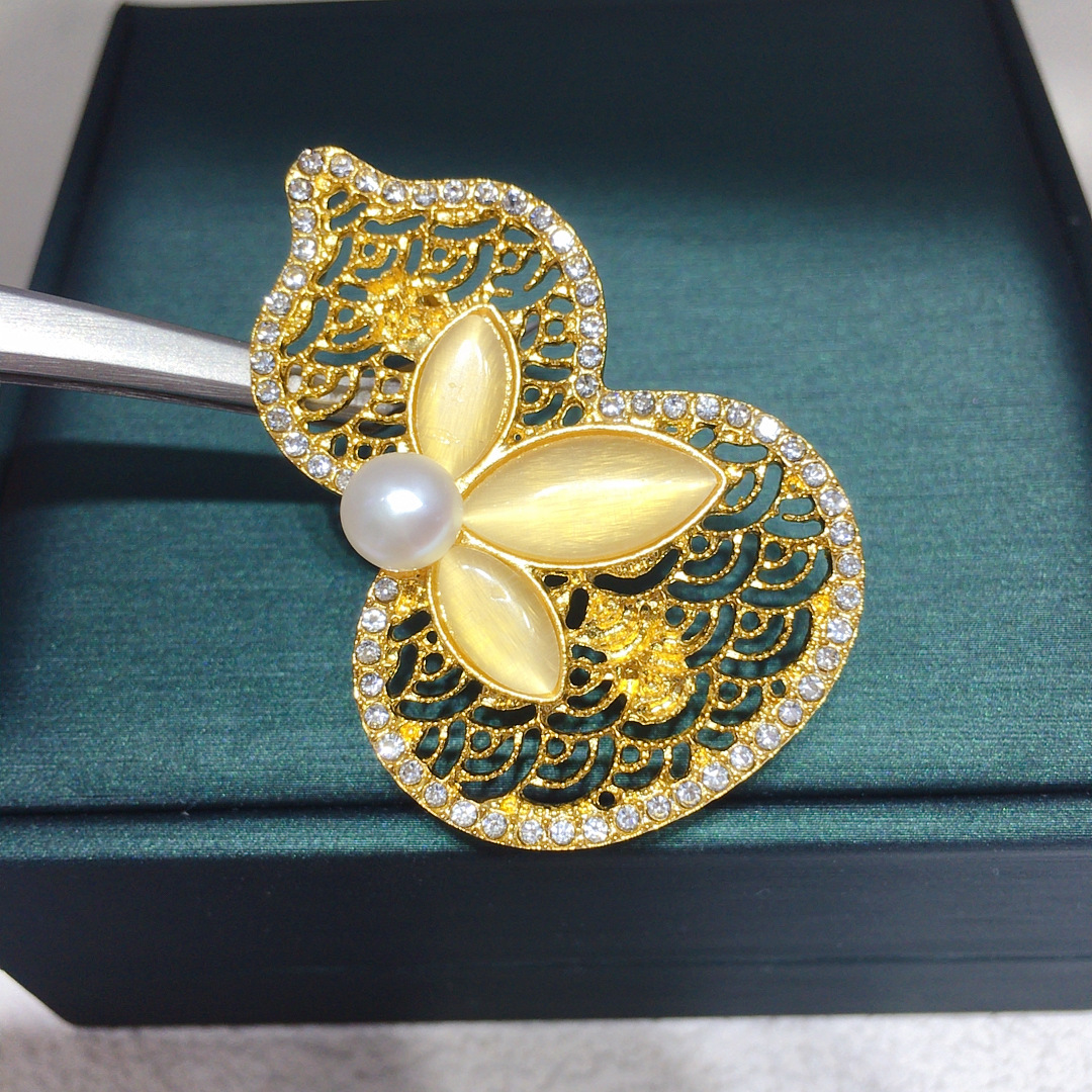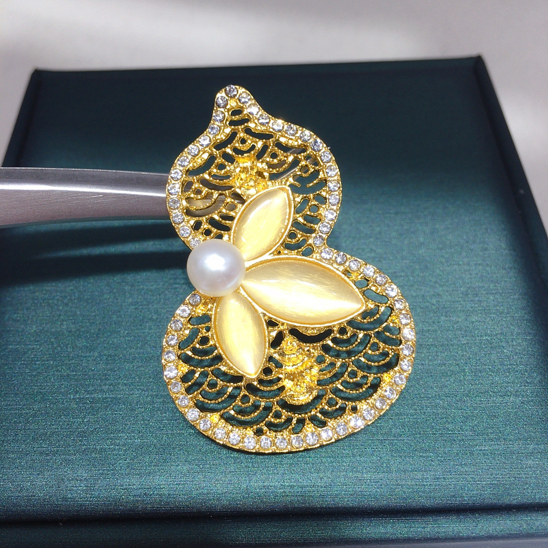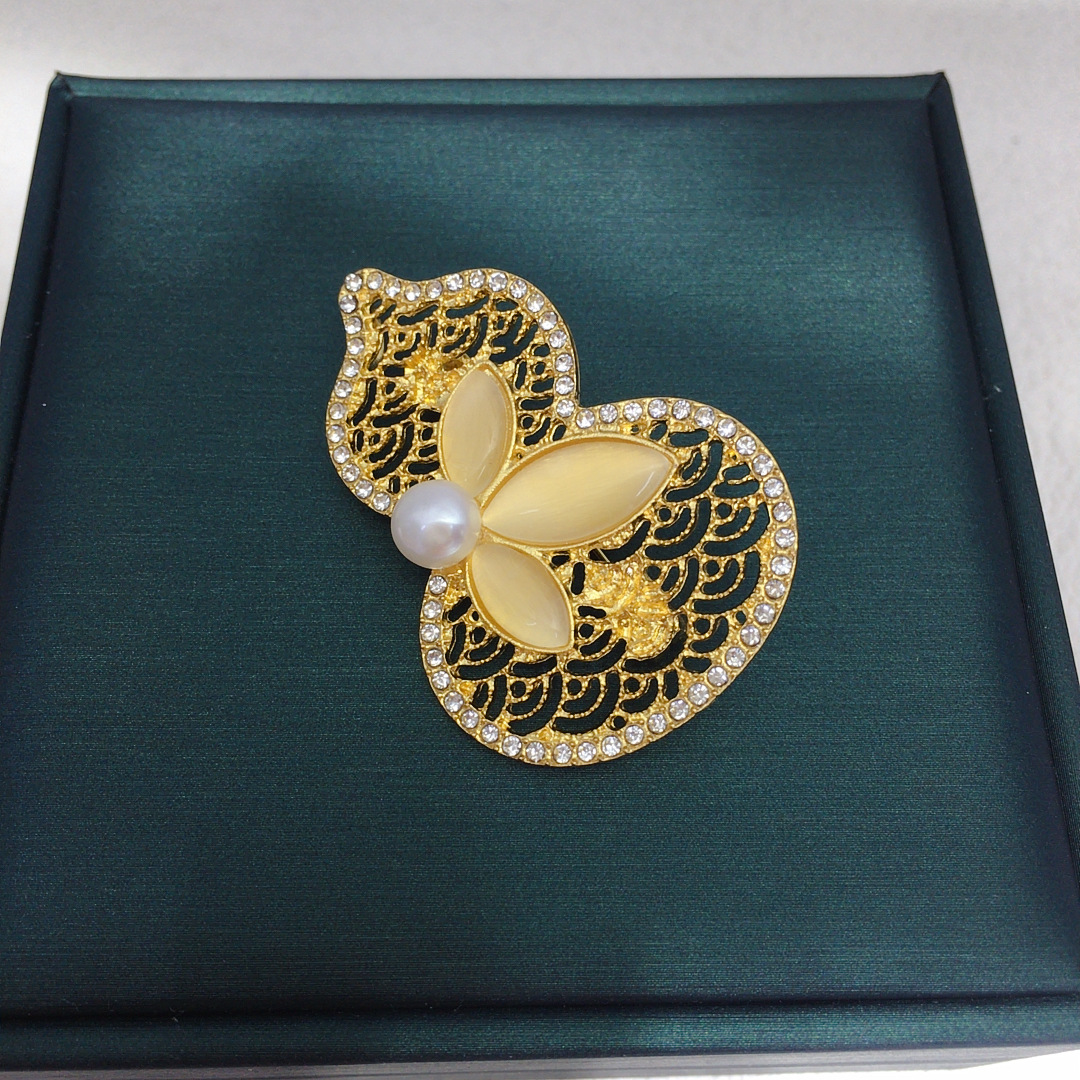 Брошь из натурального пресноводного жемчуга в китайском стиле тыква удачи и благополучия осенне-зимняя модная универсальная оптовая продажа