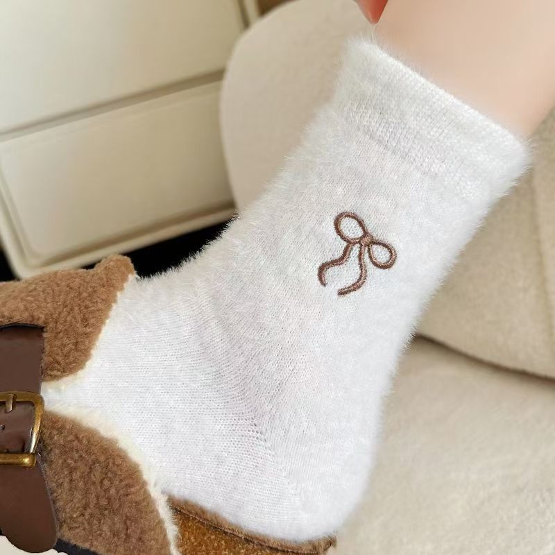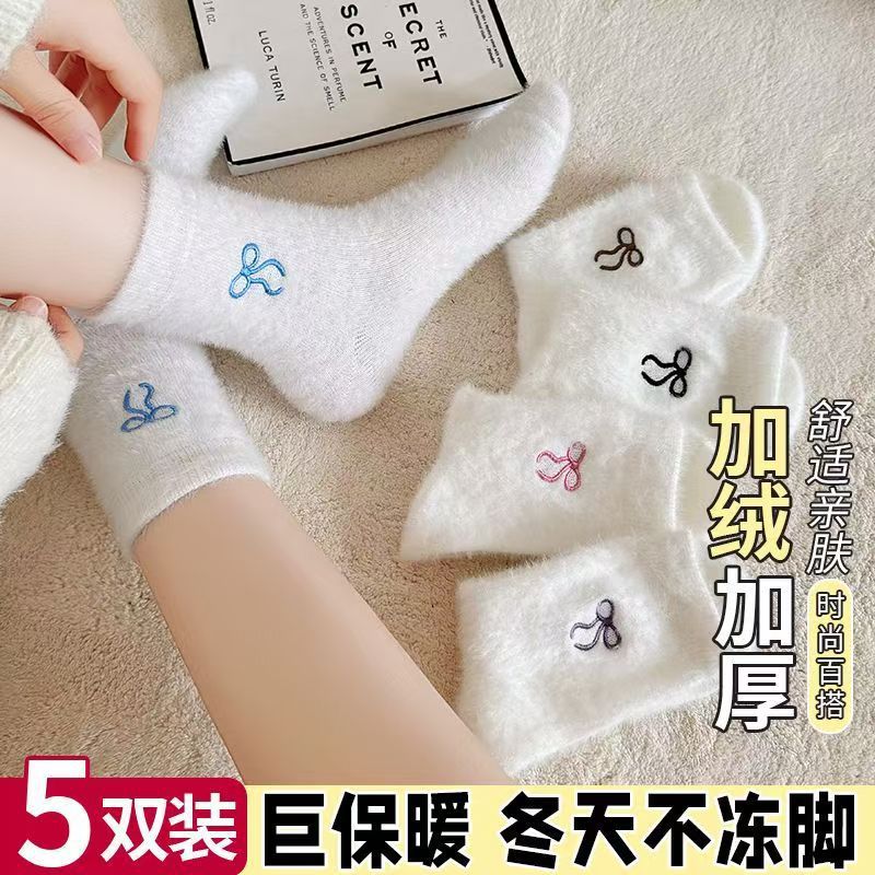 Женские носки до середины икры Zhujie, осень и зима, новые, белые, универсальные, модные, из мутона, теплые с дополнительным флисом и утолщением