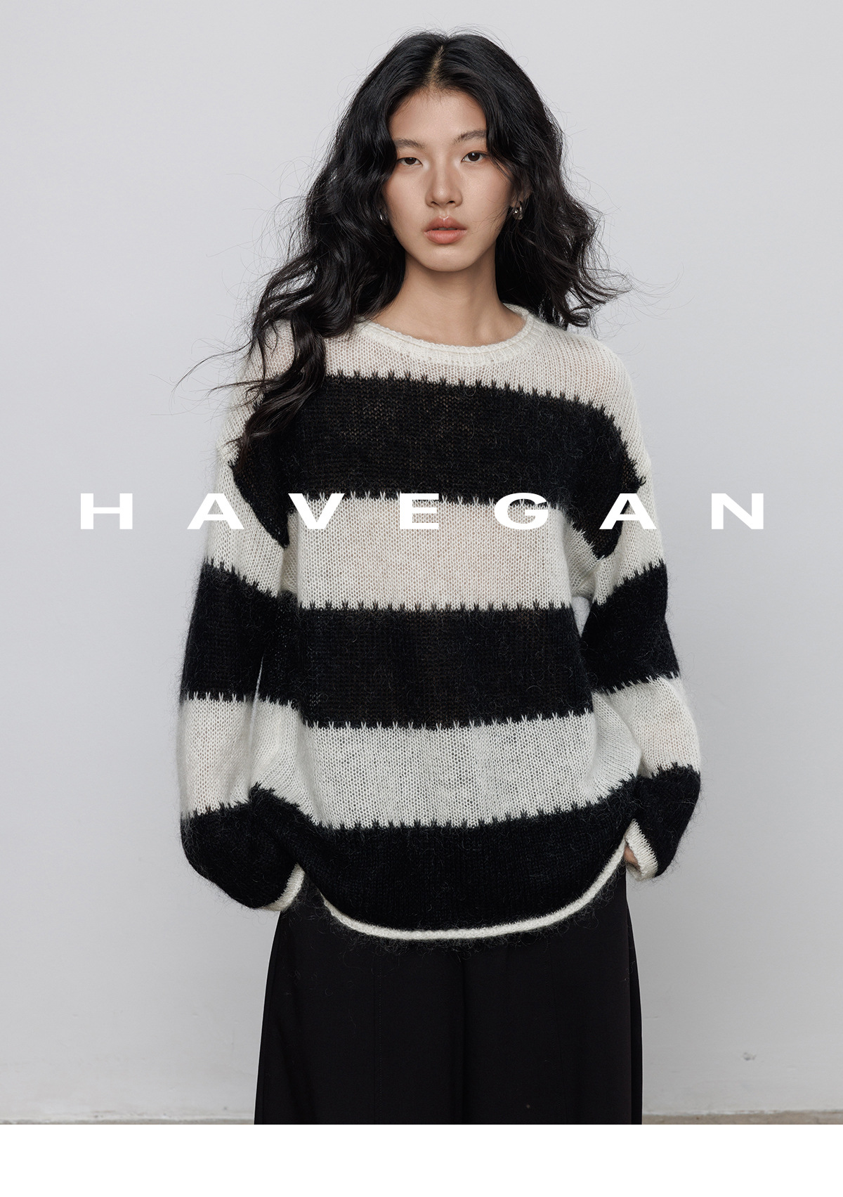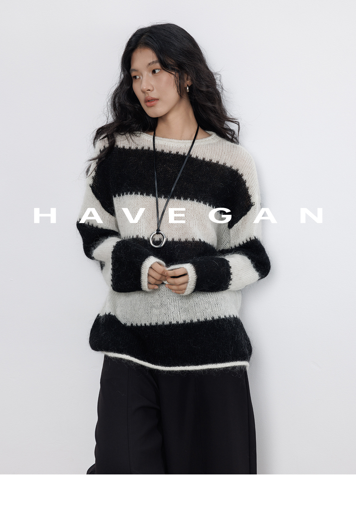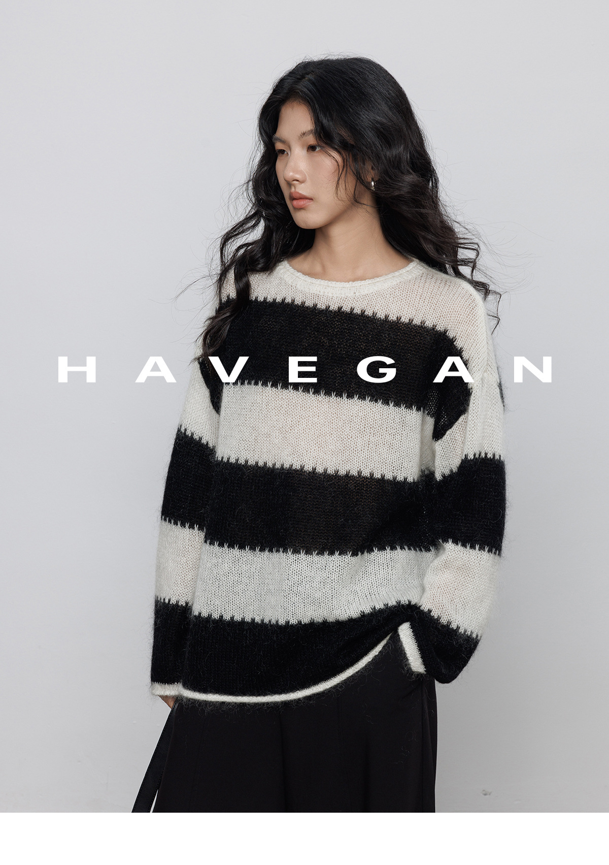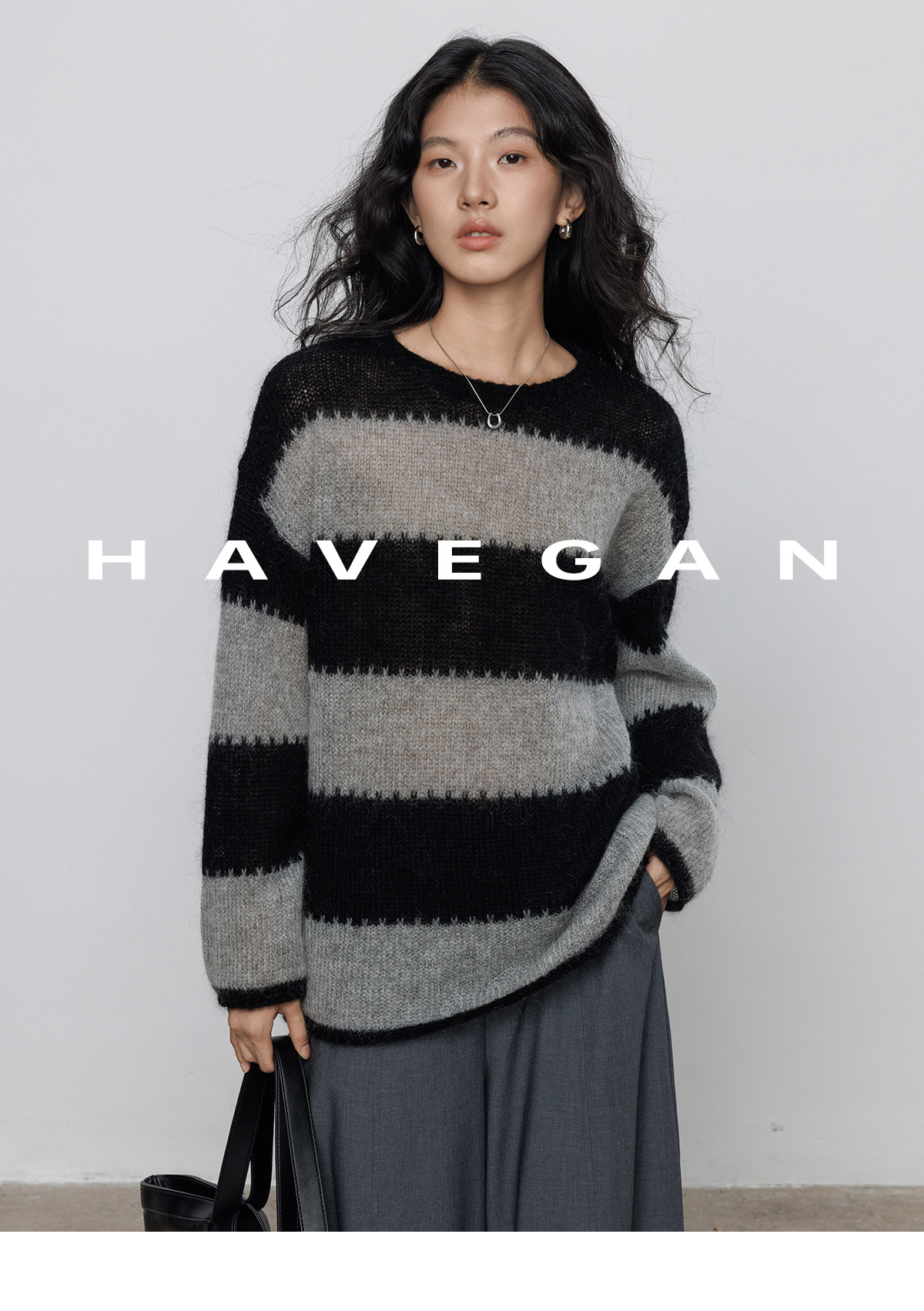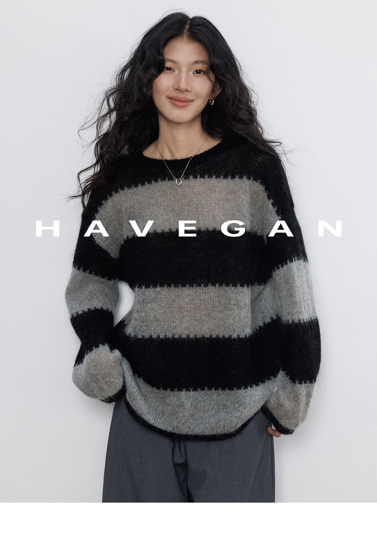 Havegan осенний свитер с круглым вырезом, длинный рукав, широкие полосы, женский, мохеровый, повседневный топ