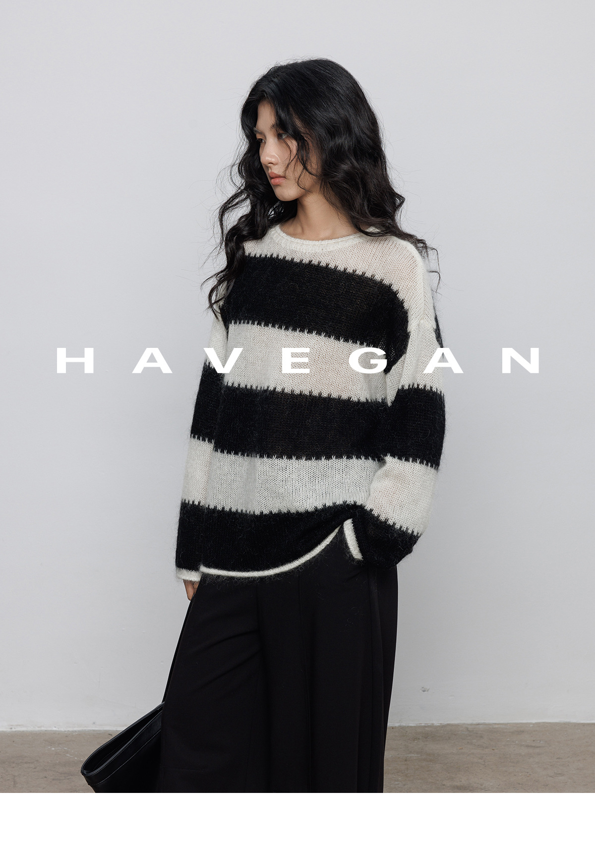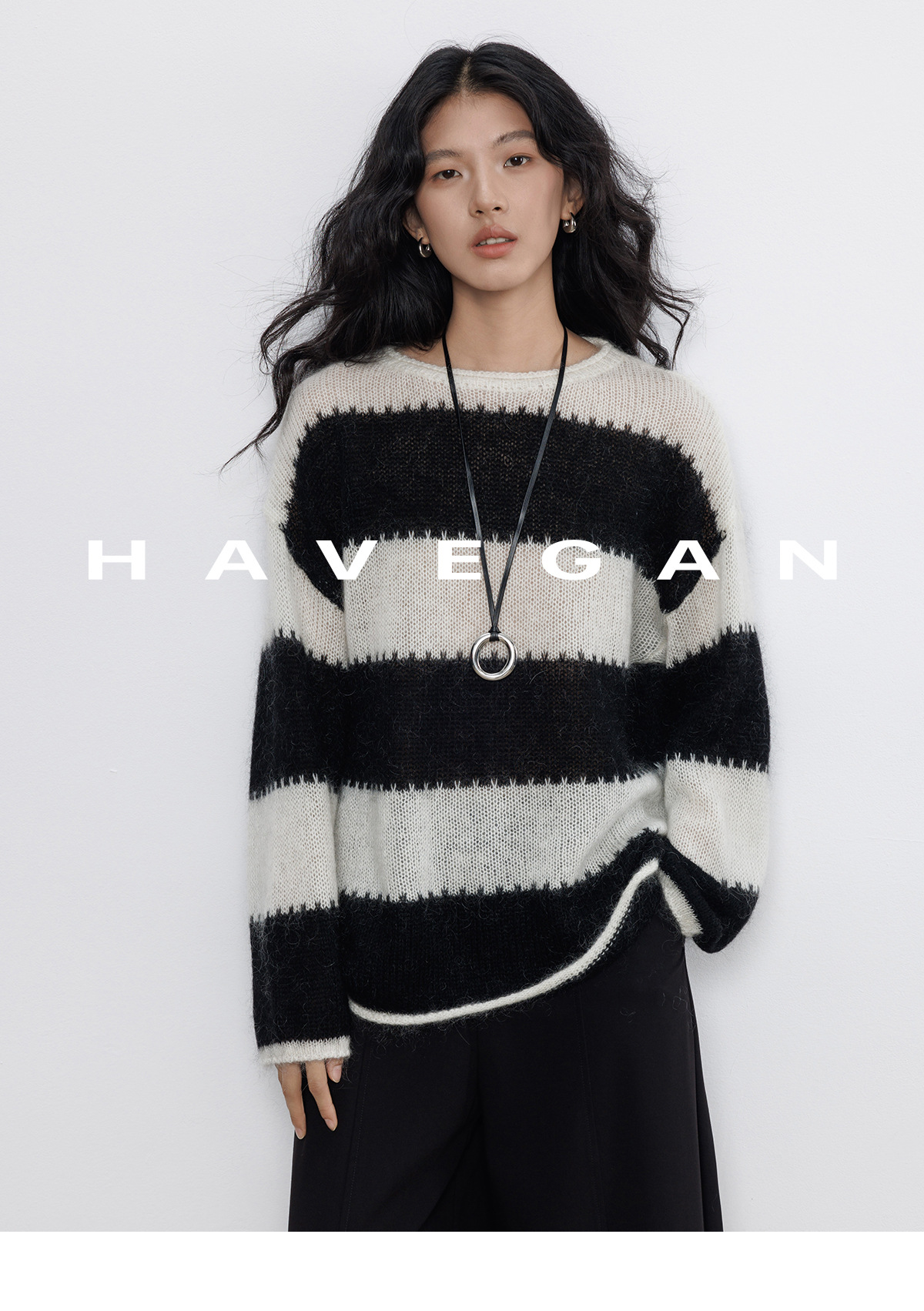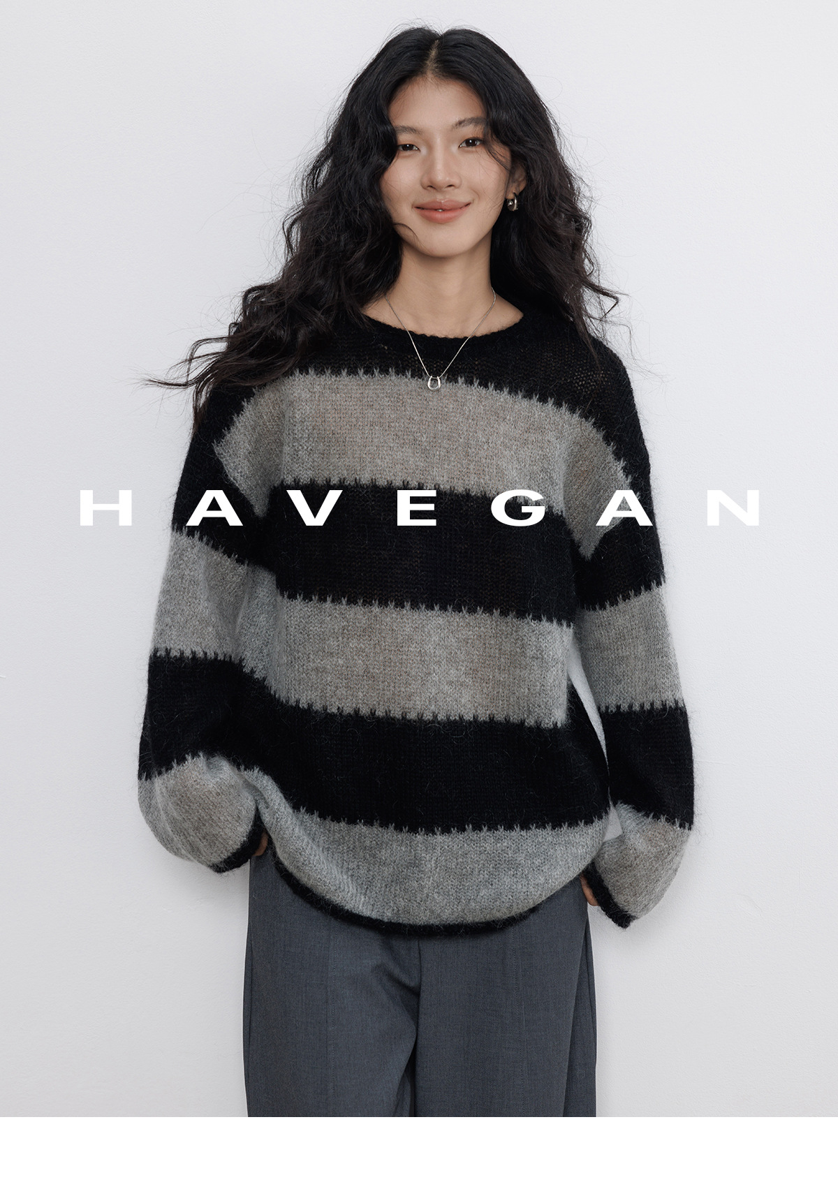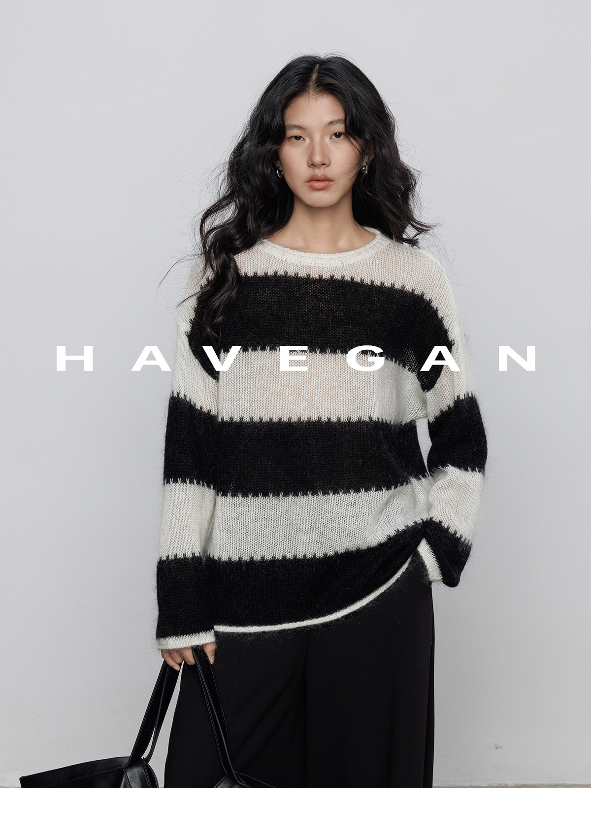 Havegan осенний свитер с круглым вырезом, длинный рукав, широкие полосы, женский, мохеровый, повседневный топ