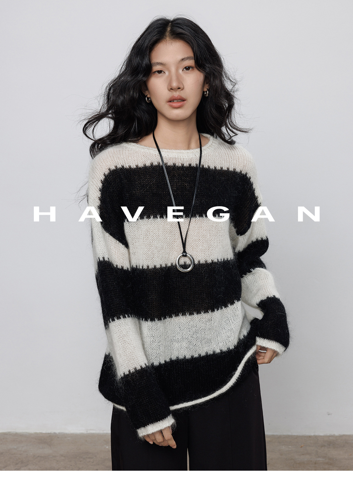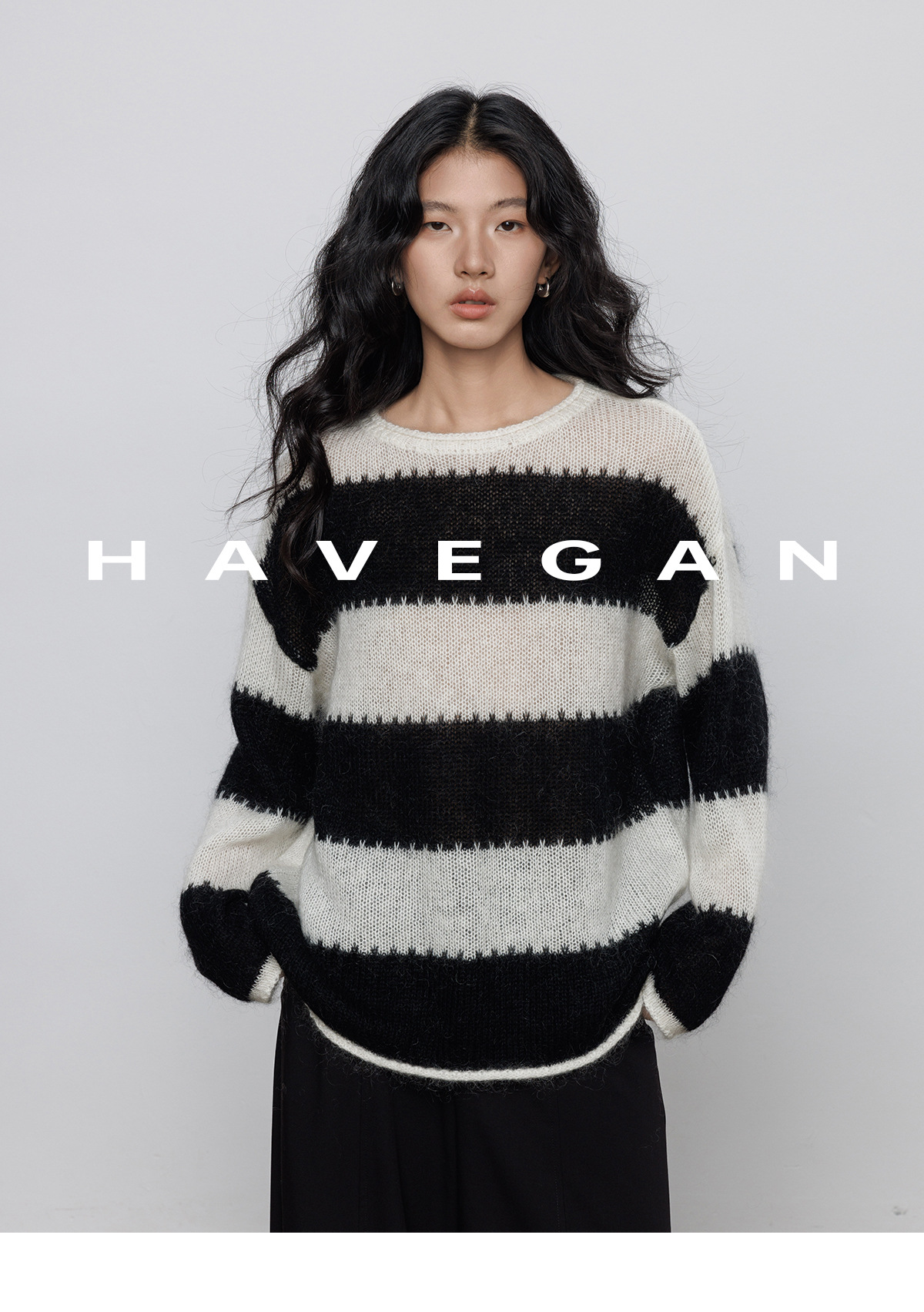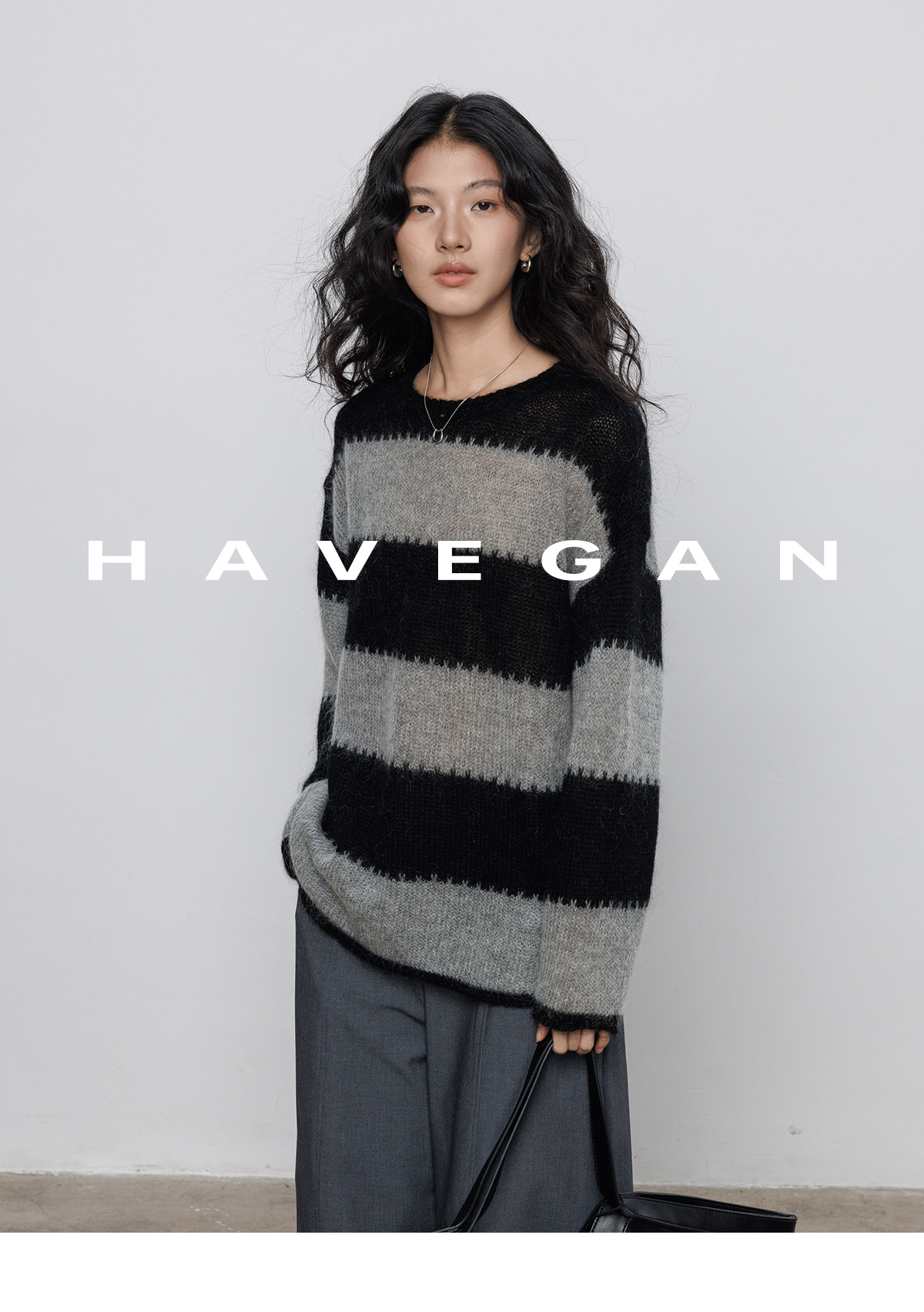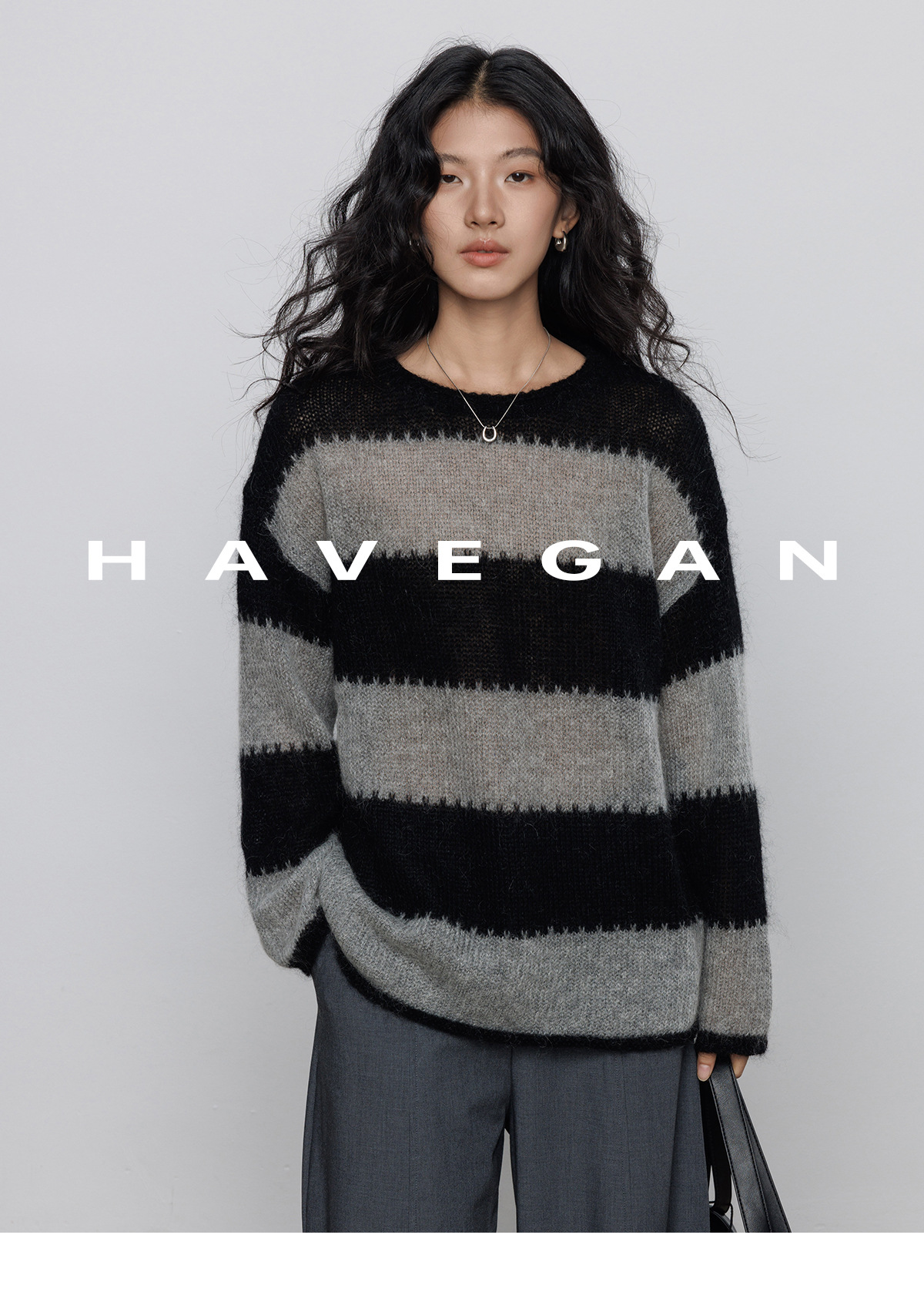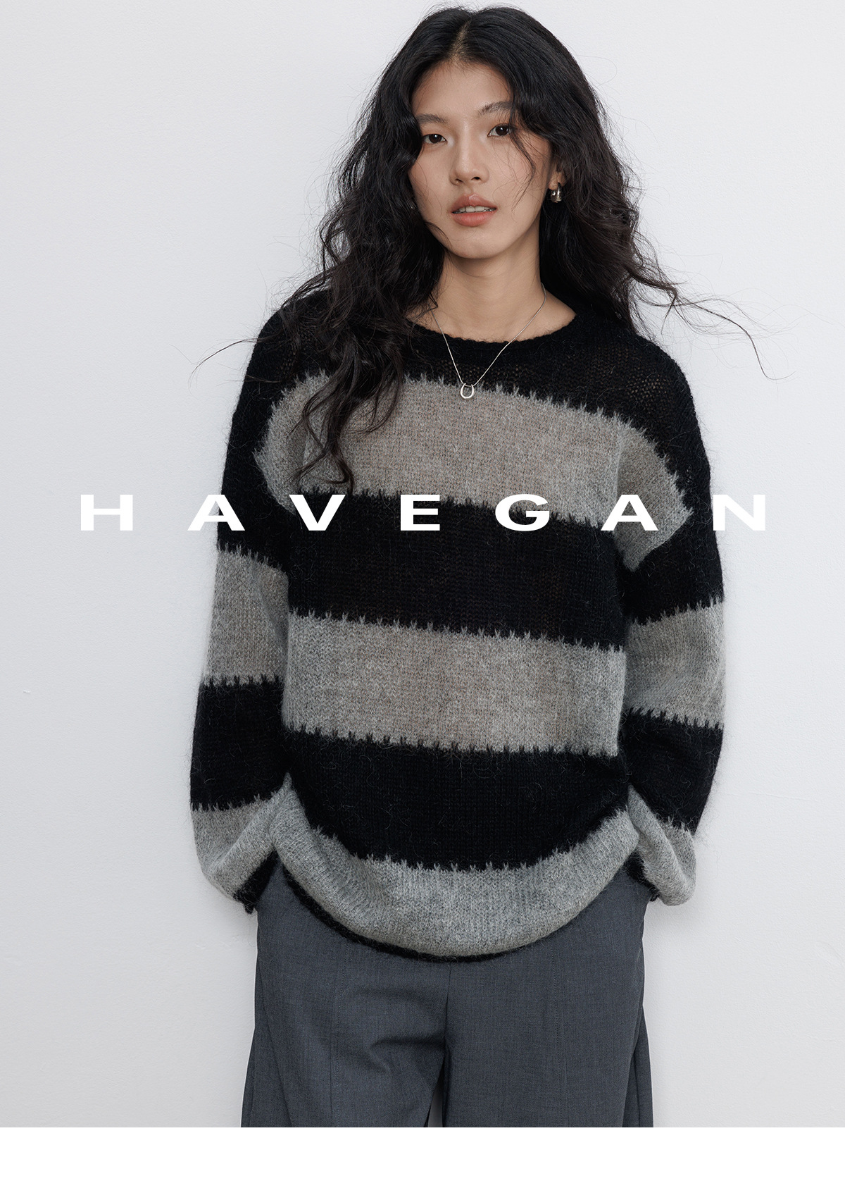 Havegan осенний свитер с круглым вырезом, длинный рукав, широкие полосы, женский, мохеровый, повседневный топ
