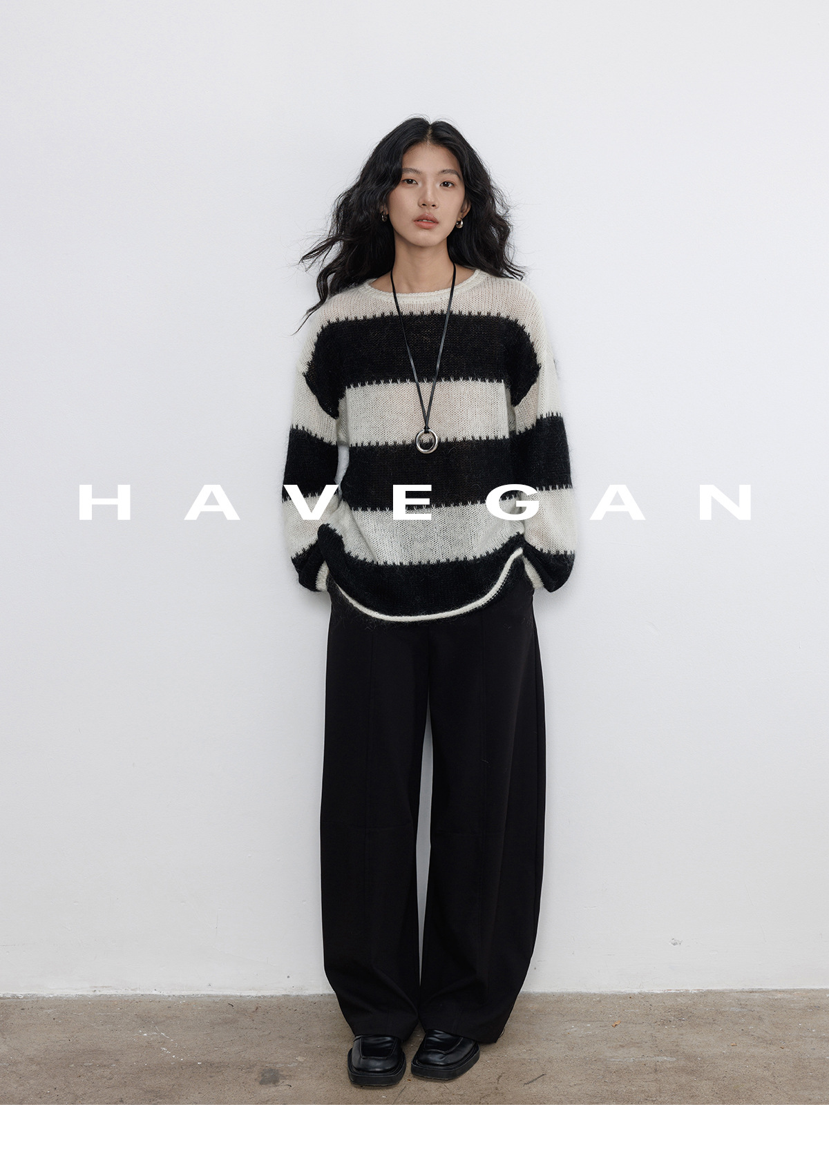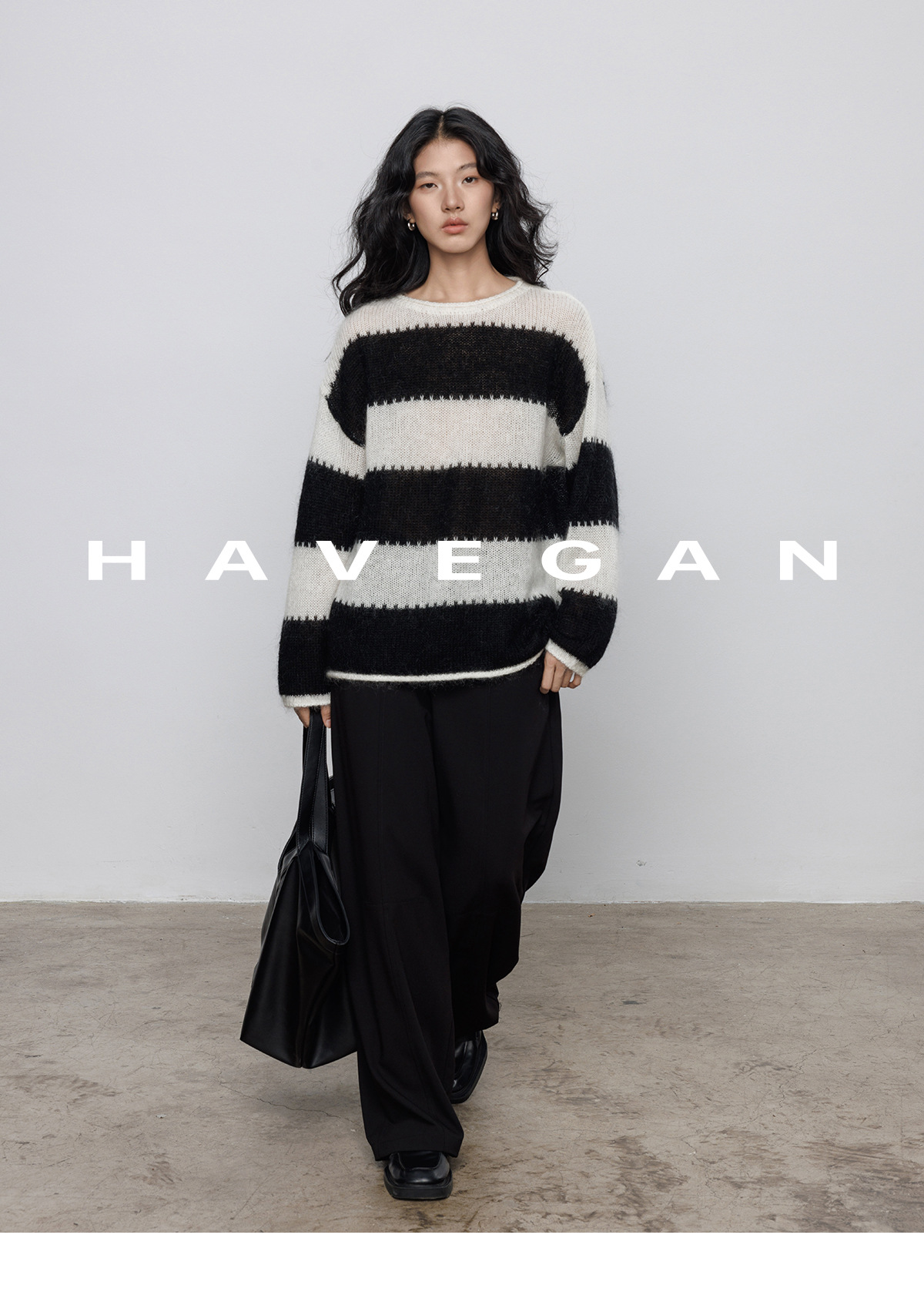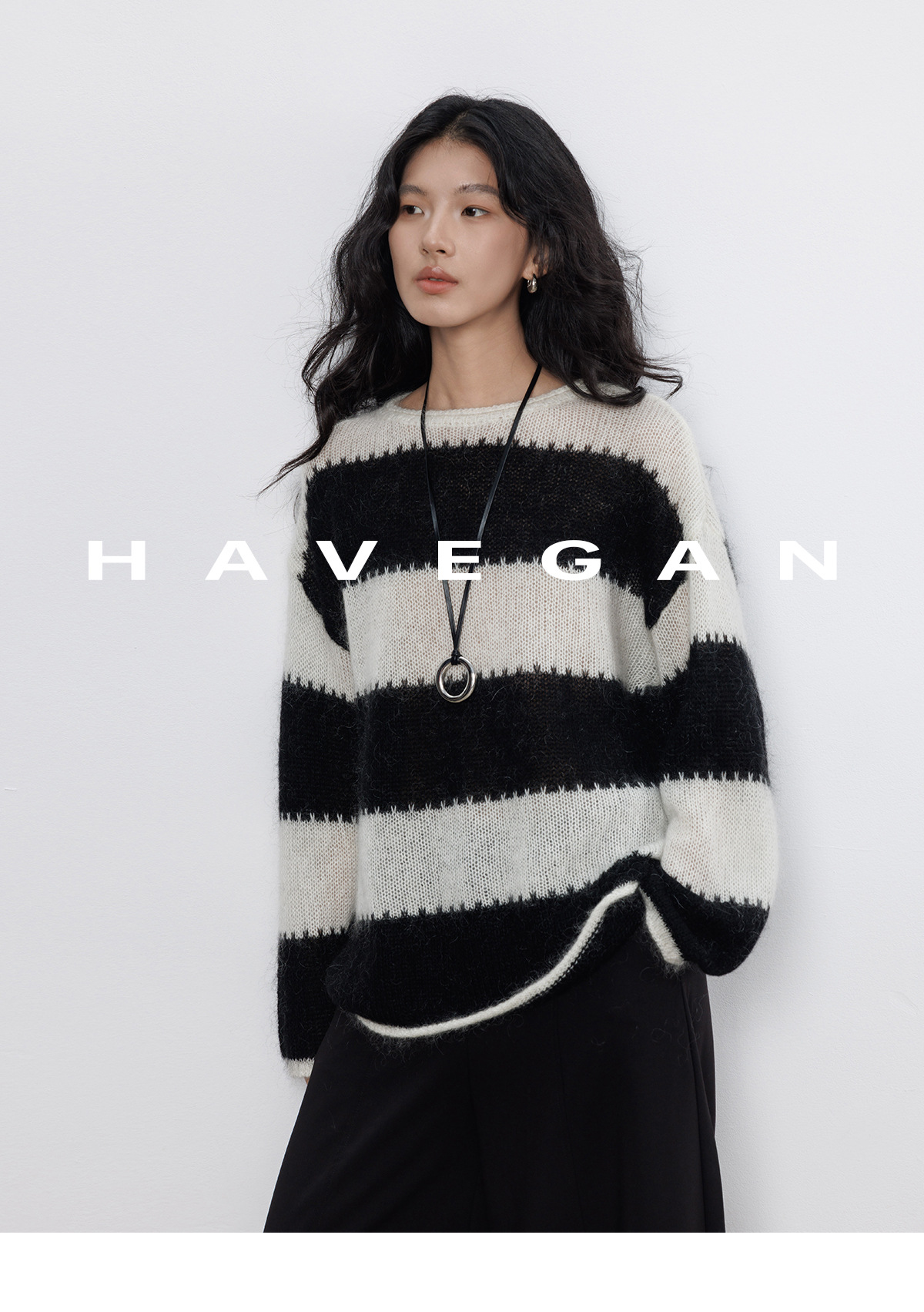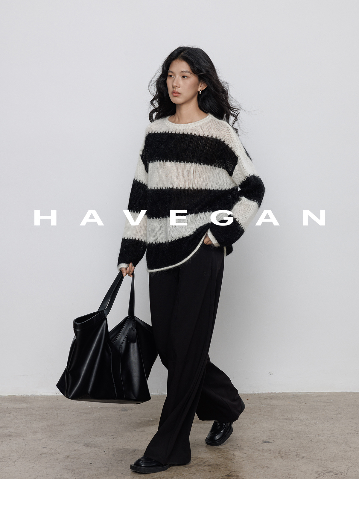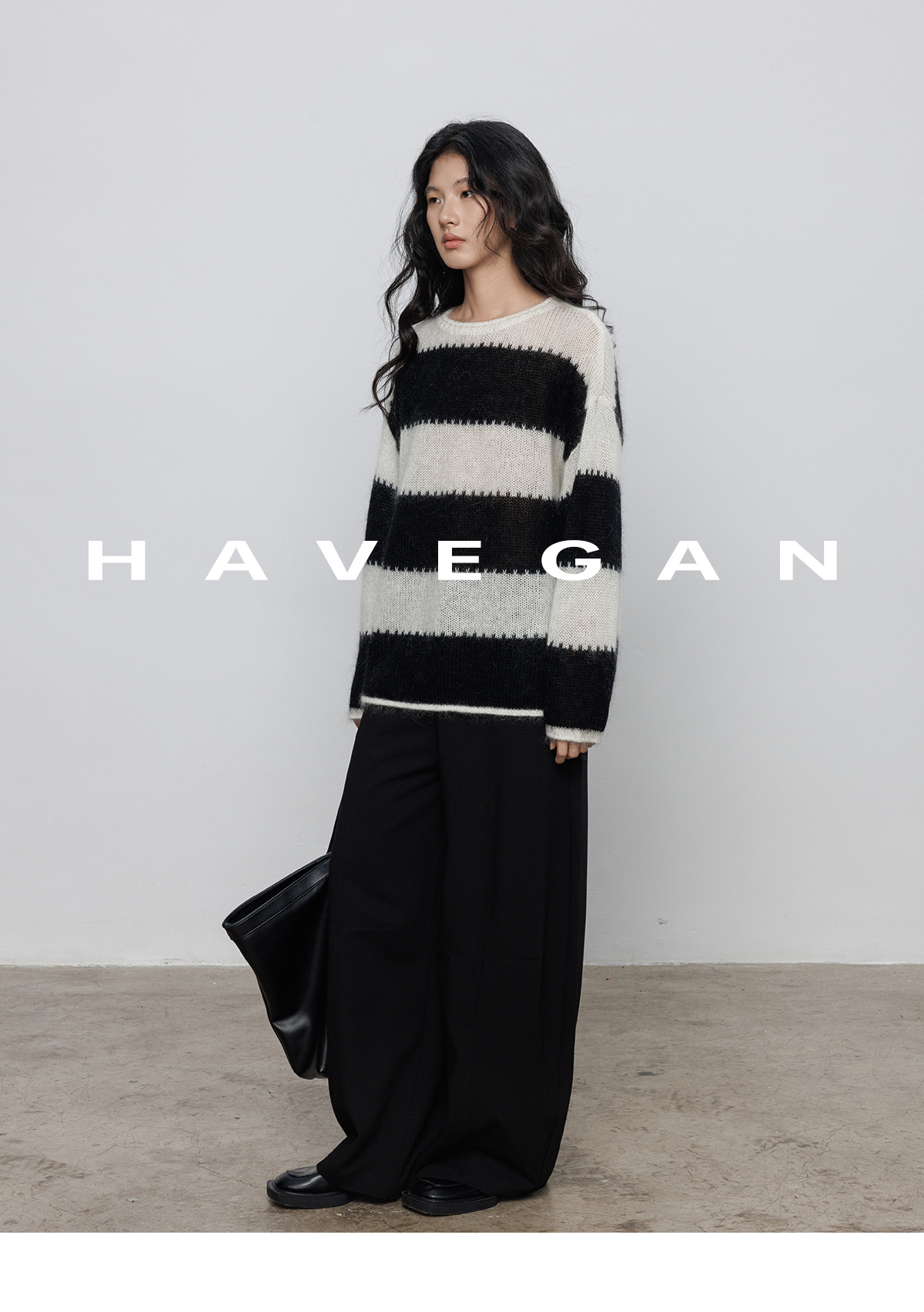 Havegan осенний свитер с круглым вырезом, длинный рукав, широкие полосы, женский, мохеровый, повседневный топ