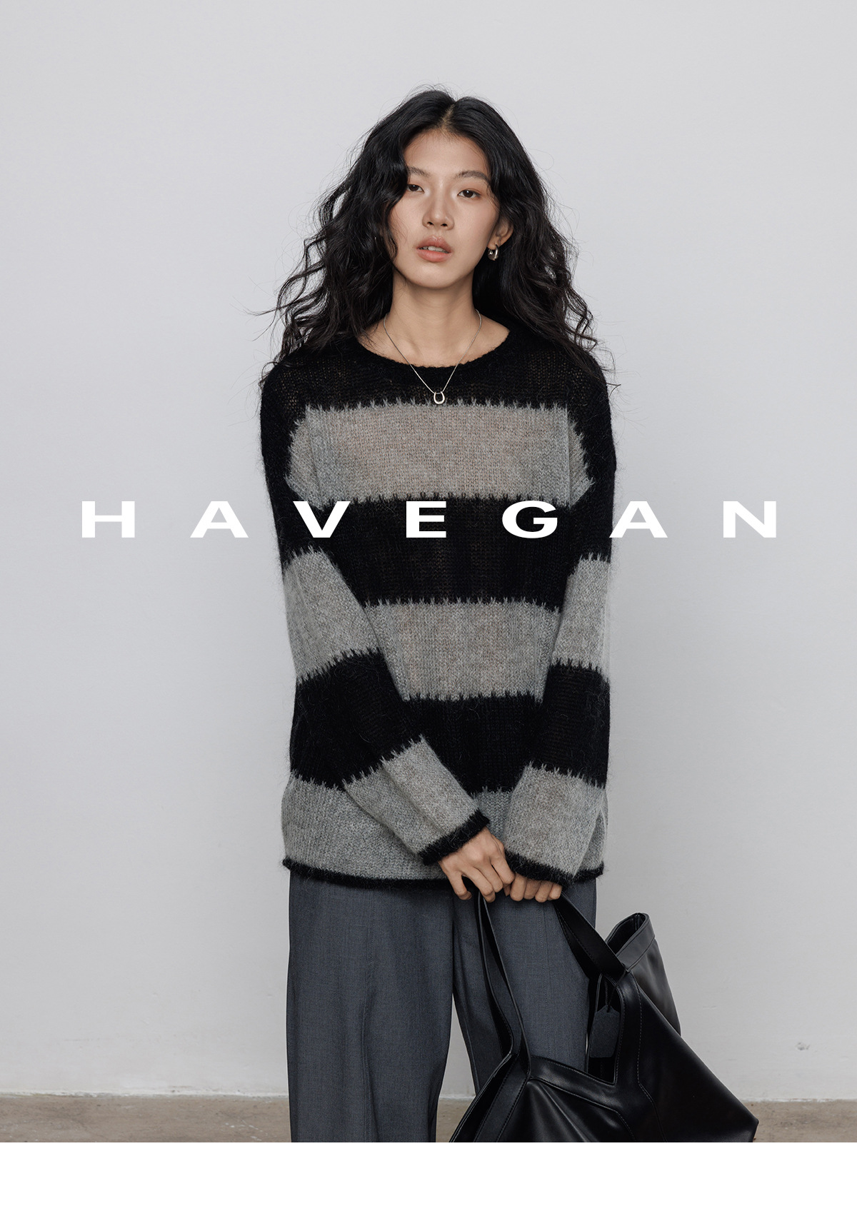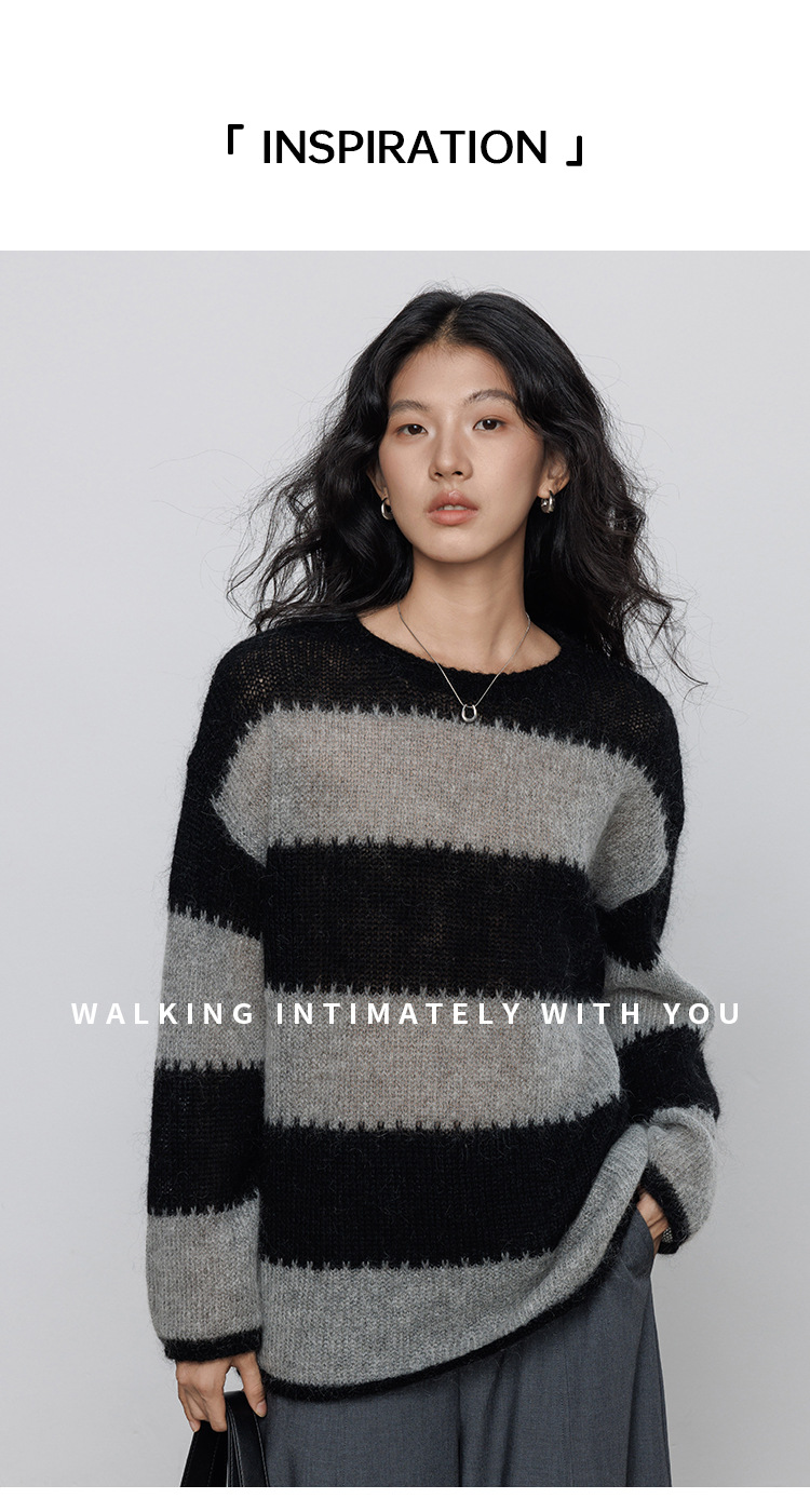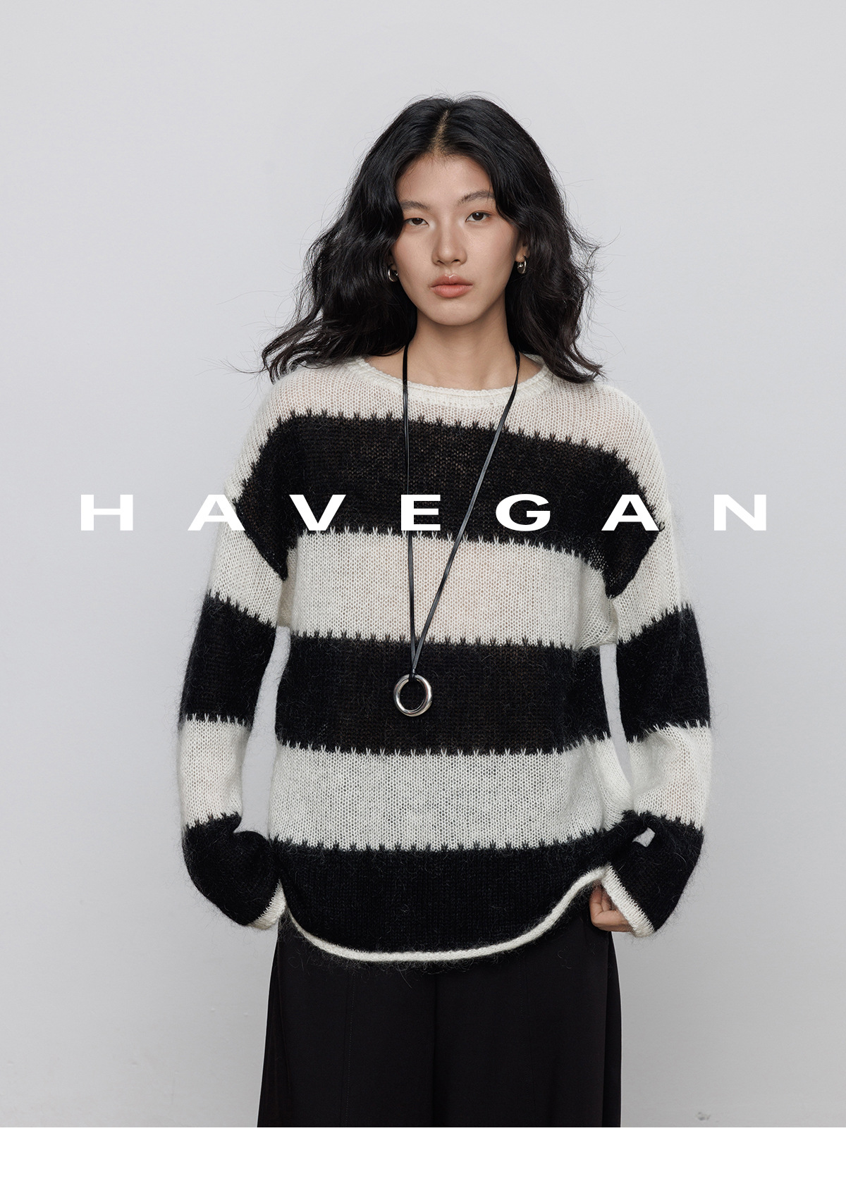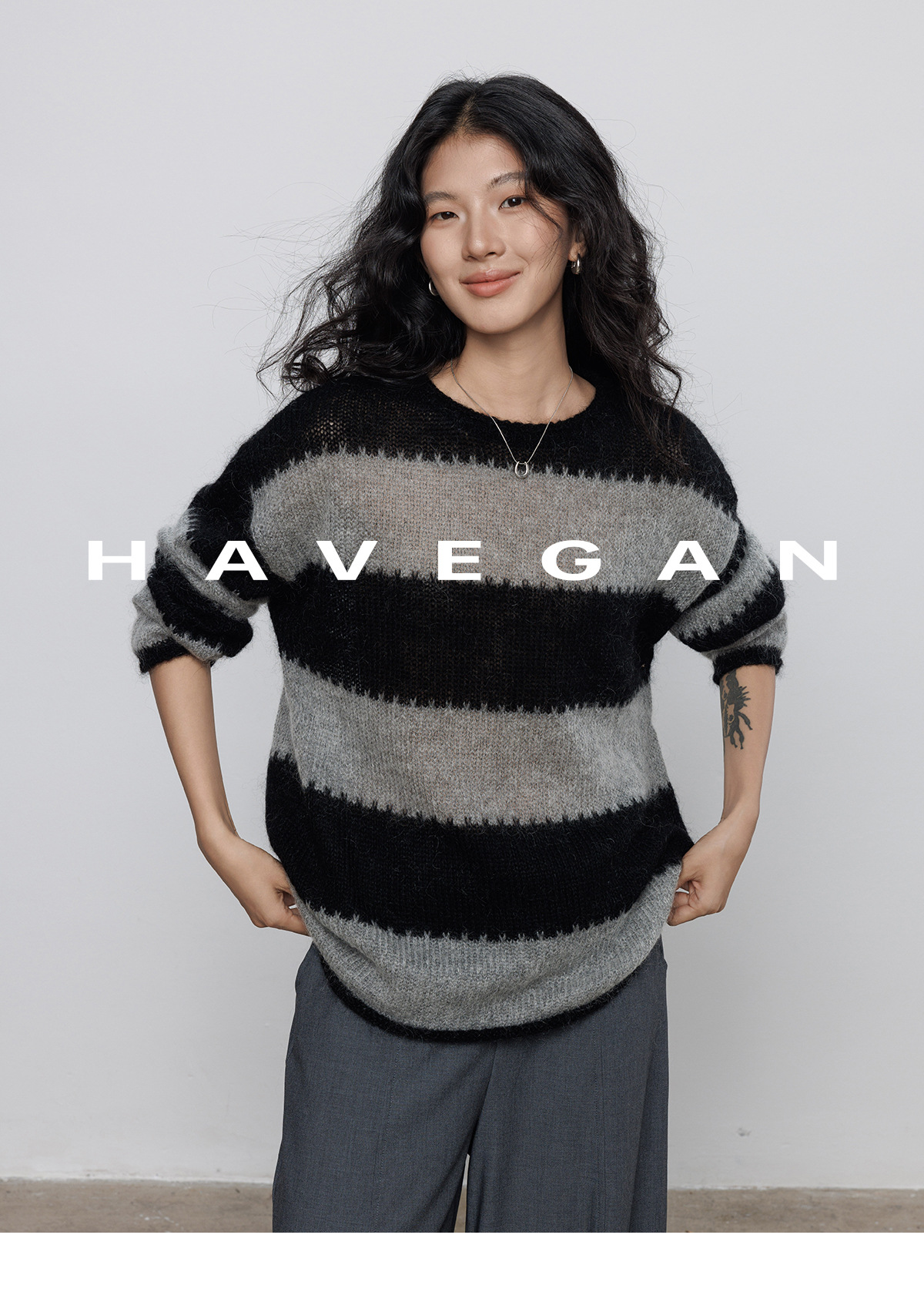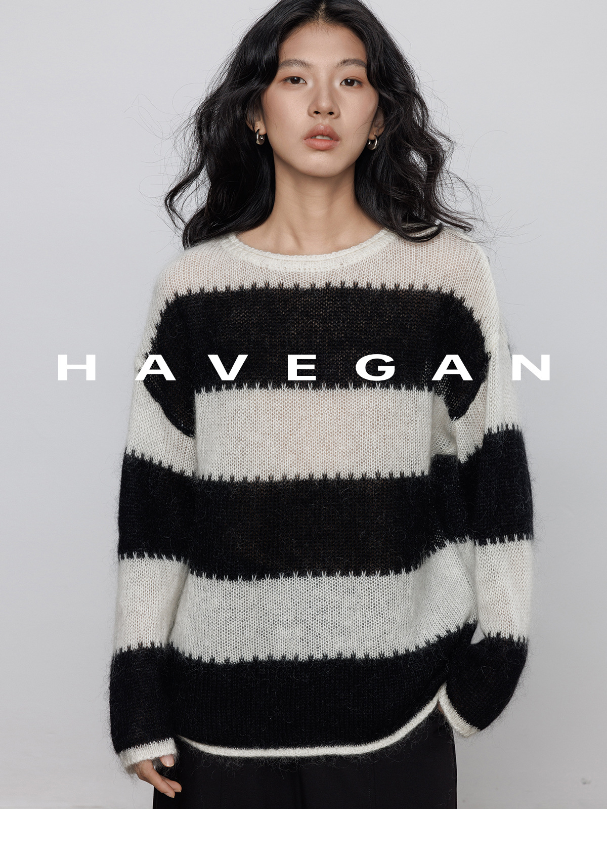 Havegan осенний свитер с круглым вырезом, длинный рукав, широкие полосы, женский, мохеровый, повседневный топ