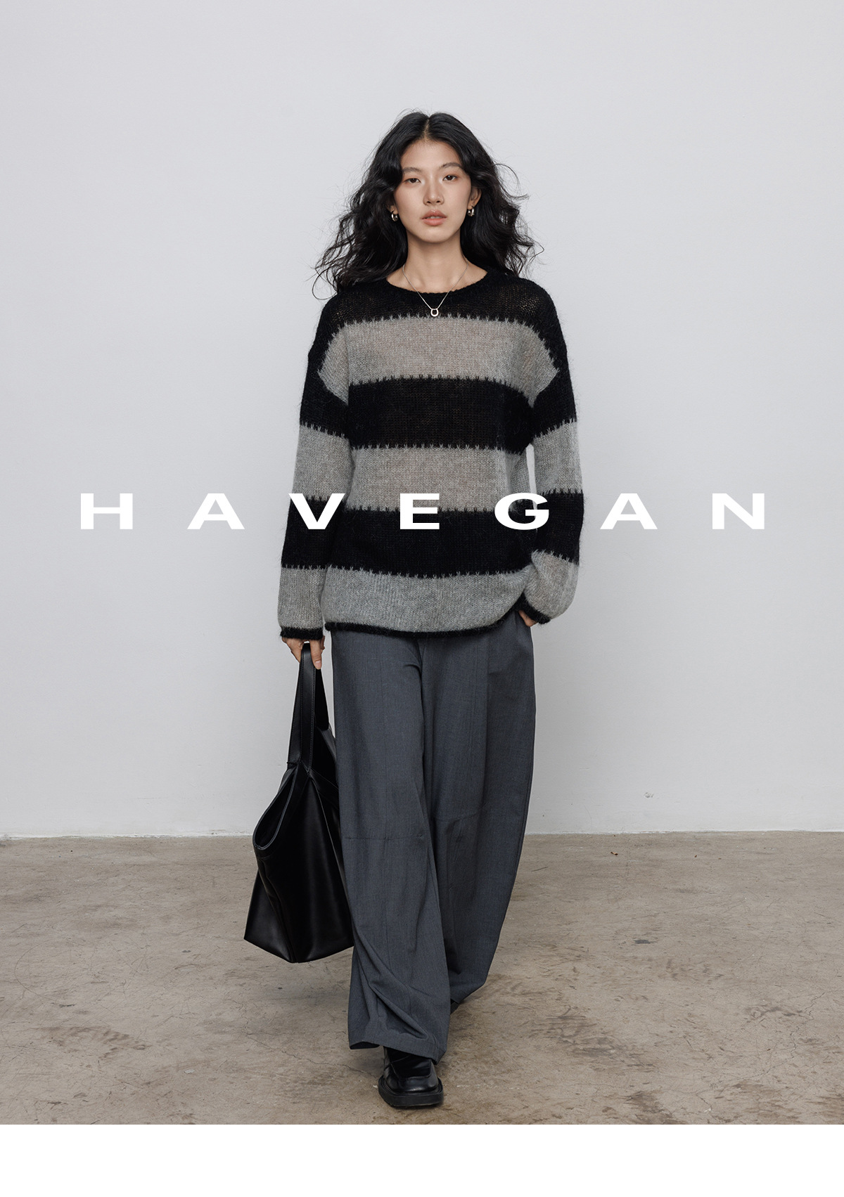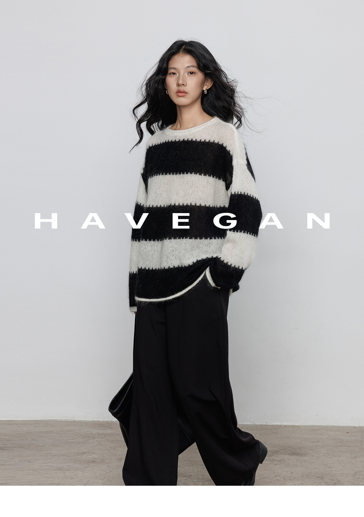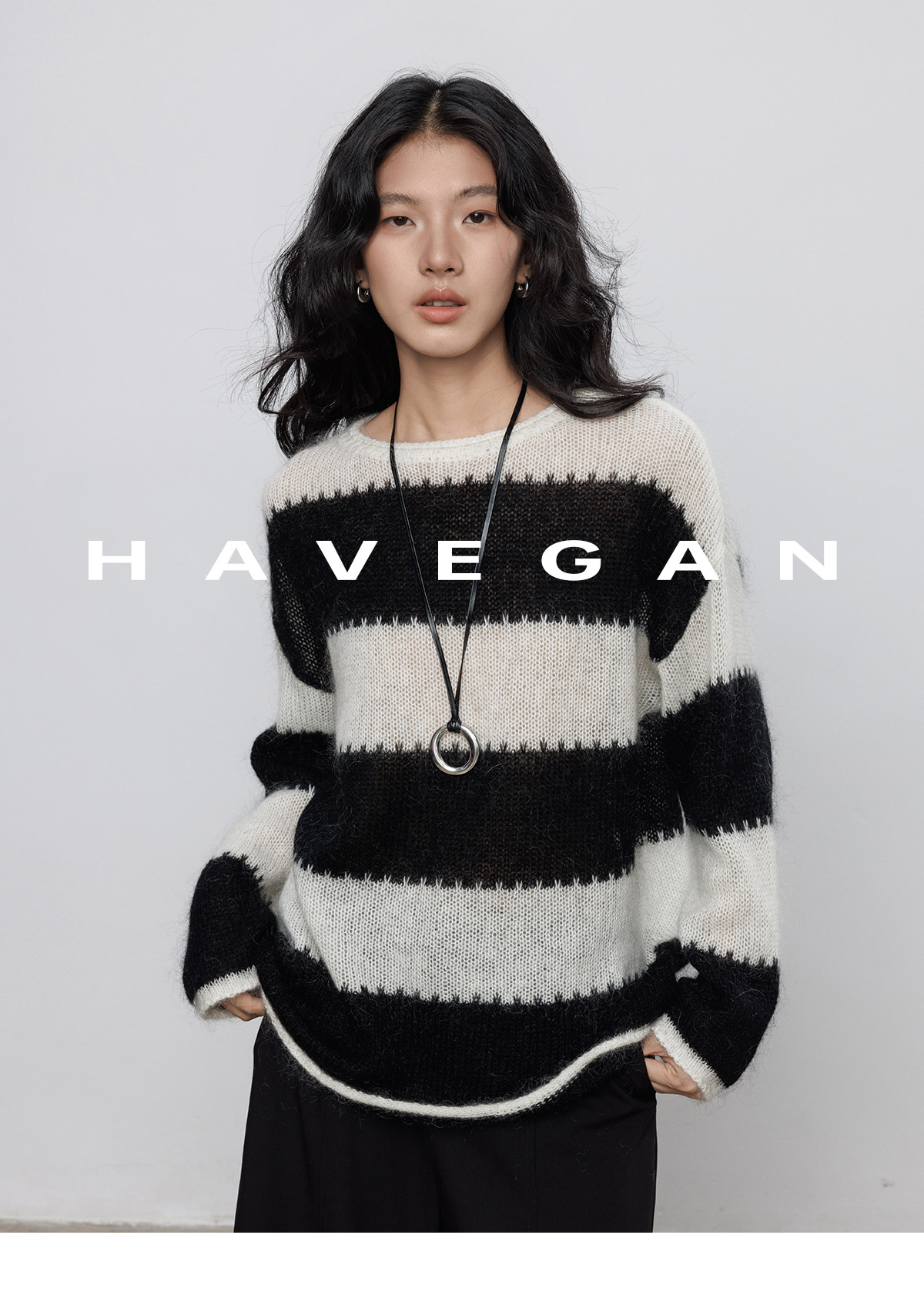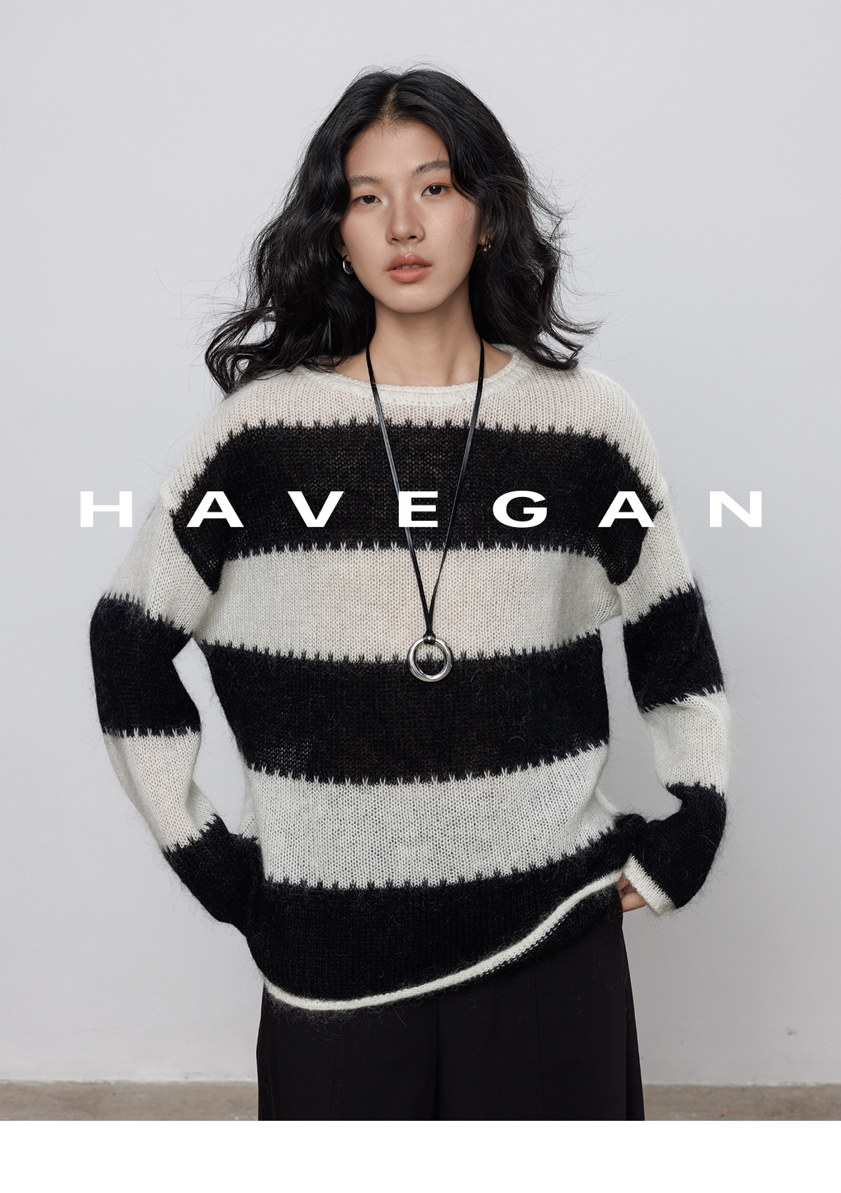 Havegan осенний свитер с круглым вырезом, длинный рукав, широкие полосы, женский, мохеровый, повседневный топ