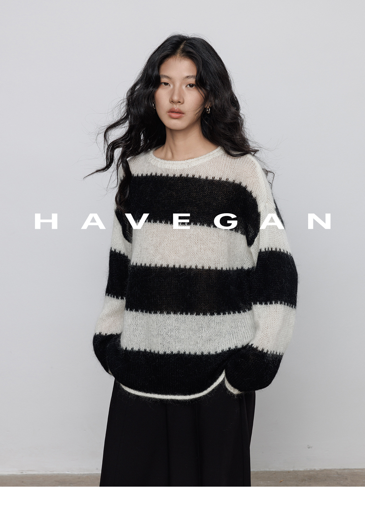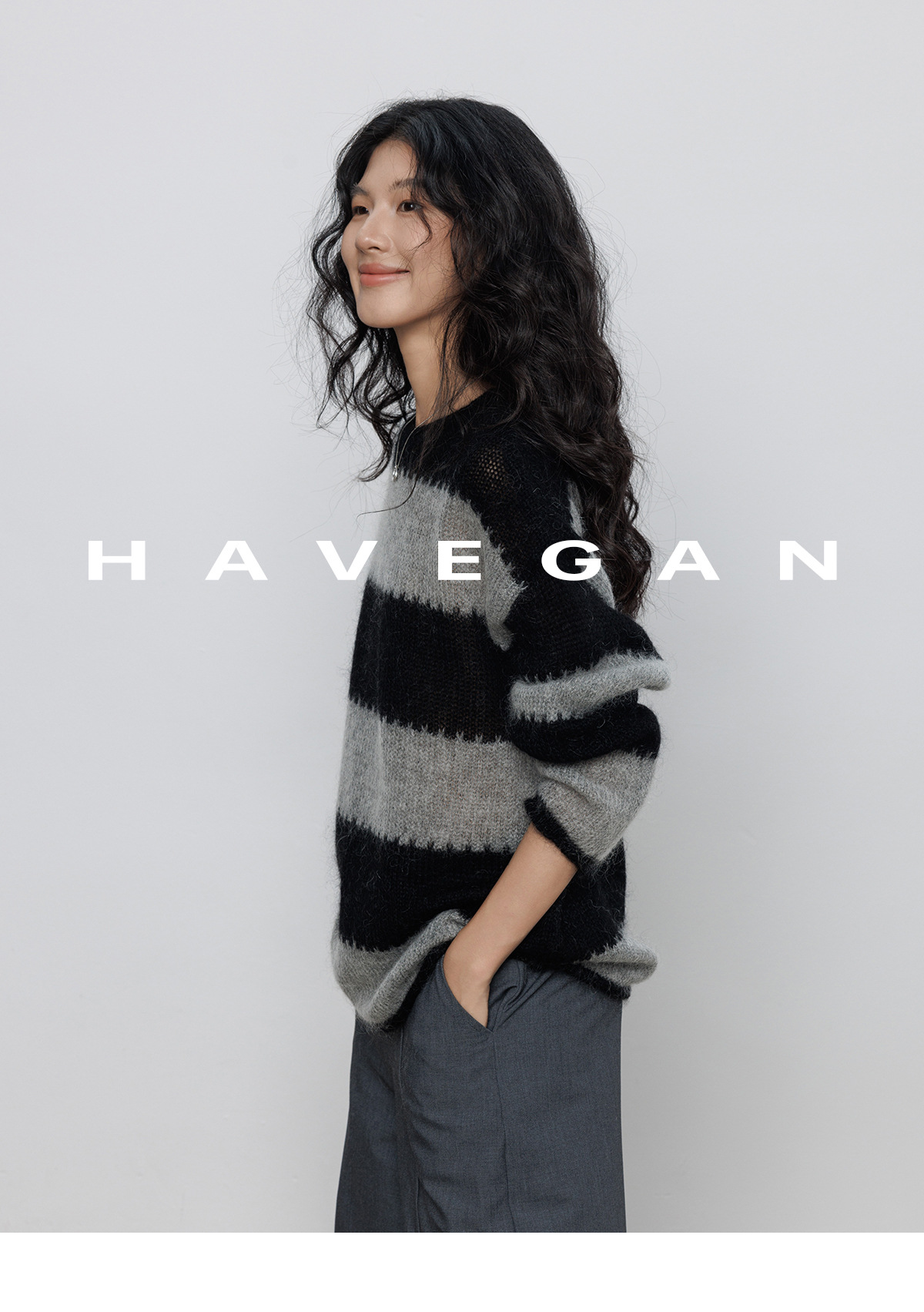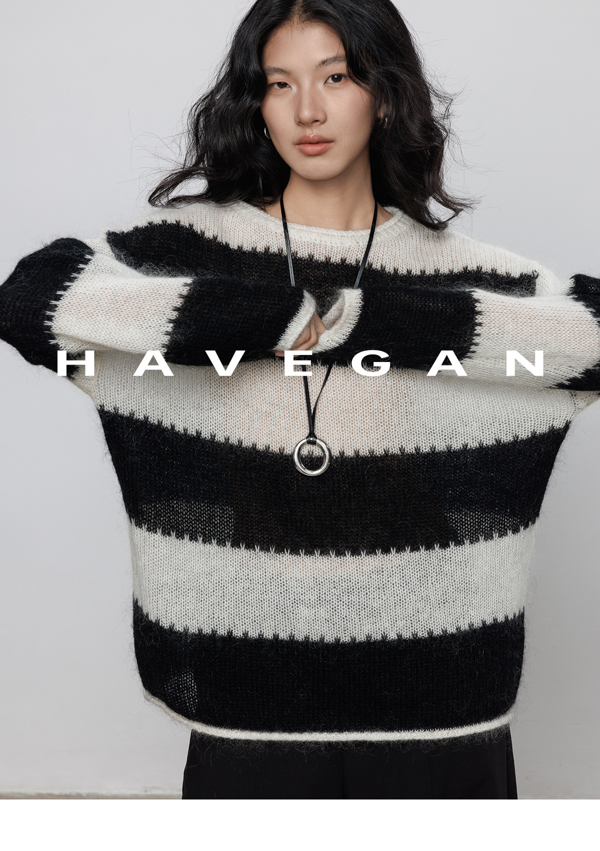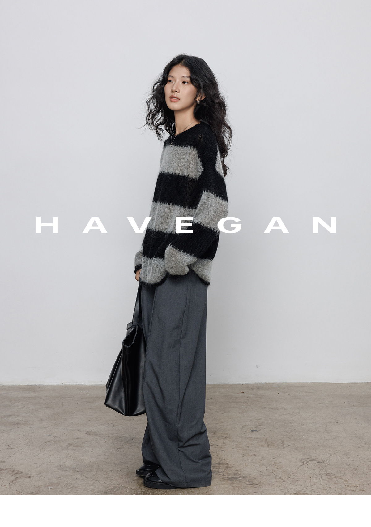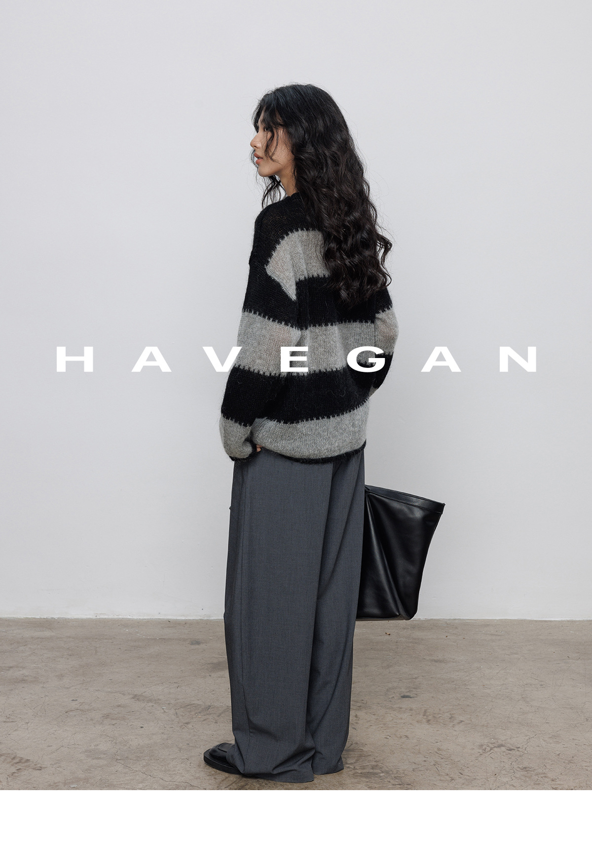 Havegan осенний свитер с круглым вырезом, длинный рукав, широкие полосы, женский, мохеровый, повседневный топ