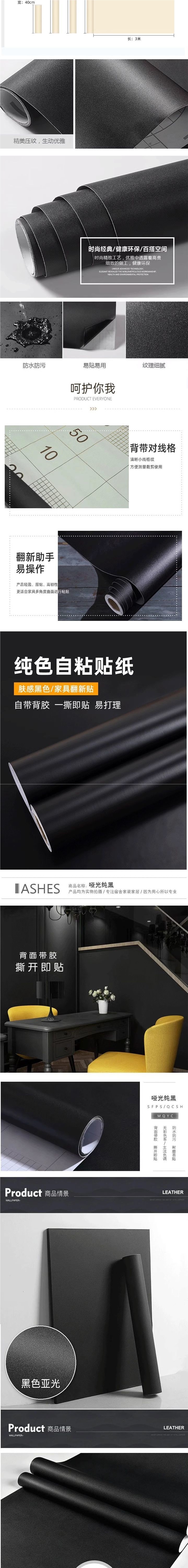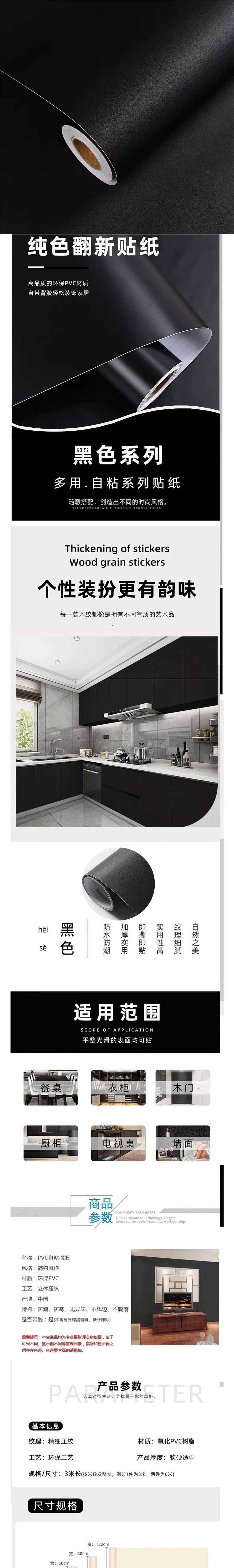 Наклейки для мебели, чистый черный, водостойкие и влагостойкие, обои для шкафа, самоклеящиеся, ремонт, декор