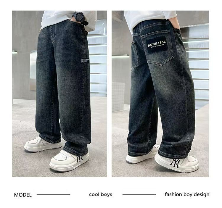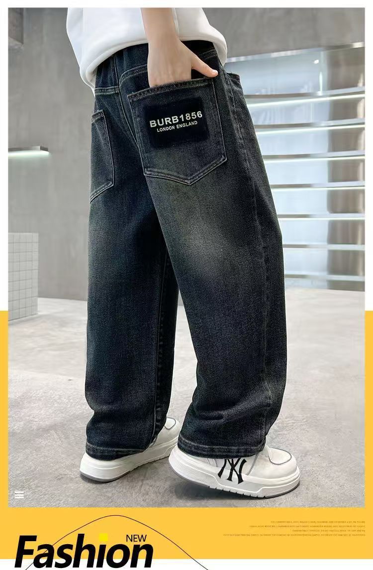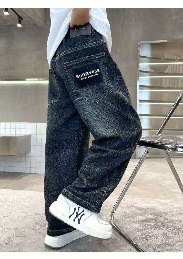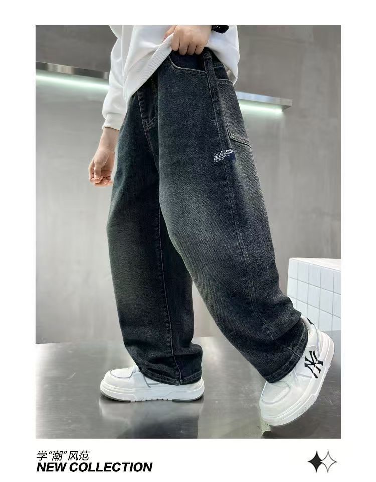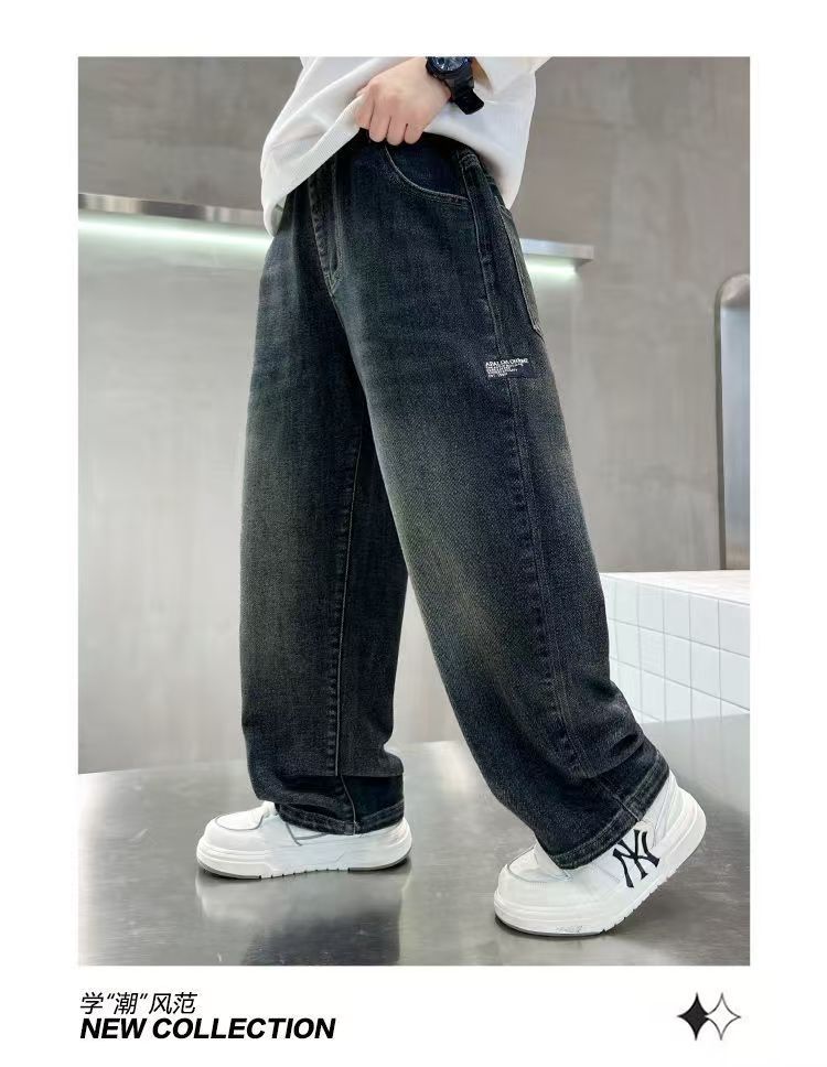 Джинсы для мальчиков осень-зима с флисовой подкладкой, утолщенные, свободные длинные брюки для детей старшего возраста, для начальной школы