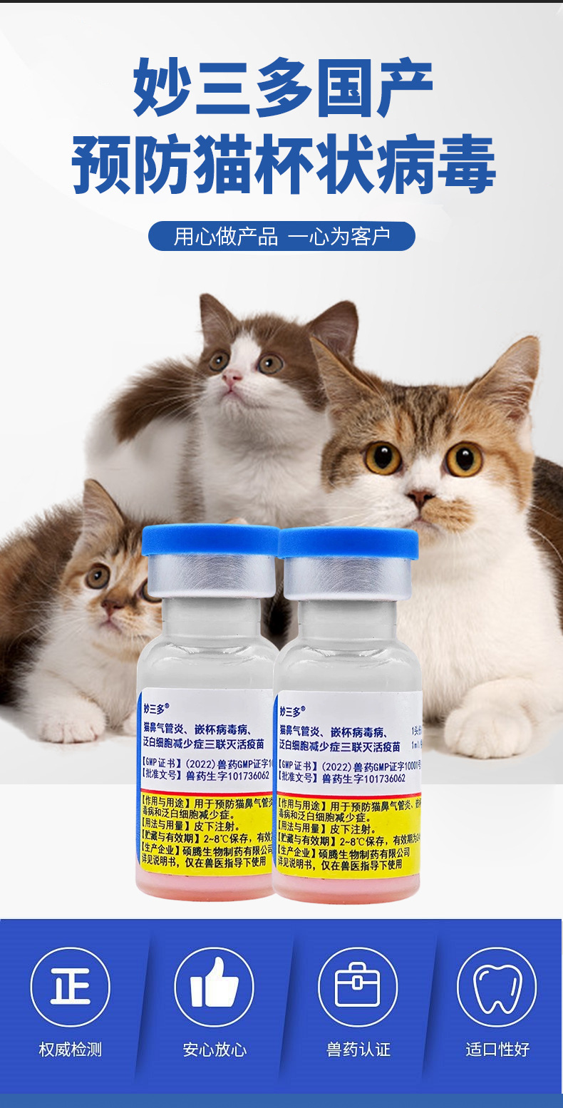Вакцина Miaosanduo Pfizer для домашних кошек, тройная вакцина от чумы, герпеса и хламидиоза