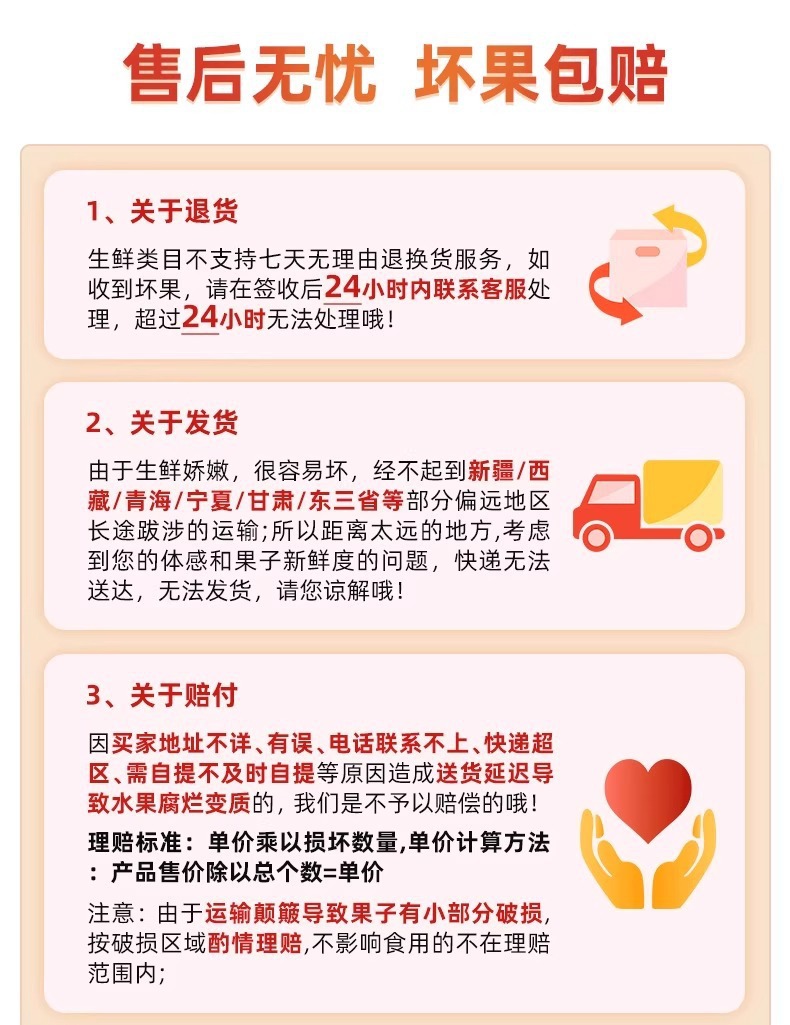 感谢亲亲对小店的信任,为了食品的安全保证,已开封的食品,冷冻,冷藏食品,不支持售后服务,感谢大家的谅解,如果有质量问题,可及时联系客服!!!!