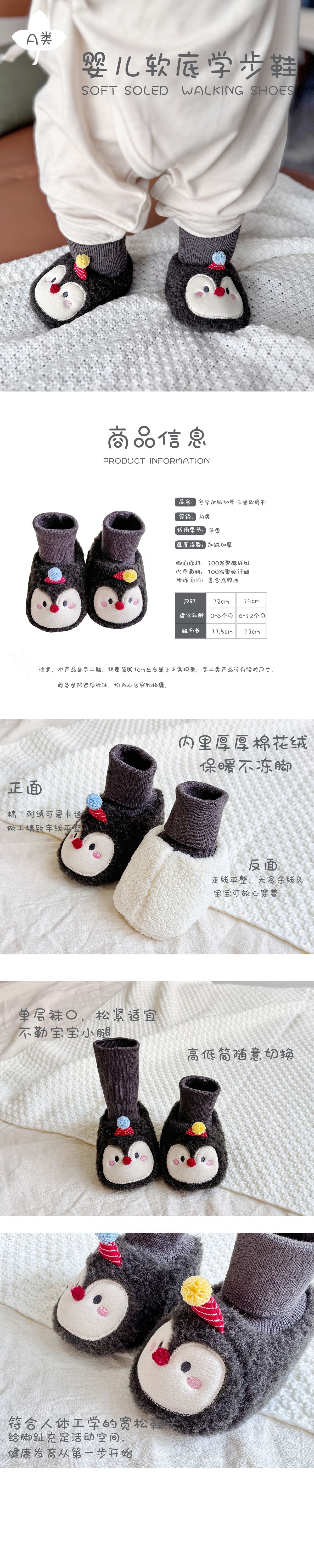 Теплые детские туфли для новорожденных и малышей осень и зима с флисовой подкладкой, толстые, мультяшные, для дома, нескользящие