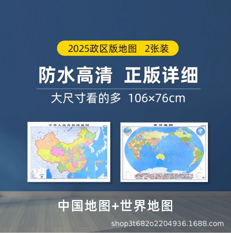 2025 Новая версия карты Китая + карты мира 106X76 см Высокое разрешение Двусторонняя Ламинированная Водонепроницаемая для офиса дома