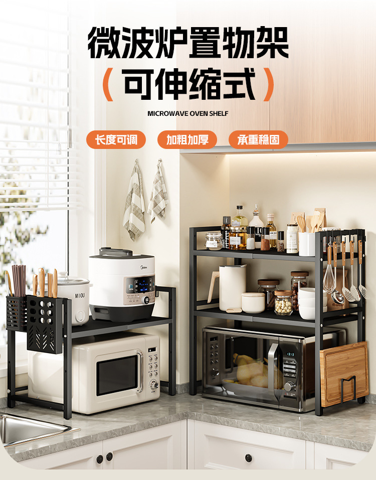 Утолщенная полка для микроволновой печи для кухни, выдвижная многоуровневая полка для рисоварки, домашний органайзер для хранения