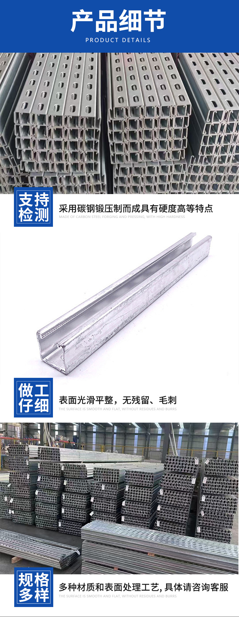 Производитель горячего оцинкованного C-образного стального крепления для трубных галерей, оцинкованного цинк-алюминий-магний, пробитого C-образного стального крепления для солнечных фотогальванических систем