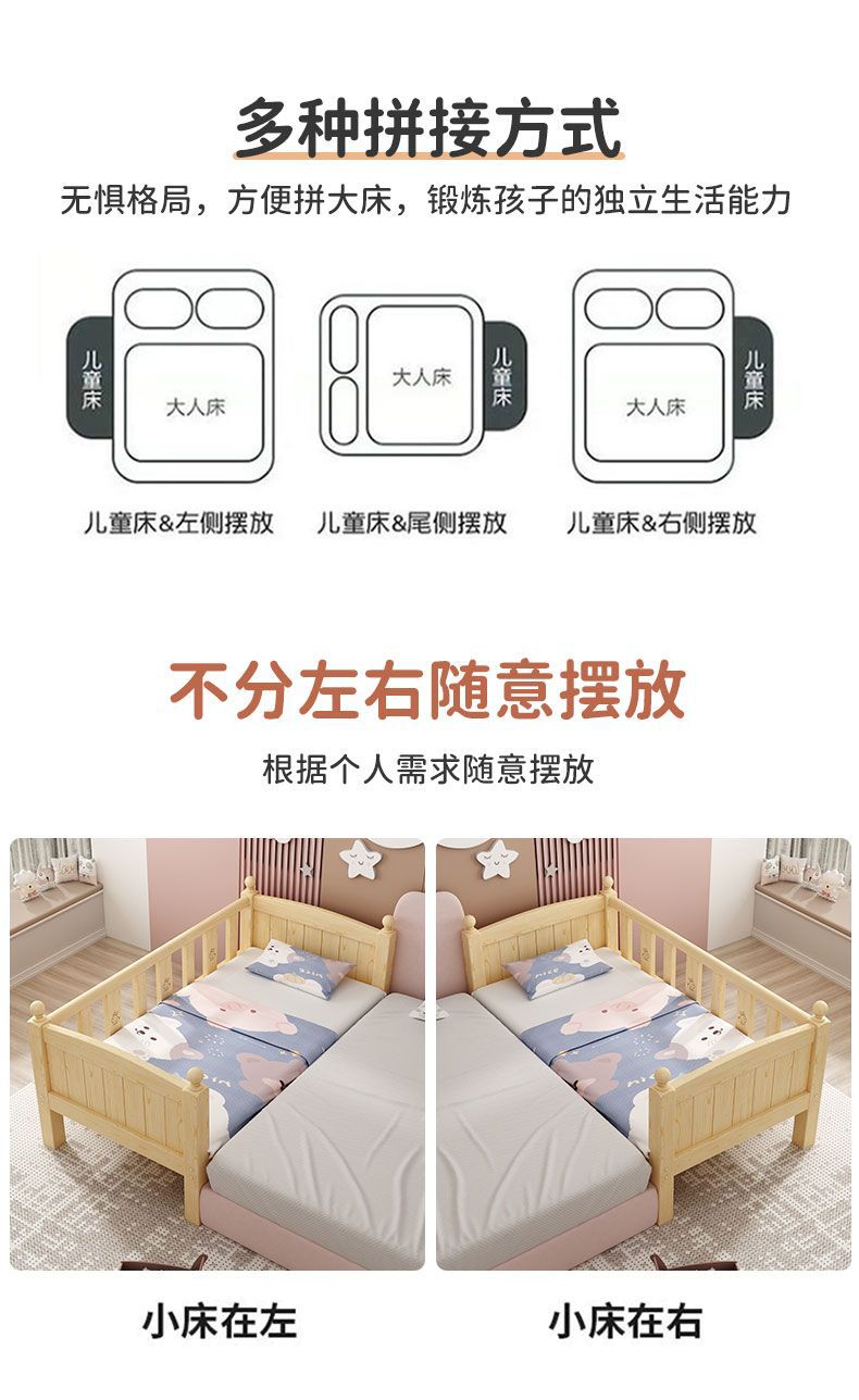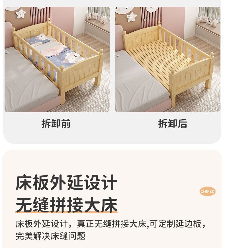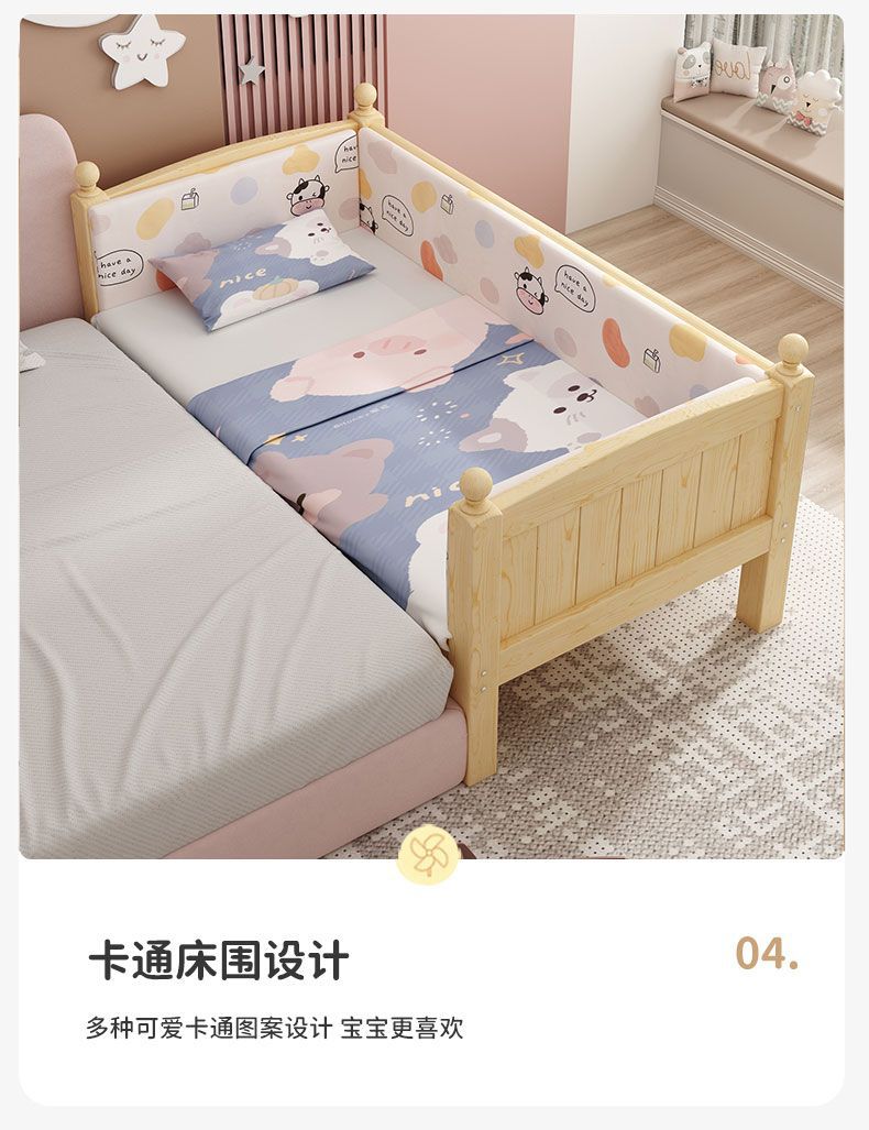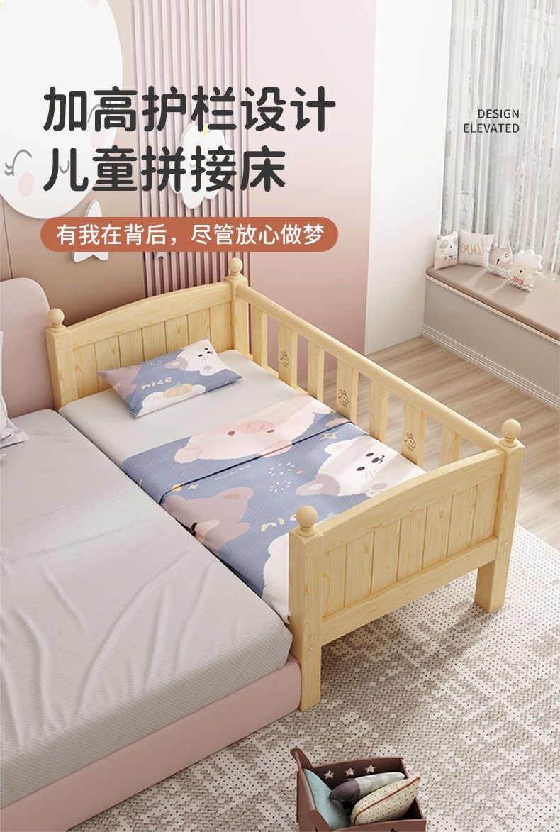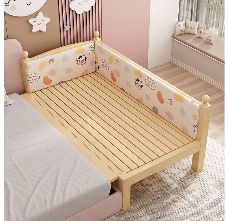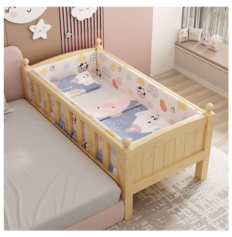 Кроватка из массива дерева, плюс дополнительная широкая кровать для девочек и мальчиков, односпальная кроватка с бортиком, соединяемая, оптовая продажа