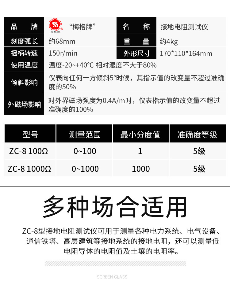 Шанхайская шестая электростанция Мег-бренд ZC-8 Прибор для измерения сопротивления заземления Ручной прибор для измерения сопротивления