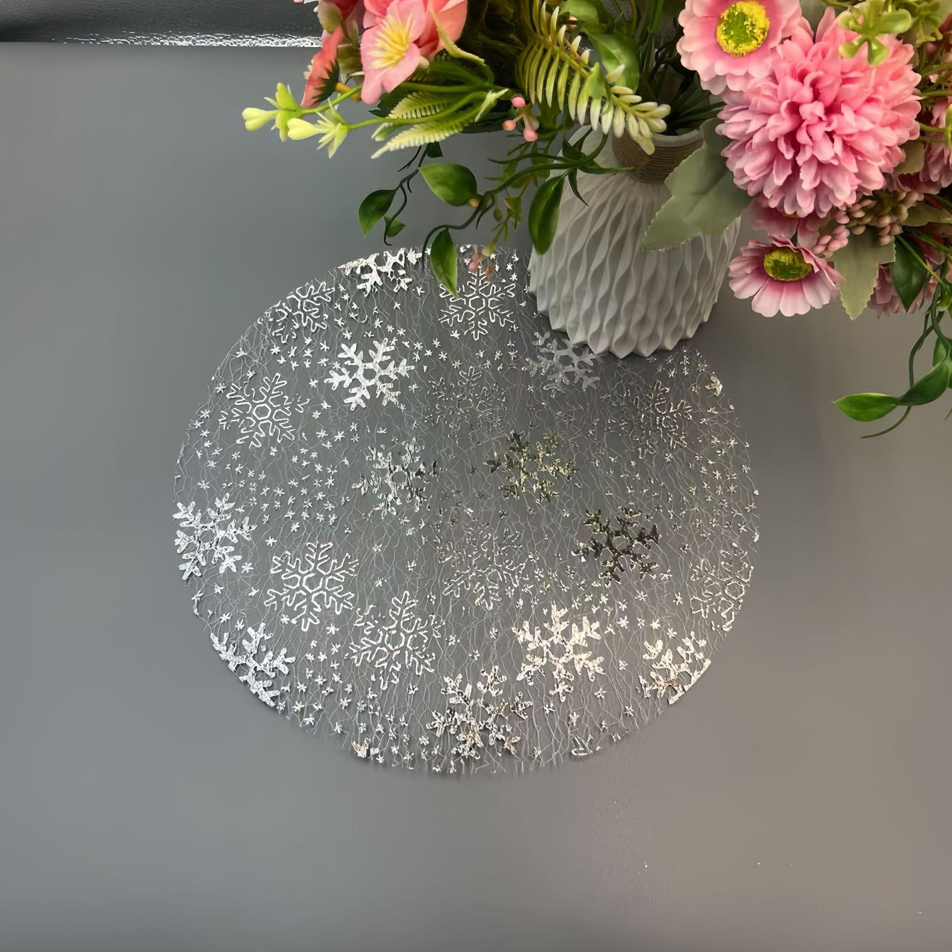 Одноразовая круглая подстилка с серебряными снежинками и горячим тиснением, подходит для дней рождения и праздников