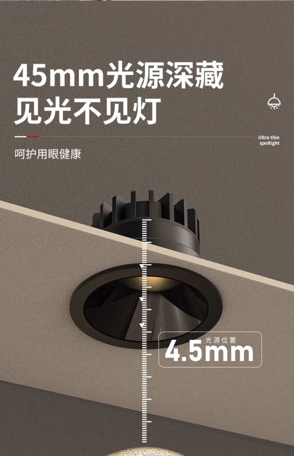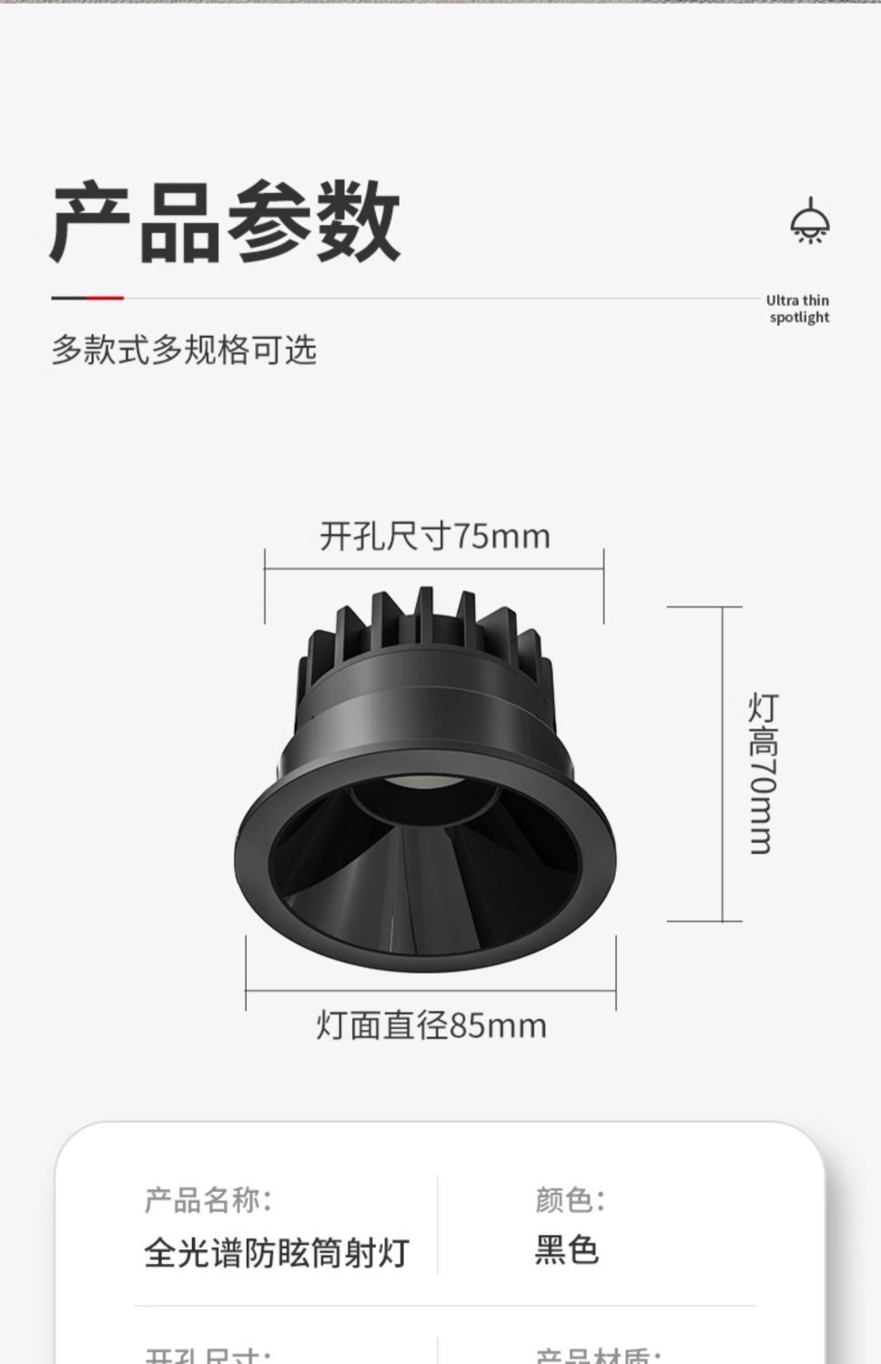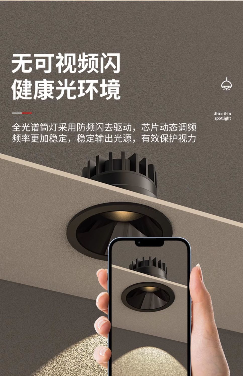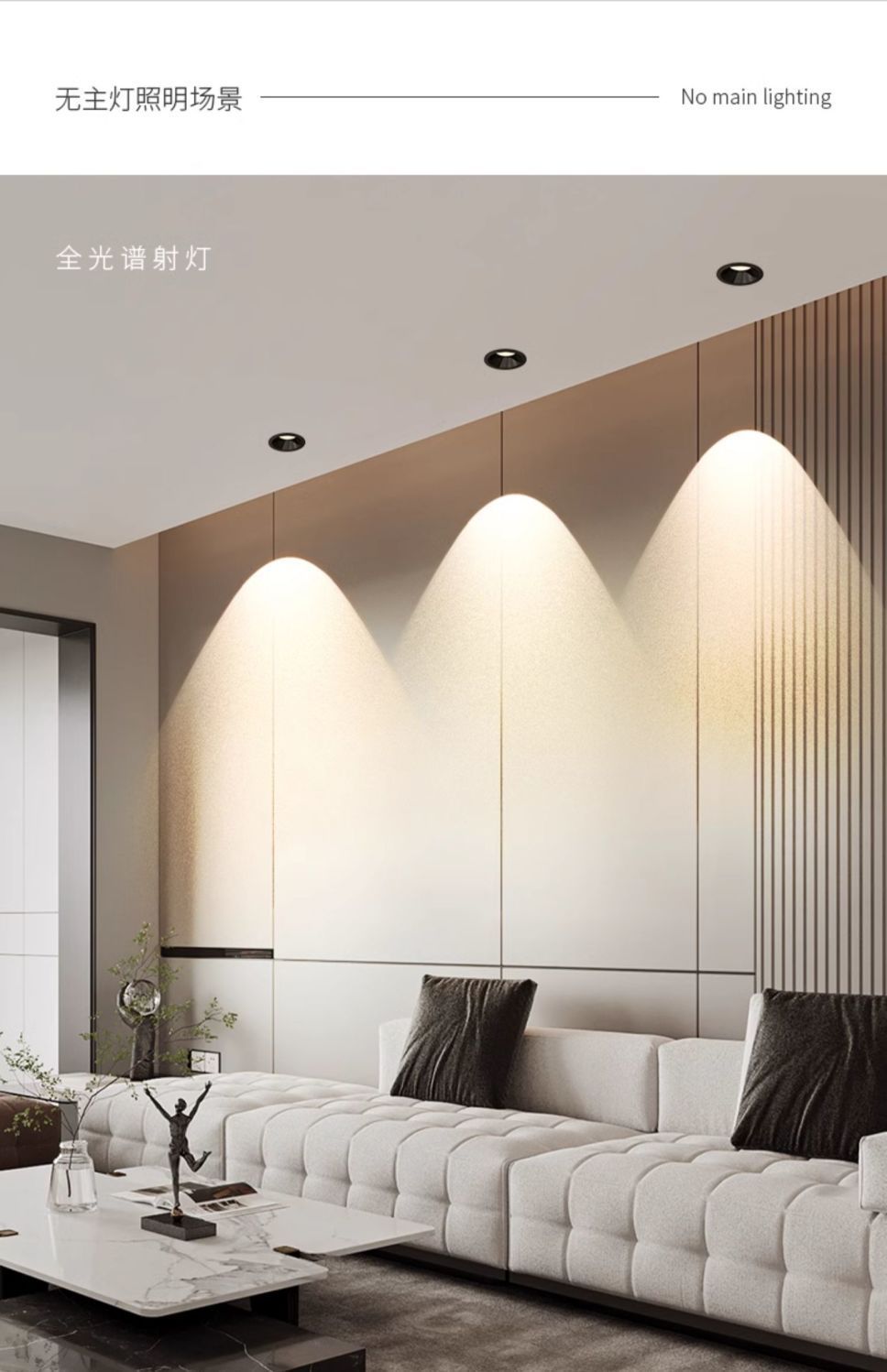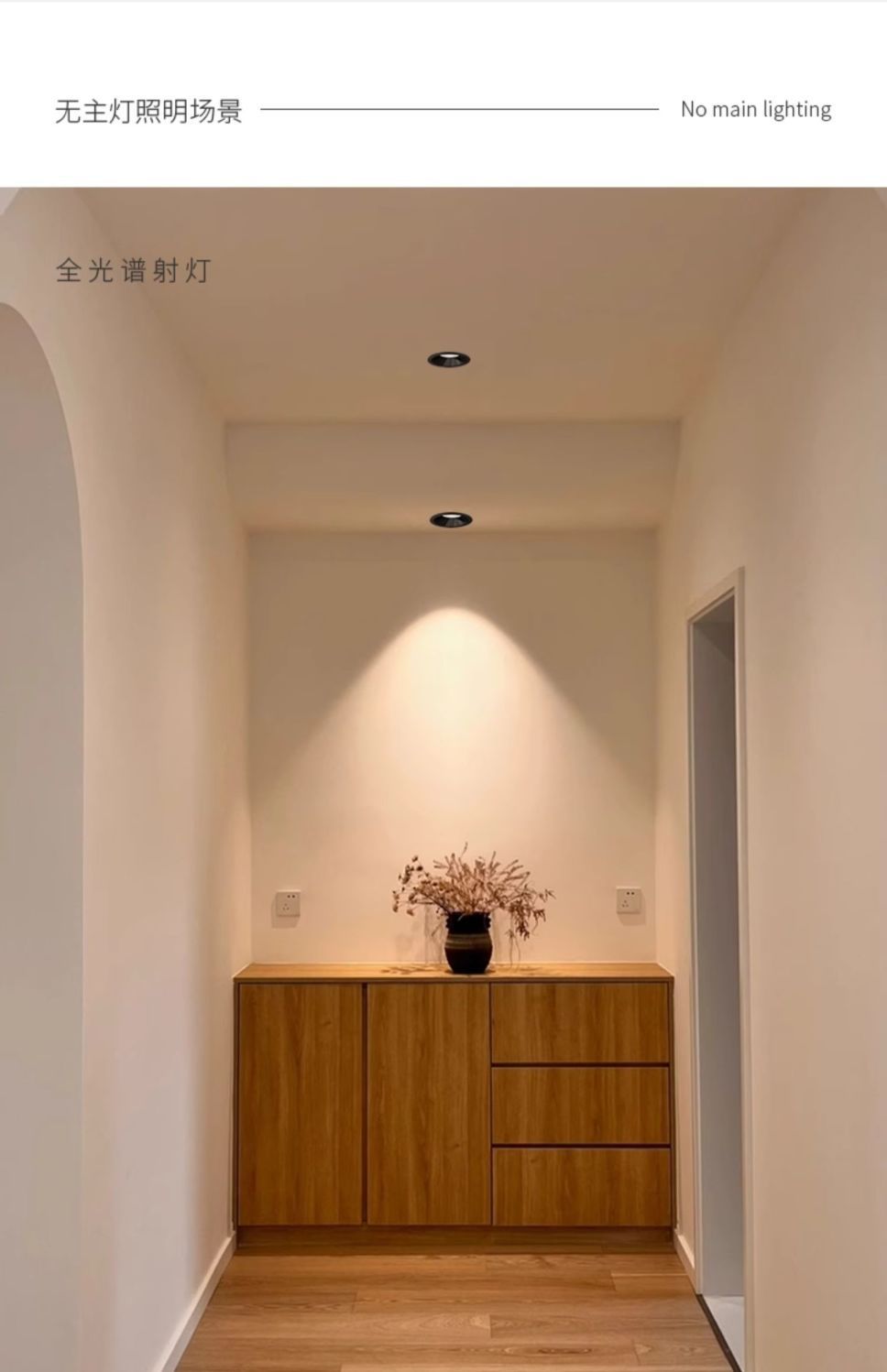 Черный полноспектральный глубокий антивспышковый светильник для домашней гостиной, встроенный светодиодный светильник без основного света