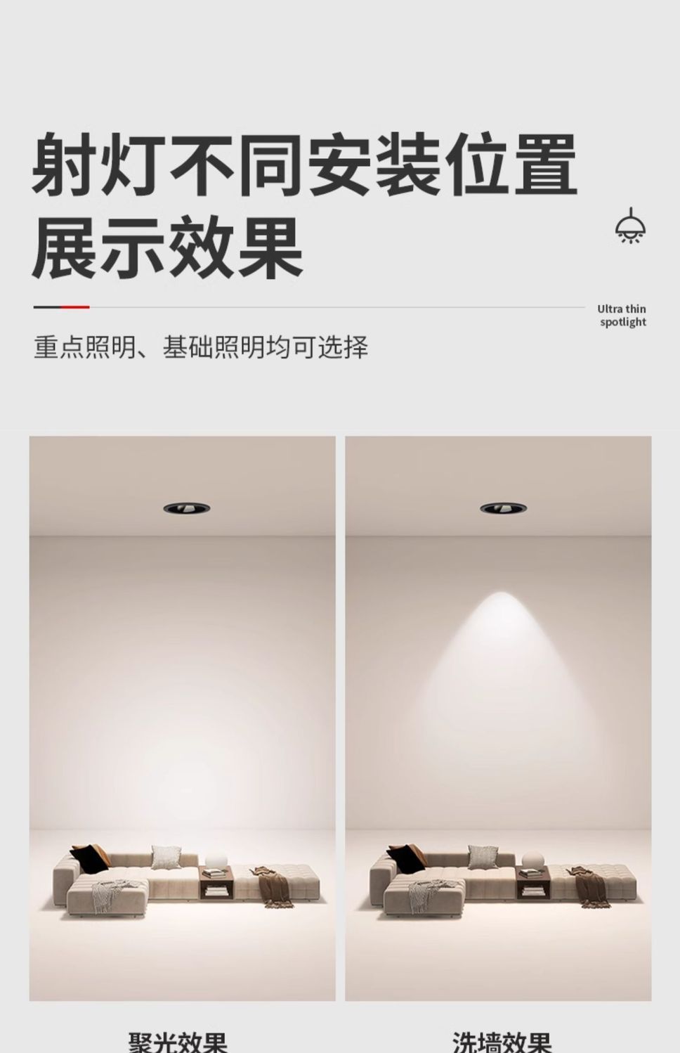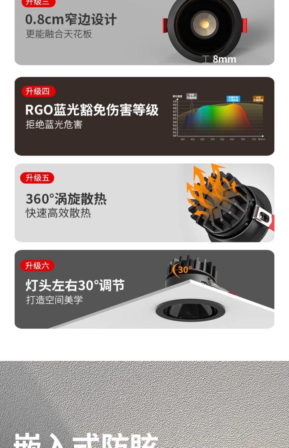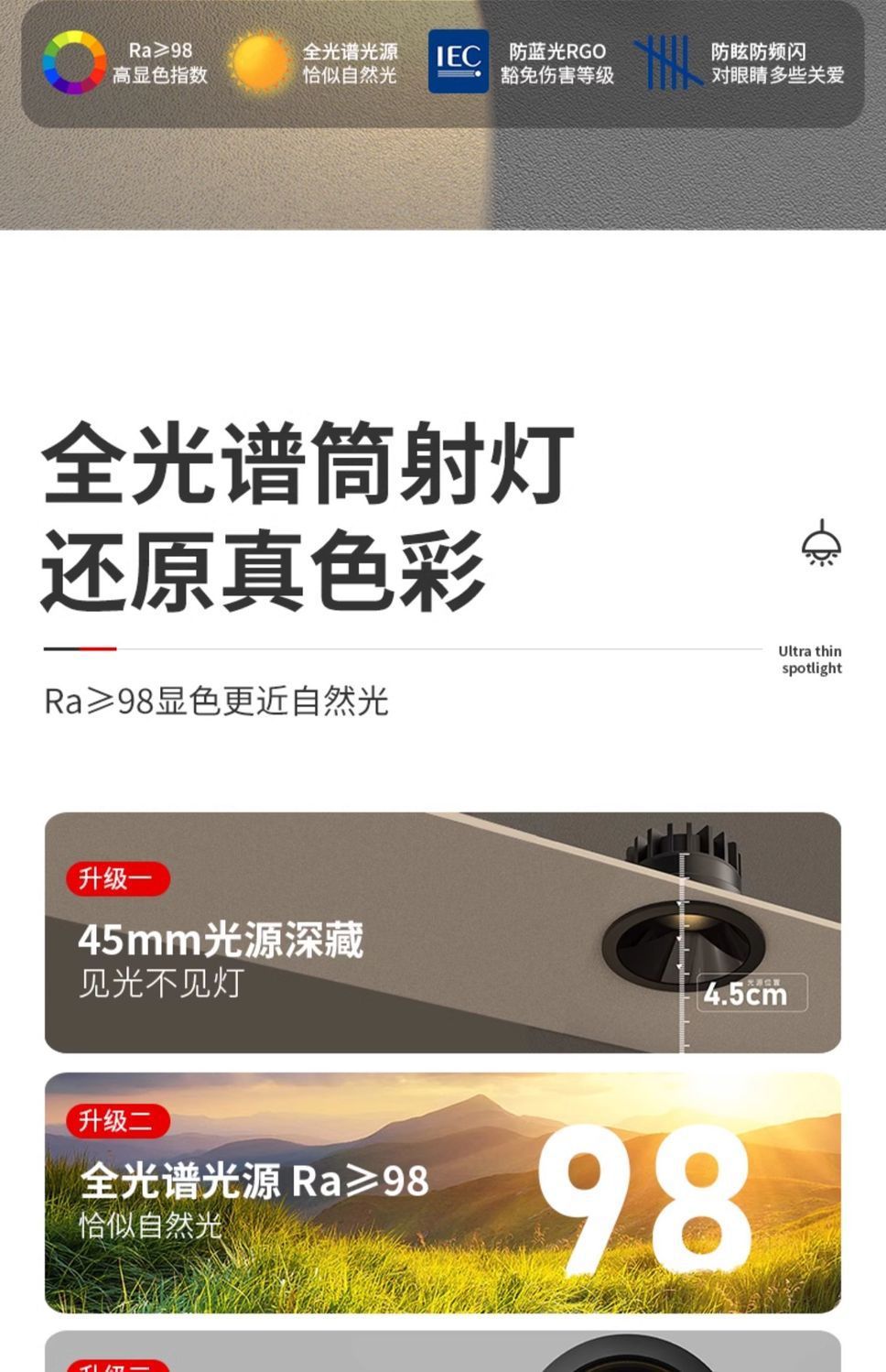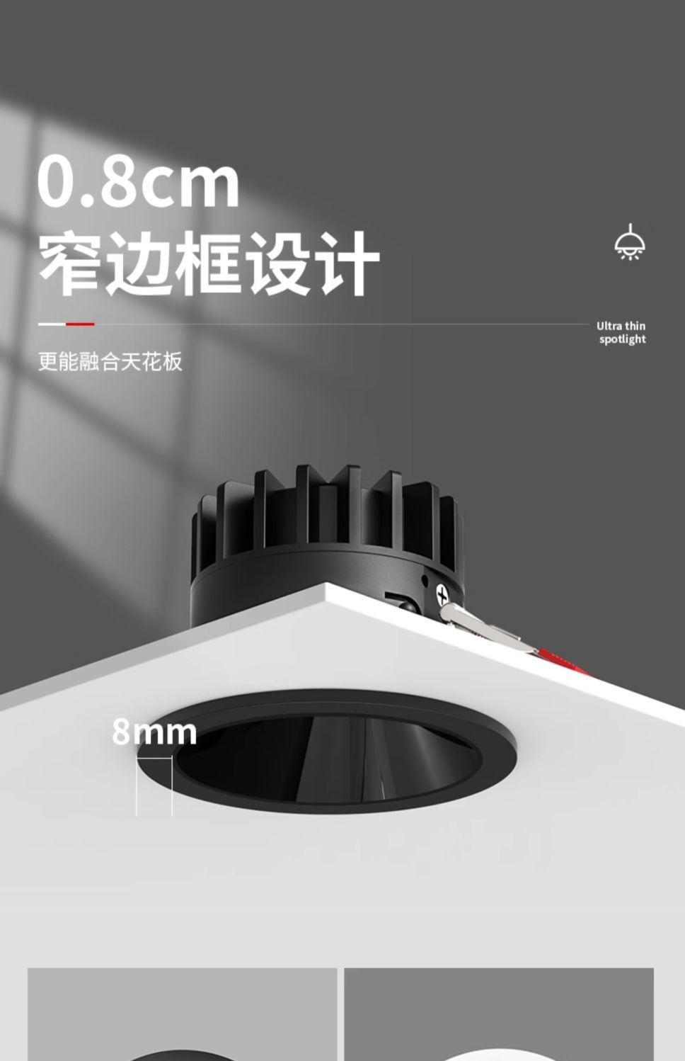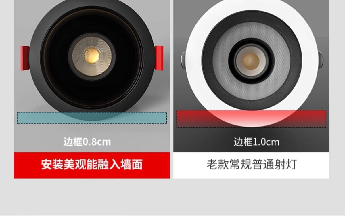 Черный полноспектральный глубокий антивспышковый светильник для домашней гостиной, встроенный светодиодный светильник без основного света