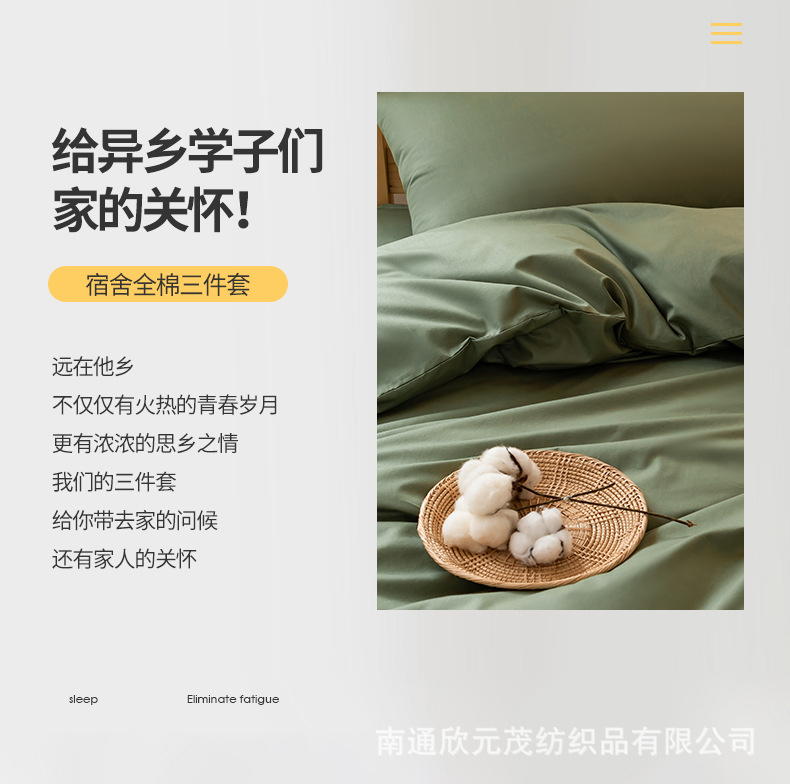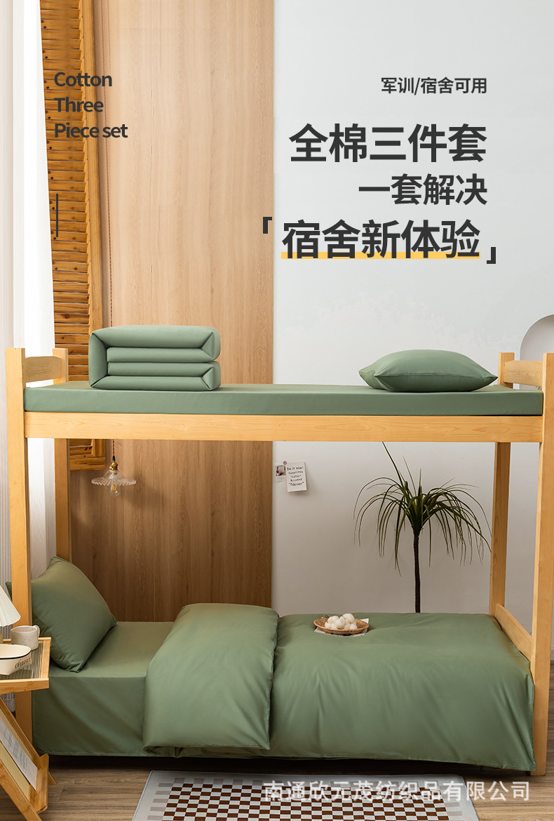 Комплект постельного белья из трех предметов с однотонным цветом, наволочка из хлопка, для студенческого общежития, двухъярусной кровати, оптовая продажа