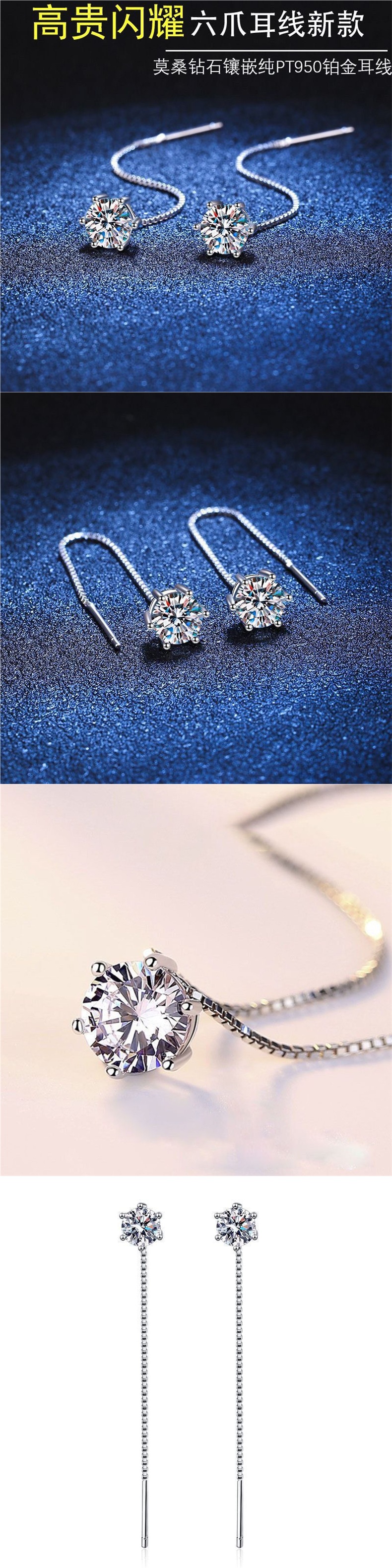 Серьги из чистой платины Pt950 с моиссанитом 1 карат, простые классические серьги с шести-лапковым креплением