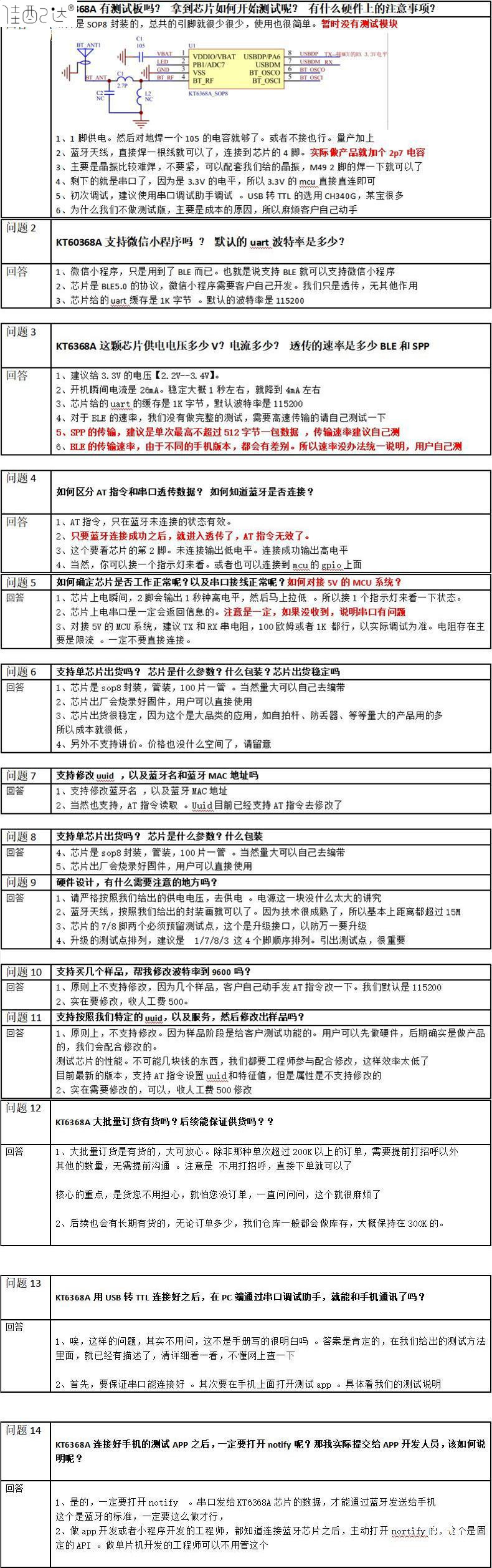 Чип Kt6368A, модуль Ic Bluetooth Audio, серийный порт, 5.1, двойной режим Blespp, Jerry Sop8At, прозрачная инструкция