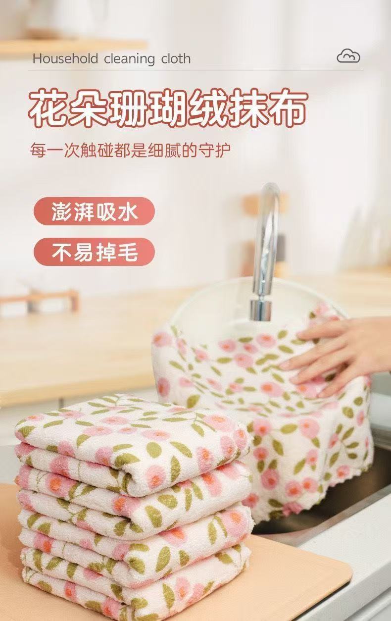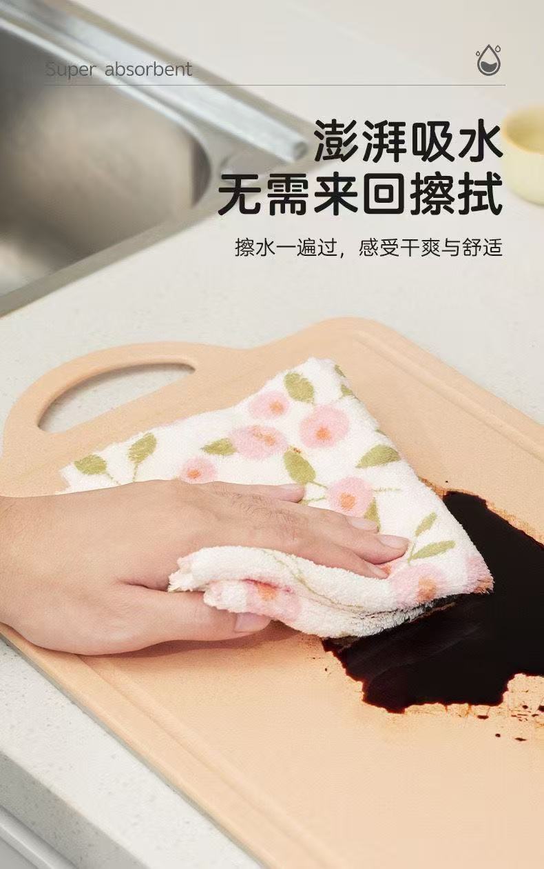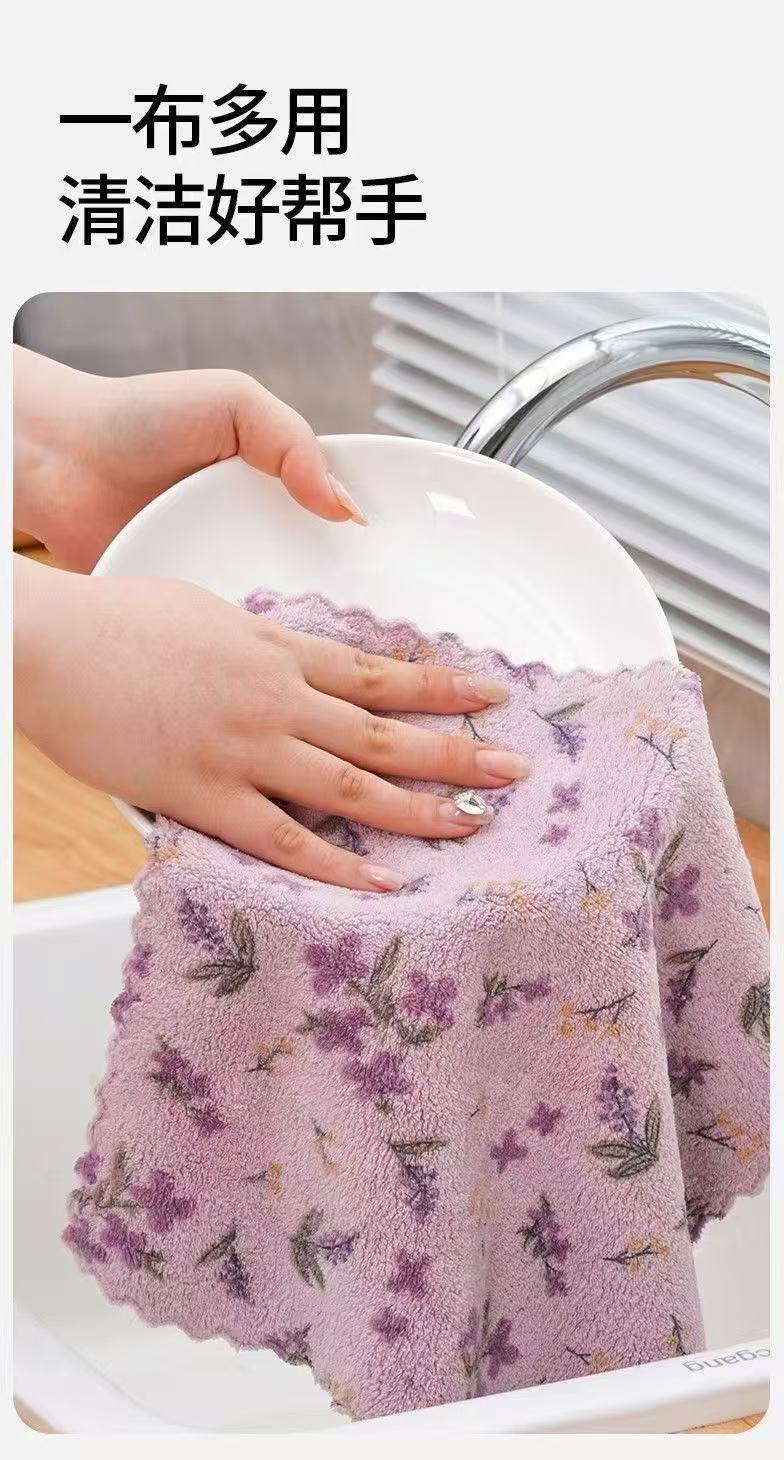 Фиолетово-розовая цветочная нескользящая кухонная тряпка утолщенная и абсорбирующая для домашней дезинфекции посуды полотенце