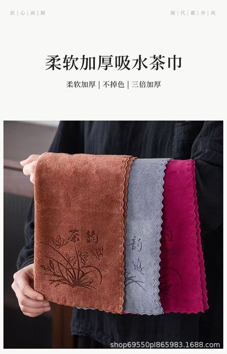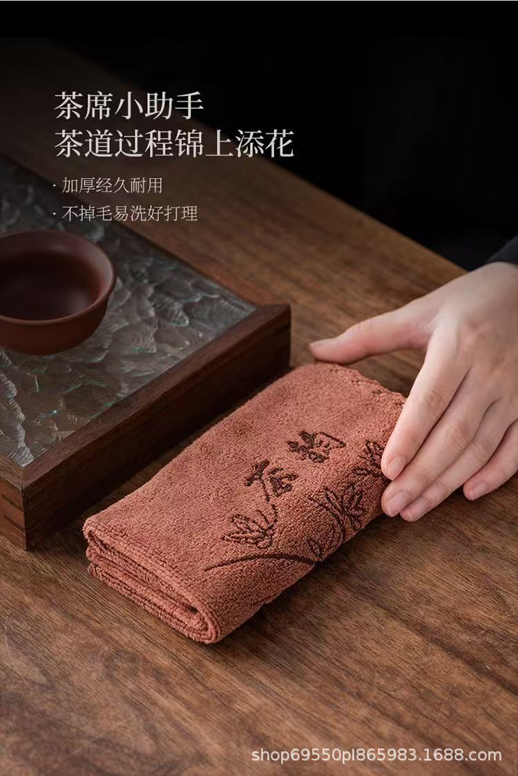 Чайное полотенце, скатерть для чайного стола, высококачественная впитывающая утолщенная скатерть без ворса, чайный коврик, быстро сохнущее квадратное полотенце с логотипом