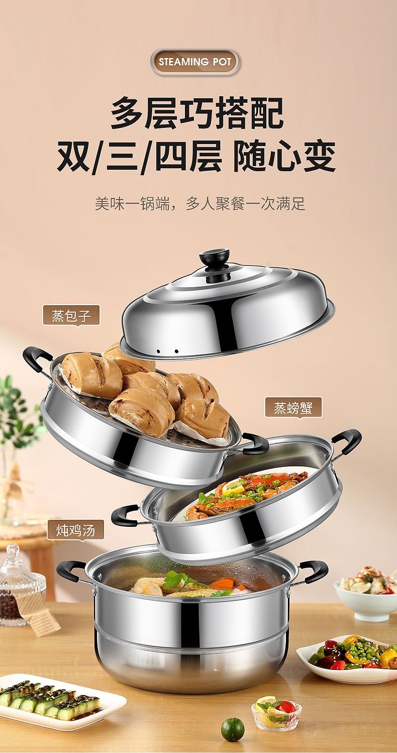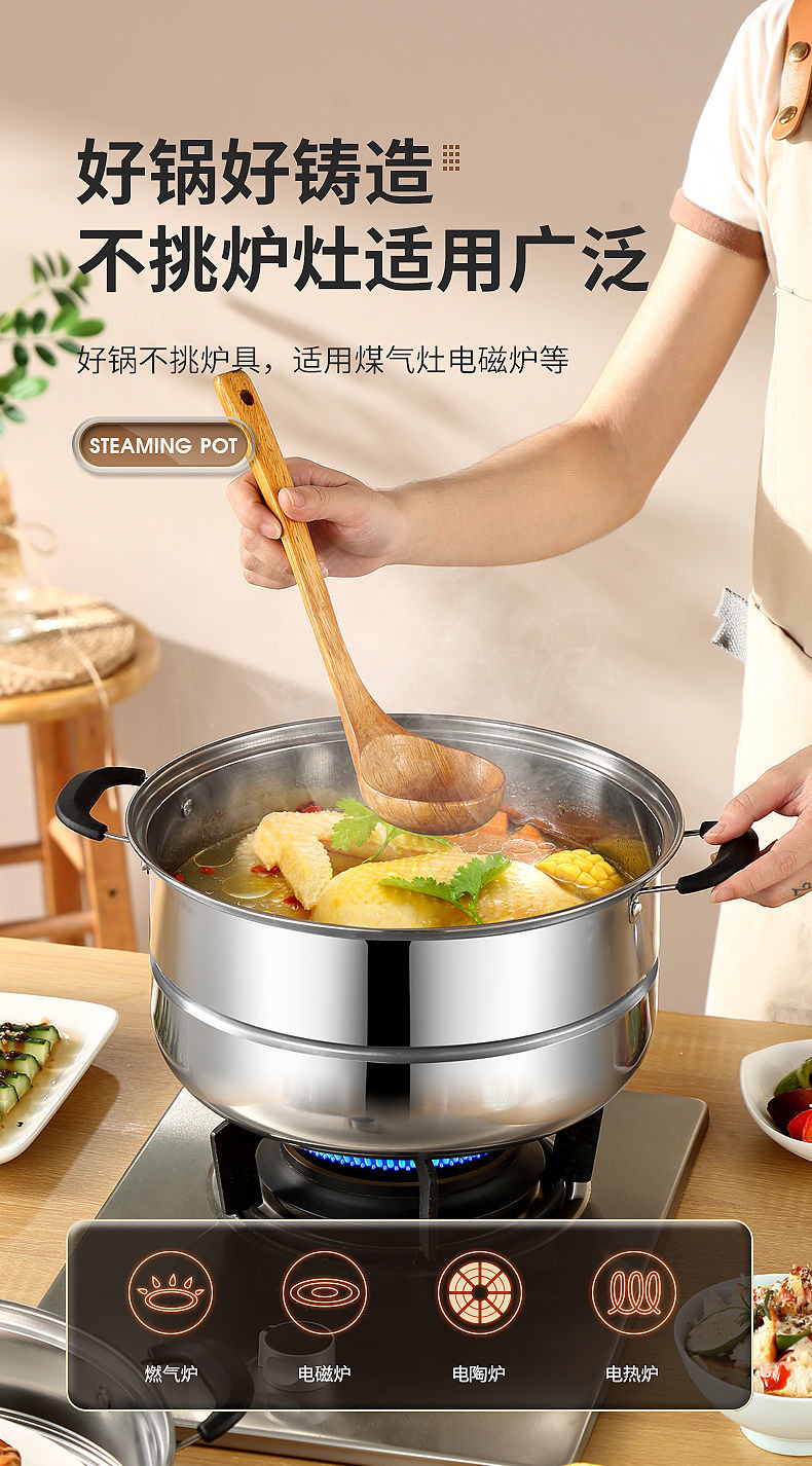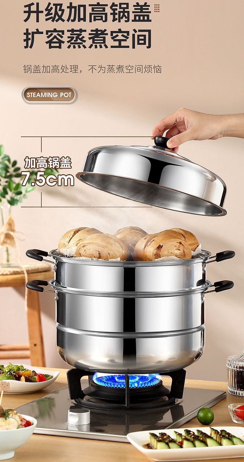 Пароварка из нержавеющей стали 30 см, утолщенная, для домашнего использования, двухуровневая, большая емкость, для приготовления пельменей и рыбы, совместима с индукционными плитами
