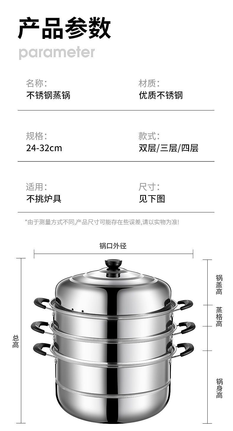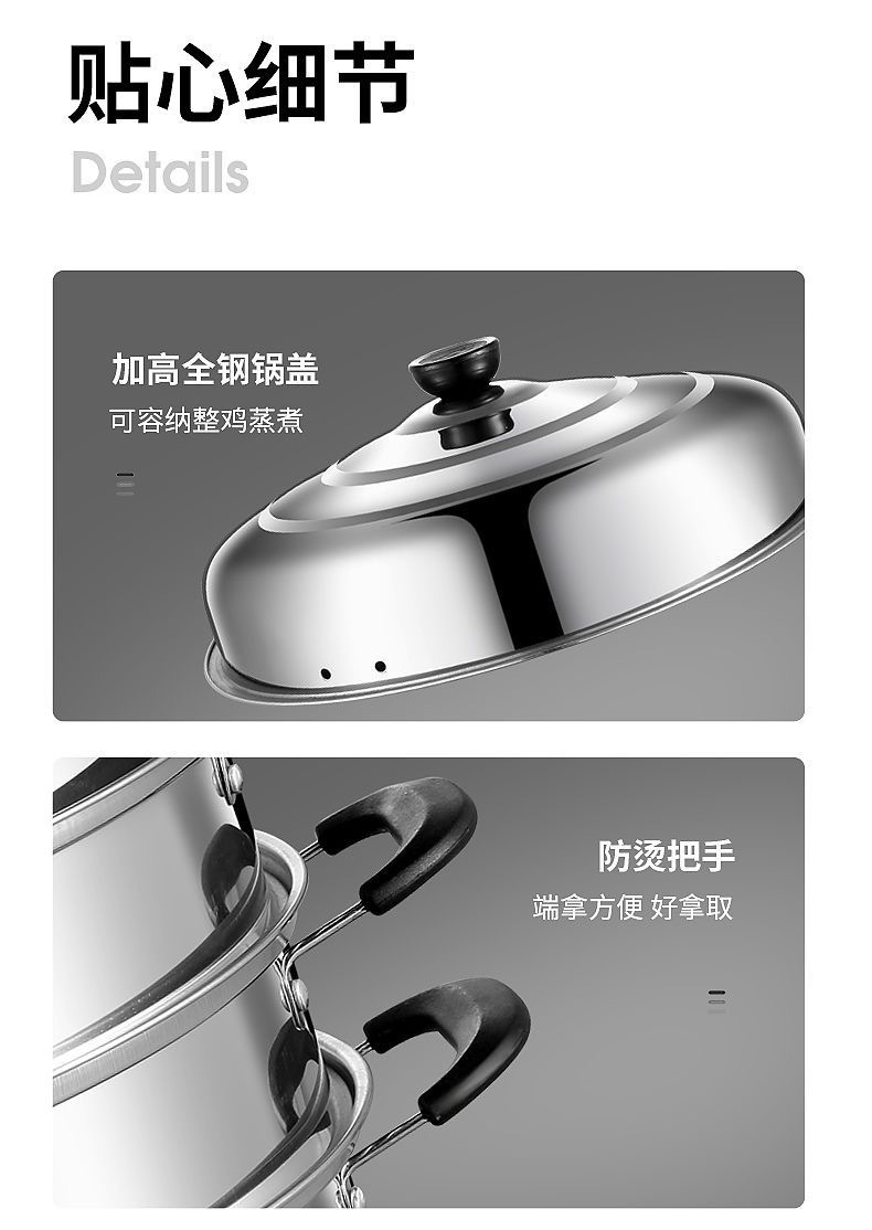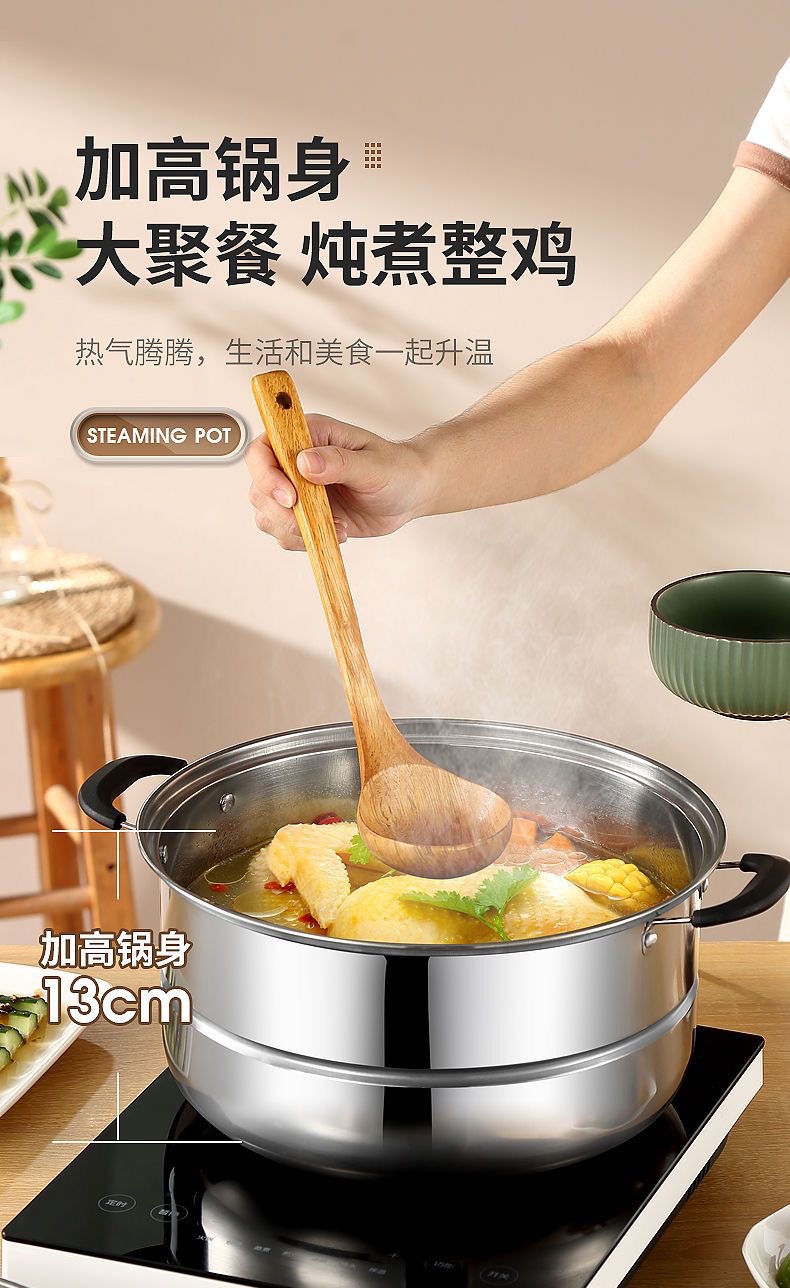 Пароварка из нержавеющей стали 30 см, утолщенная, для домашнего использования, двухуровневая, большая емкость, для приготовления пельменей и рыбы, совместима с индукционными плитами