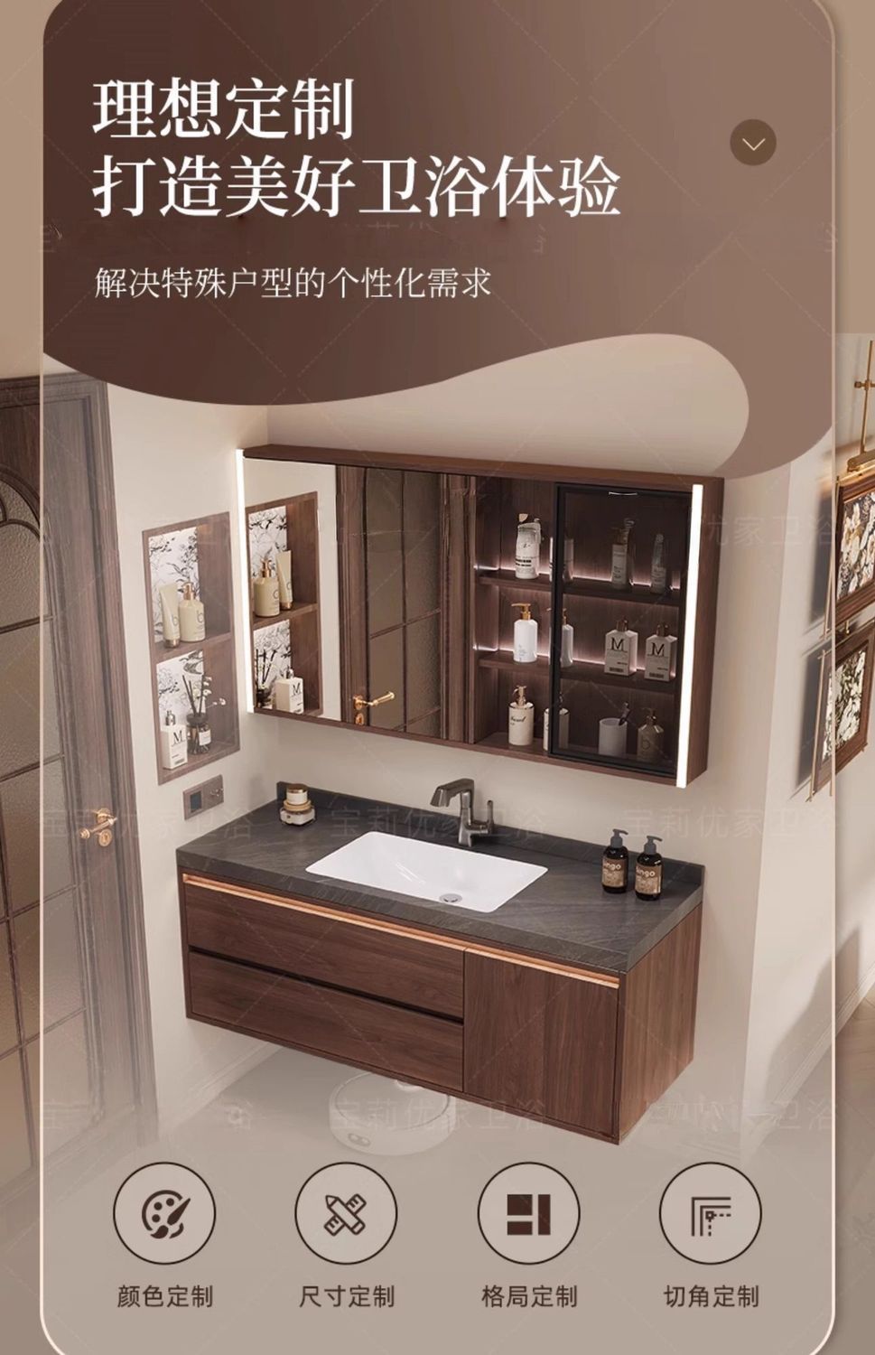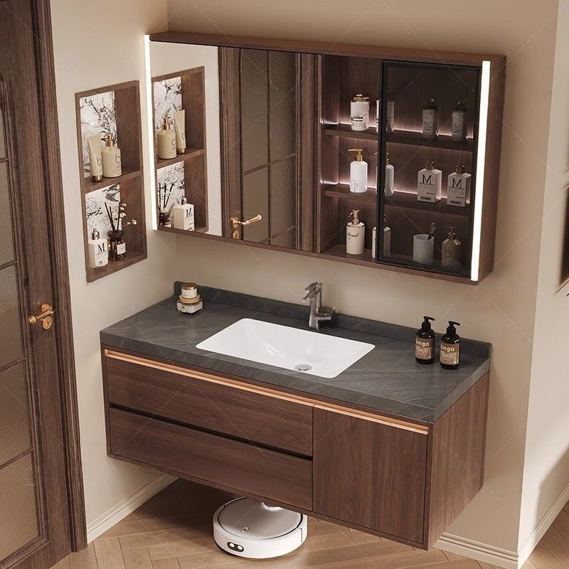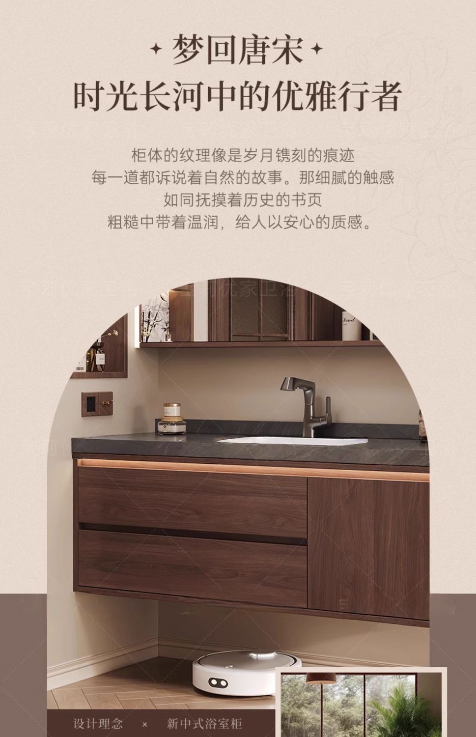 Шкаф для ванной в китайском стиле с интегрированным керамическим умывальником из ореха и набором из сланцевого умывальника