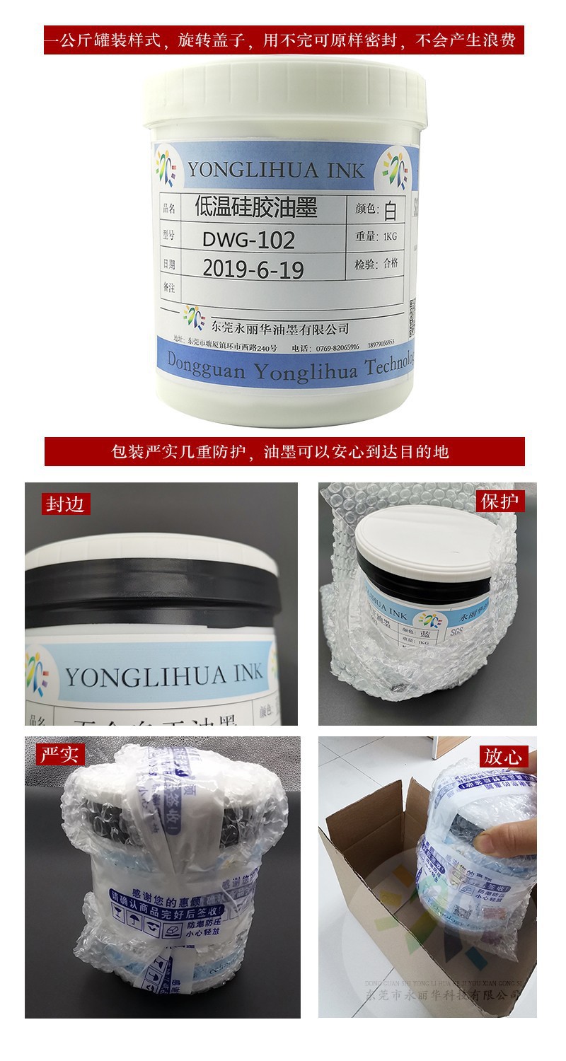 东莞市永丽华油墨厂专业生产丝印移印油墨。主要有ABS油墨、低温硅胶油墨、硅胶自干油墨,硅胶喷涂油墨、橡胶油墨、橡胶漆油墨、软胶油墨、PET高遮盖油墨、玻璃油墨、布料高弹力耐水洗油墨等等。可以应用在五金、塑胶、布料、硅胶等产品上。