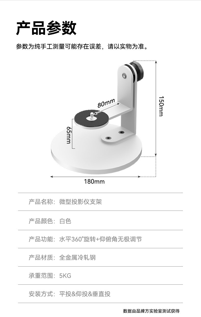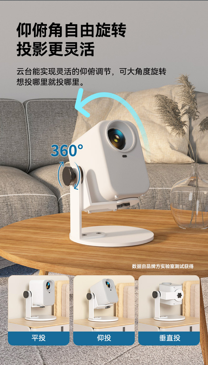 Кронштейн для проектора Three Strategies, 360° вращающаяся база, настольный, для гостиной, прикроватный, стандарт 1/4, белая база