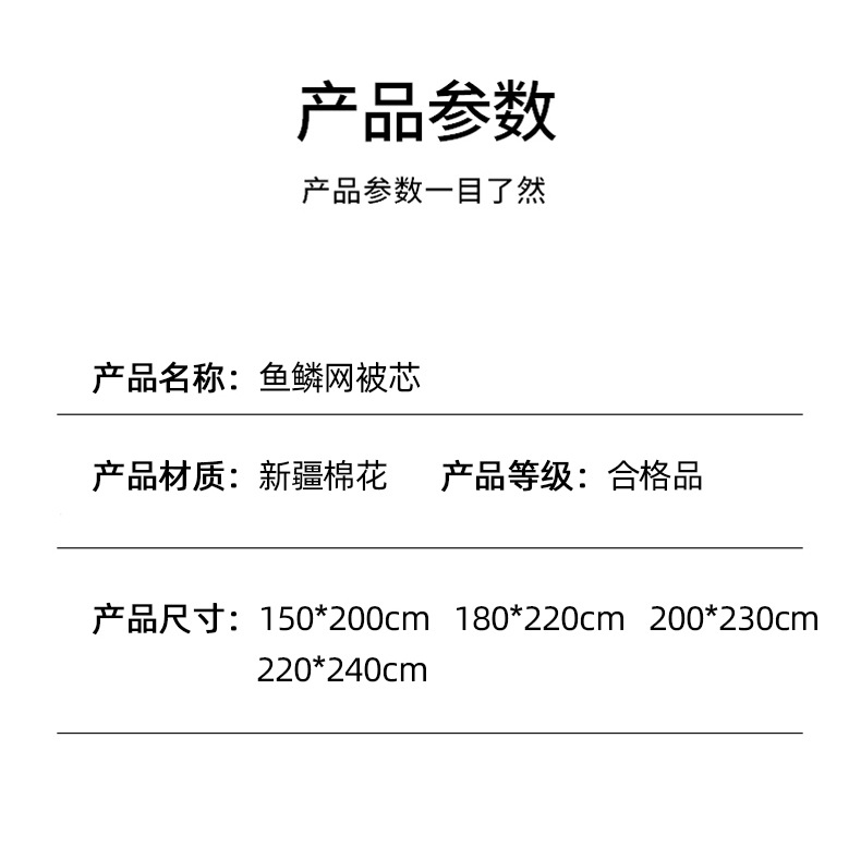 ![]() | 220*240cm 4.5kg | Fish scale net quilt core | ¥91.9 / ≈ 1 107 ₽ | 7984 | 5947676241093 | |