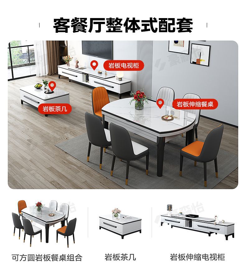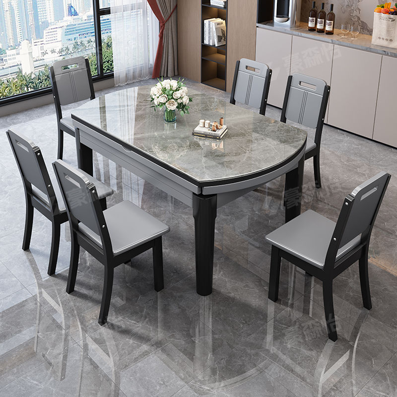 Сланцевый обеденный стол и стулья, современный простой обеденный стол для маленькой квартиры, выдвижной квадратный и круглый стол, двуцелевой