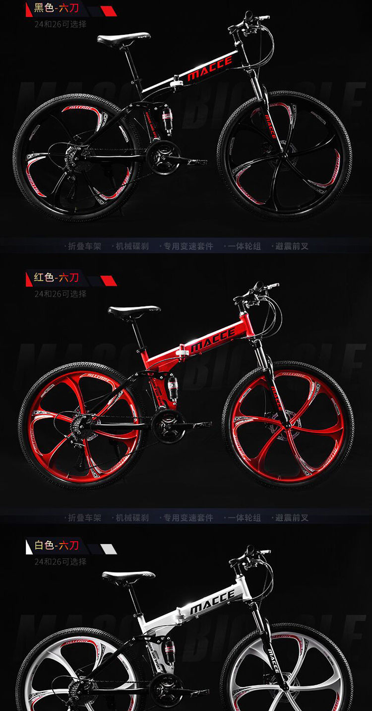 Горный складной велосипед для взрослых с одним колесом, двойная внедорожная трансмиссия для мальчиков и девочек 24 дюйма 26 дюймов оптом