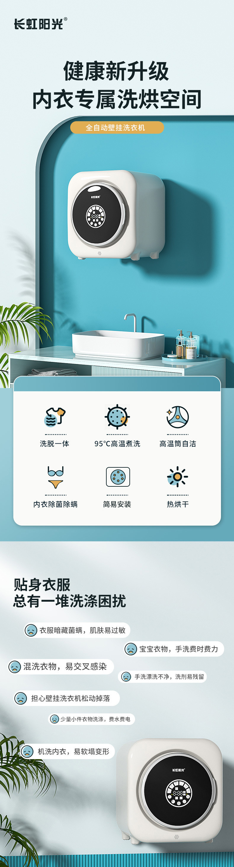 Полностью автоматическая настенная стиральная машина Changhong Sunshine, стирка, сушка и сушка в одном, для малышей и детей, малый бытовой стиральный аппарат для интимных вещей