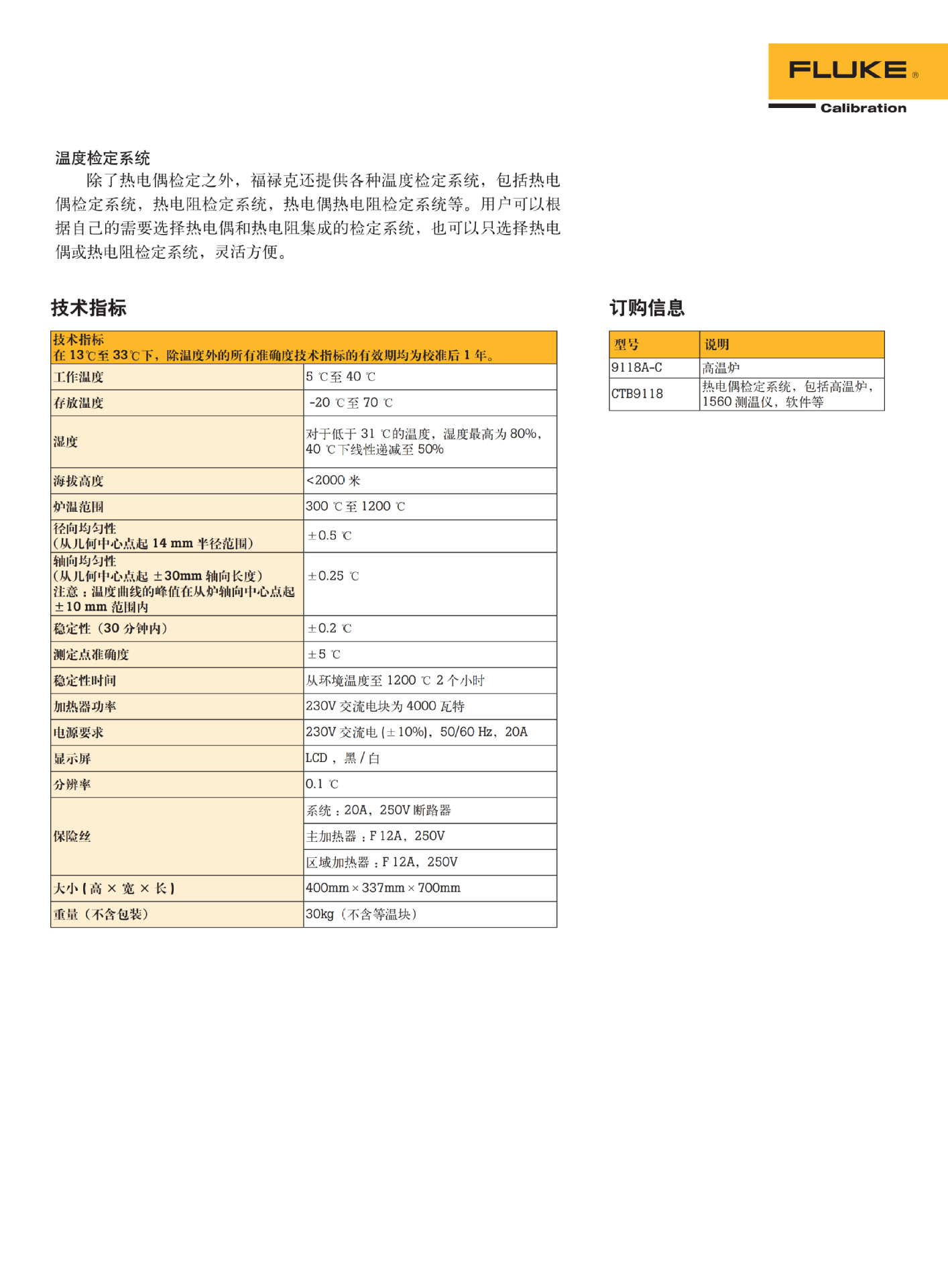 Калибровочная печь для термопар Fluke 9118A