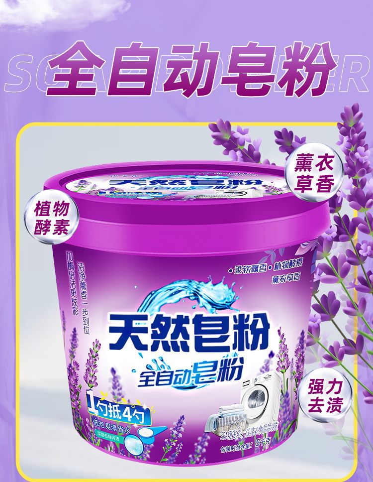 Экстра большой 6кг Порошок для стирки Бочка Лаванда Порошок для стирки Долговечный аромат Мощное удаление загрязнений 0.5-6кг
