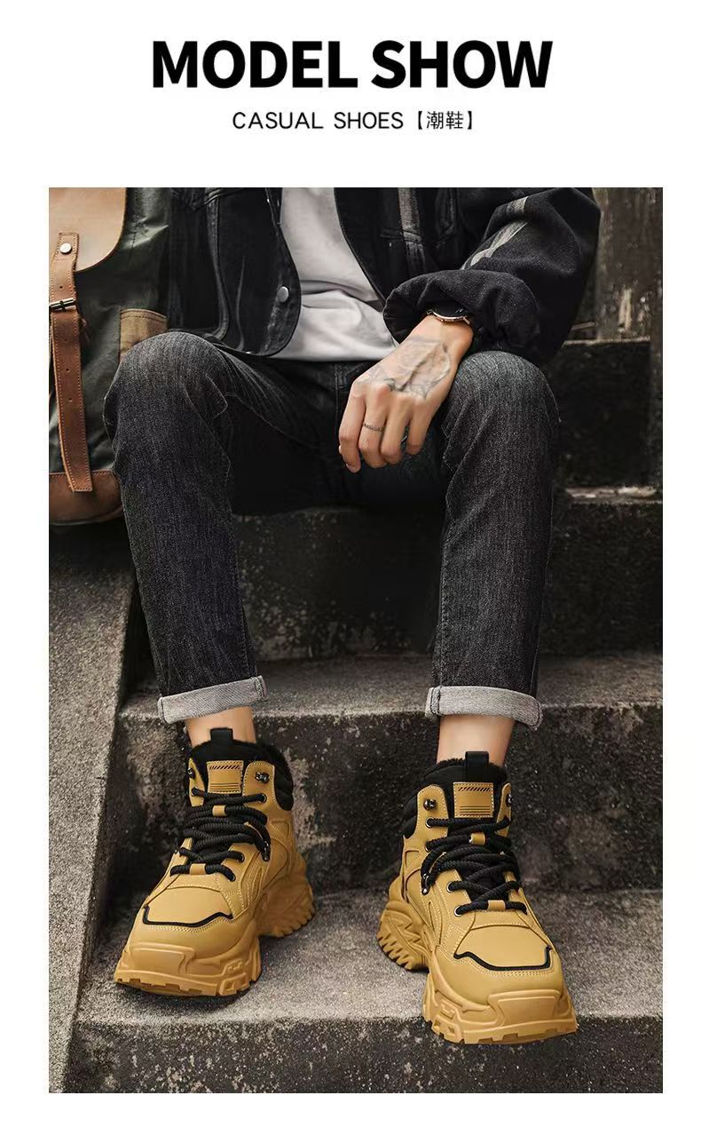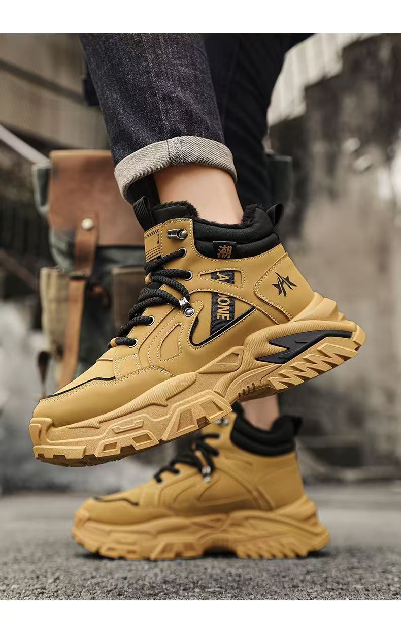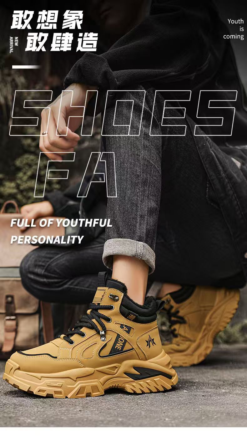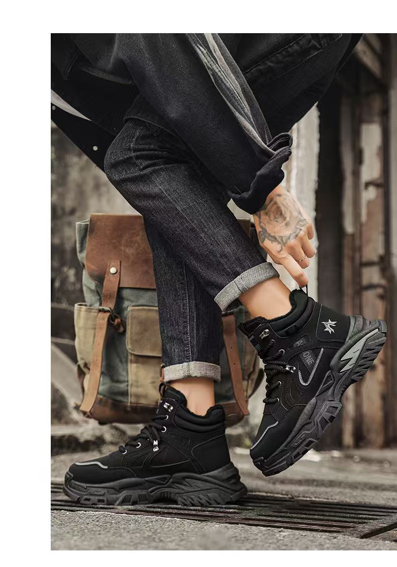 Высокие мужские зимние ботинки 2025 нового сезона, плюшевые, теплые, утолщенные, спортивные, для пап, северо-восточные уличные снежные ботинки
