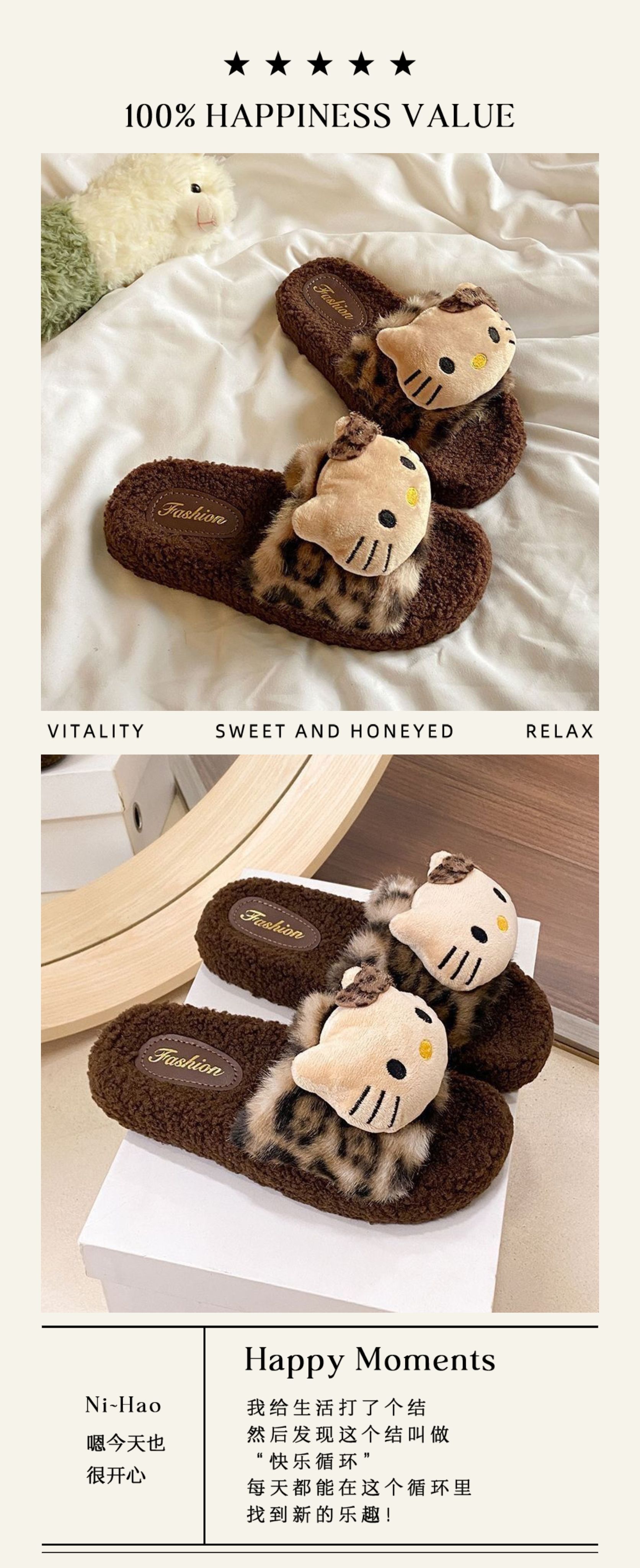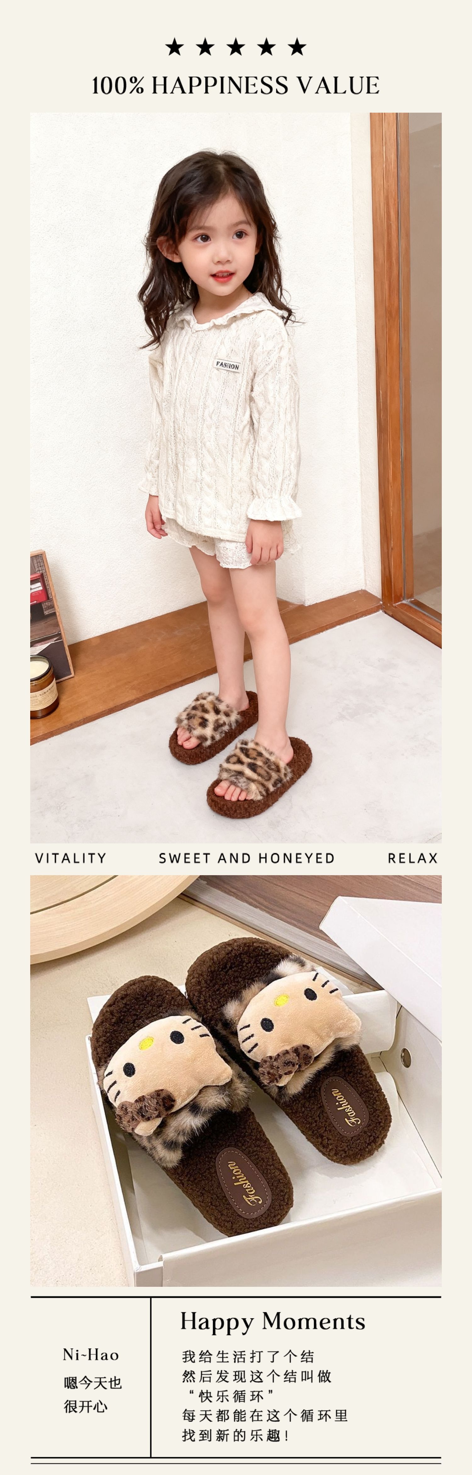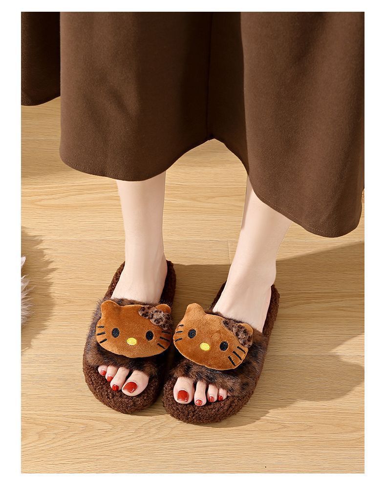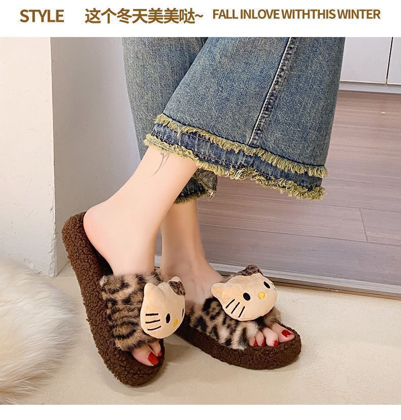 Хлопковые тапочки для девочек, милые, с леопардовым принтом, KT Cat, для дома, с нескользящей толстой подошвой, осень-зима