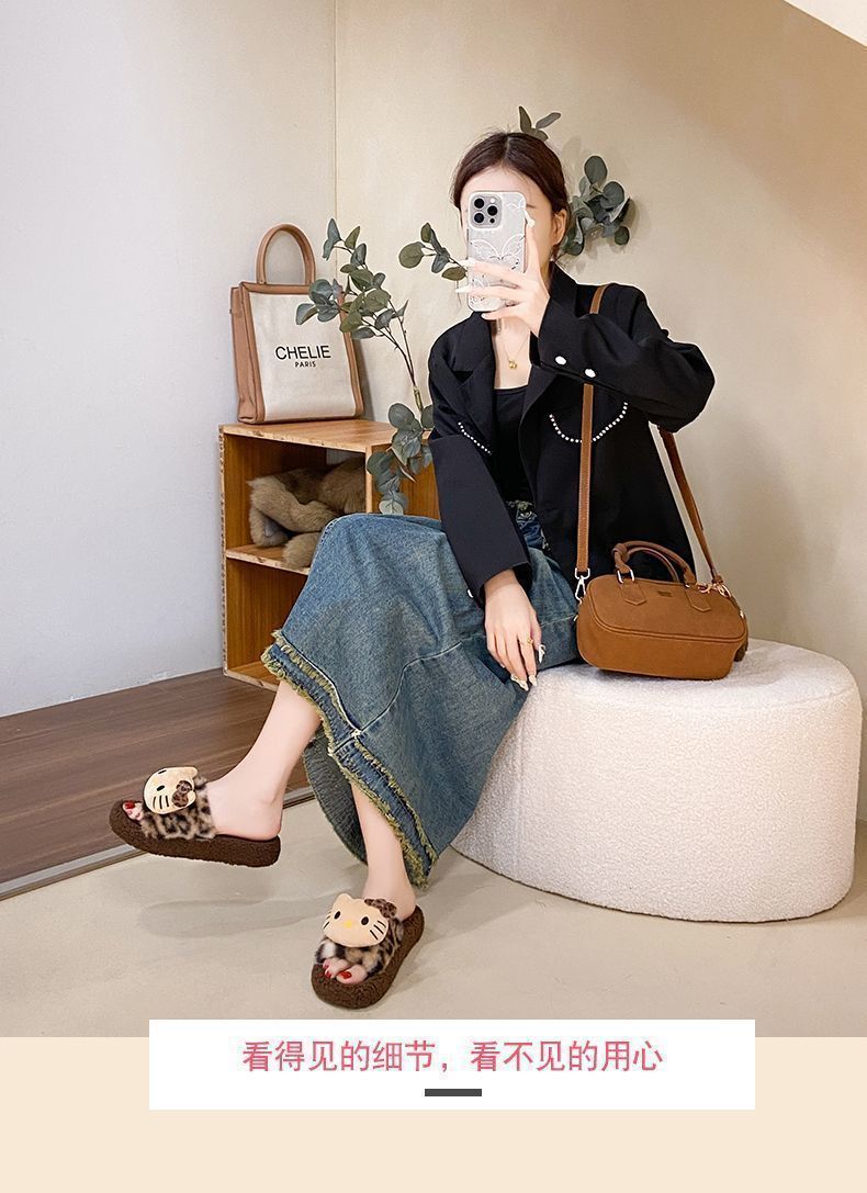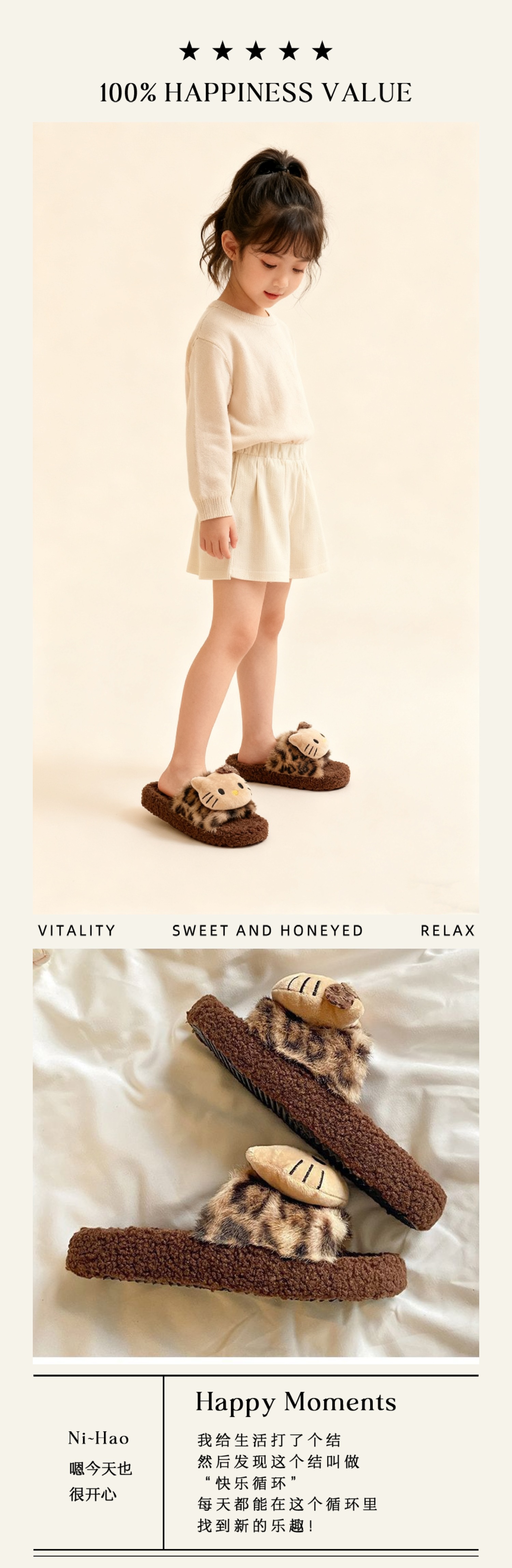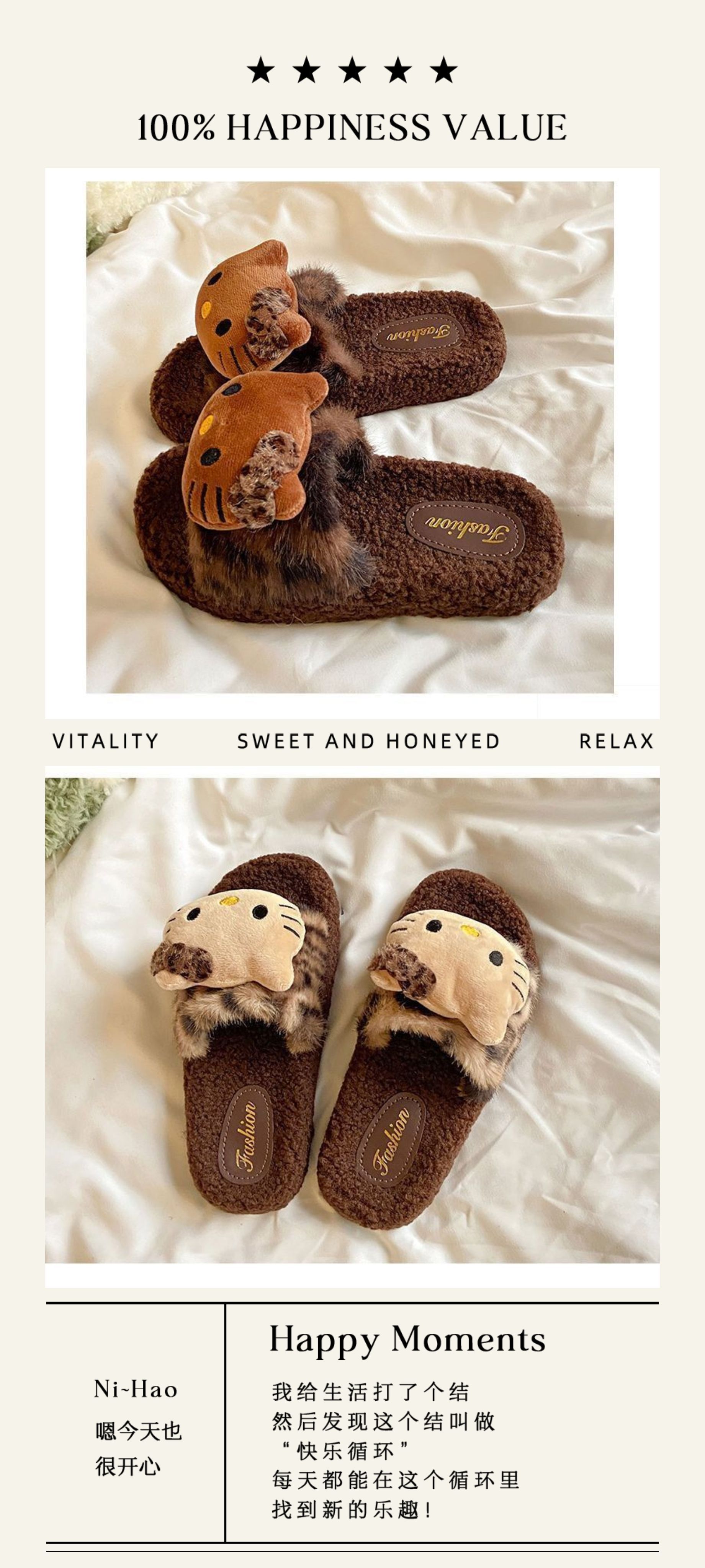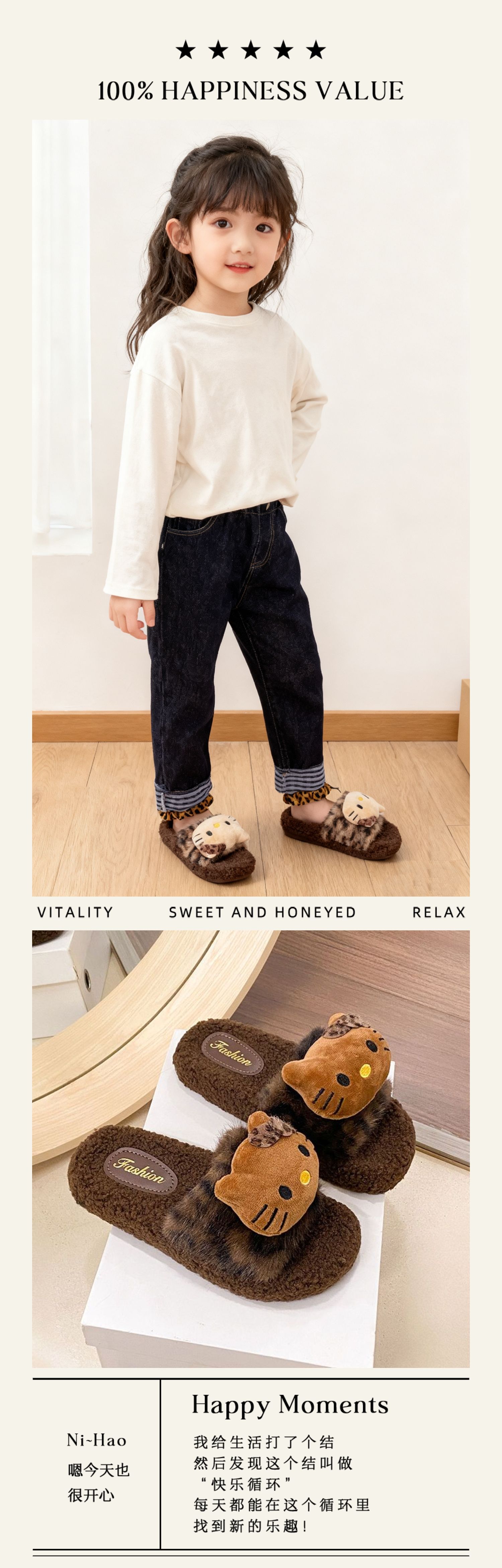 Хлопковые тапочки для девочек, милые, с леопардовым принтом, KT Cat, для дома, с нескользящей толстой подошвой, осень-зима