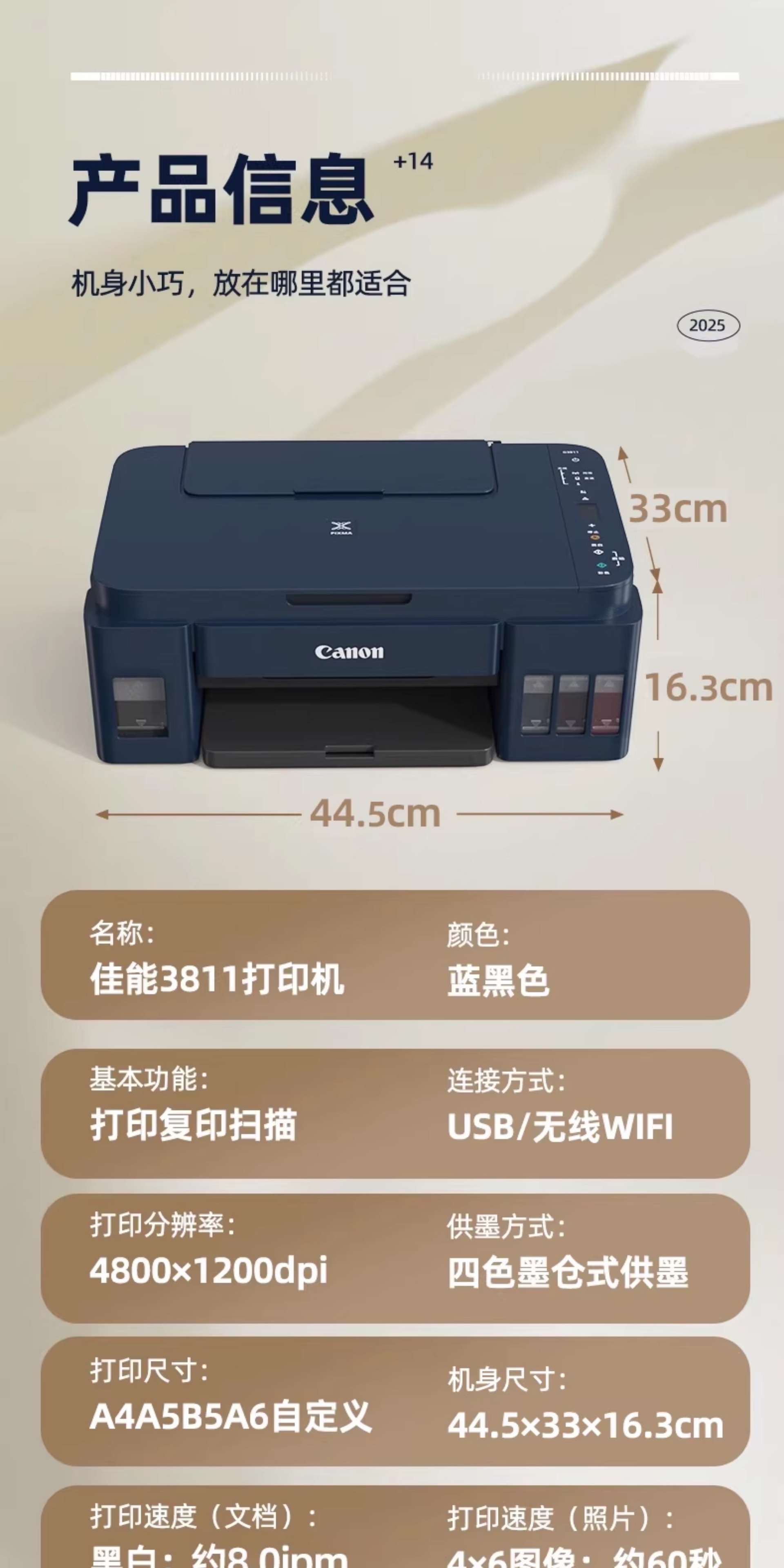 Принтер G3811 цветной, с картриджем, копир и сканер, многофункциональная машина для домашнего использования, компактный, можно подключить к мобильному телефону беспроводным образом