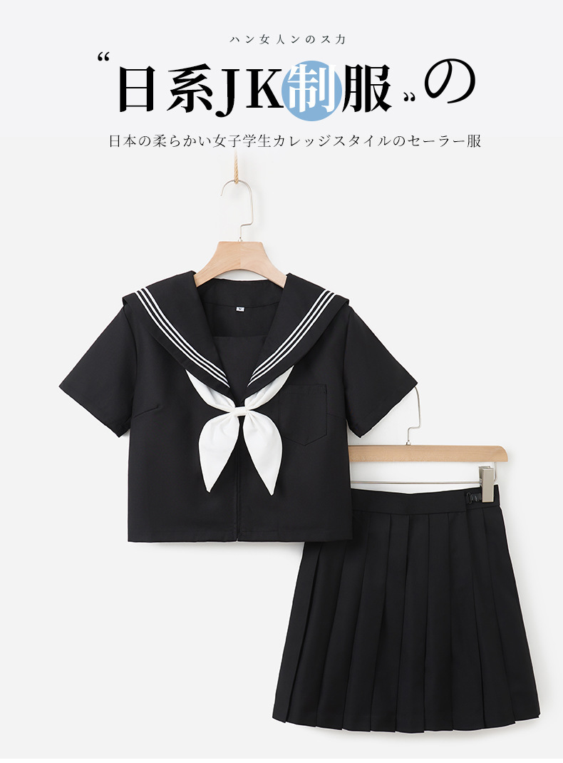Черная трехпредметная униформа JK для женщин, традиционный японский стиль, базовый костюм моряка, сладкий комплект с короткой юбкой