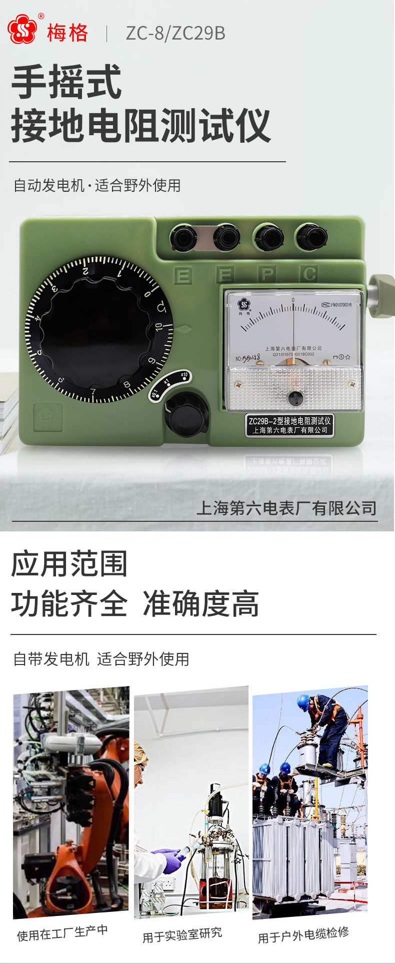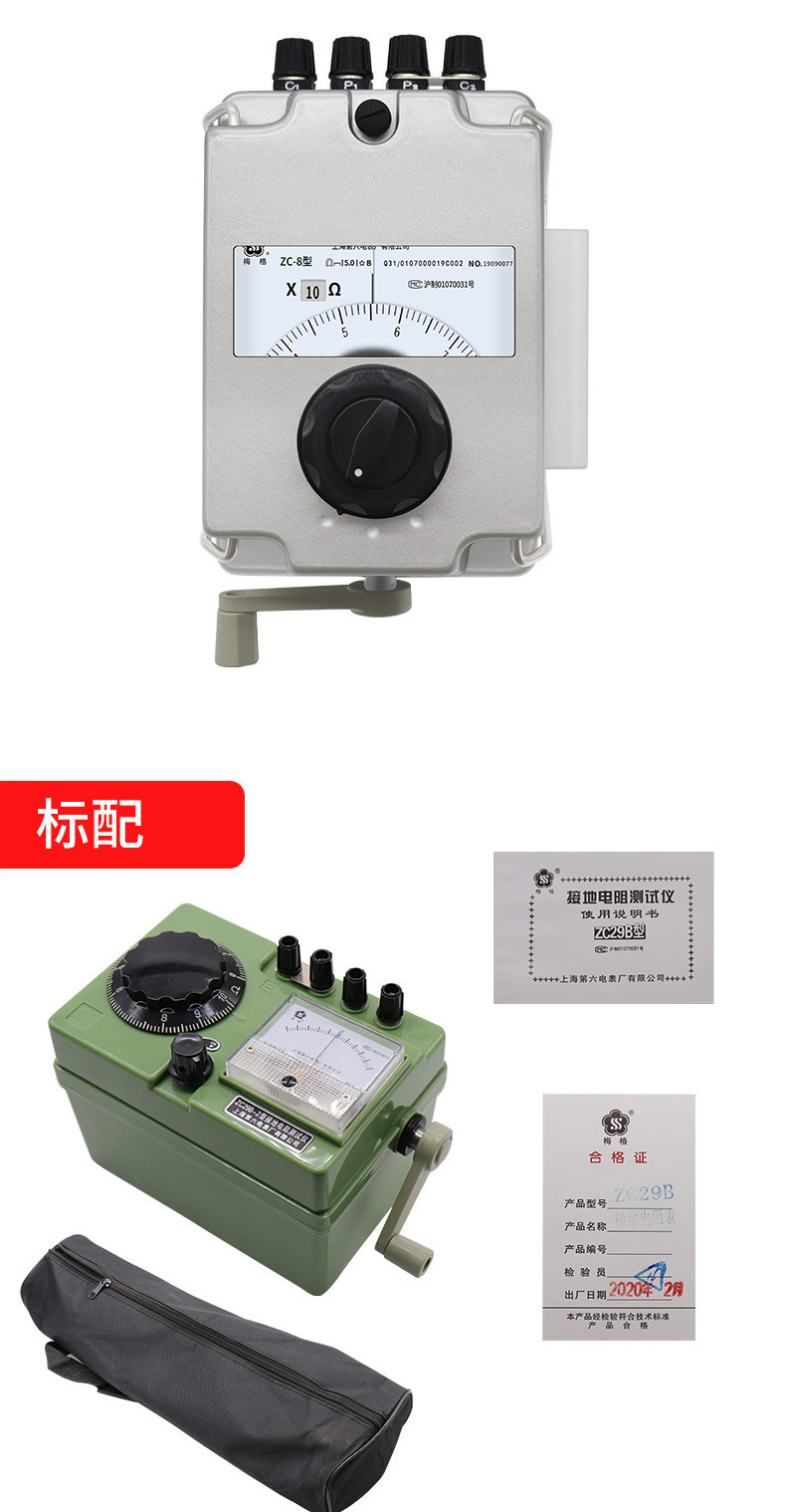 Тестер сопротивления заземления Meg Zc-8 от Шанхайского завода электрических счетчиков, тестер сопротивления защиты от молний Zc29B