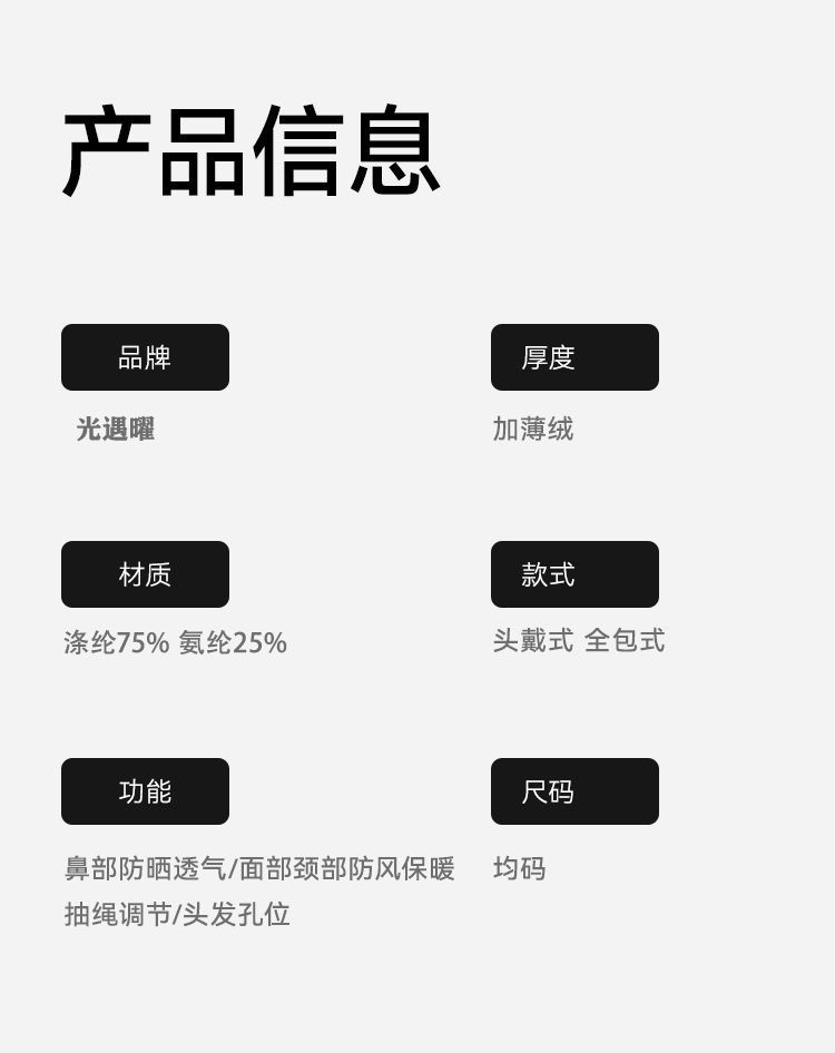 ![]() | Full head cover model [double-layer nose protection/windproof and water-repellent] | ¥15.5 / ≈ 187 ₽ | 9999904 | 5945043817385 | |