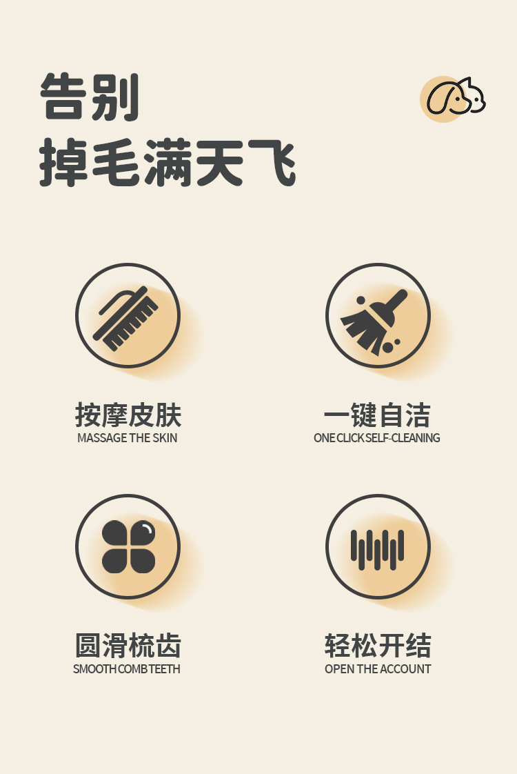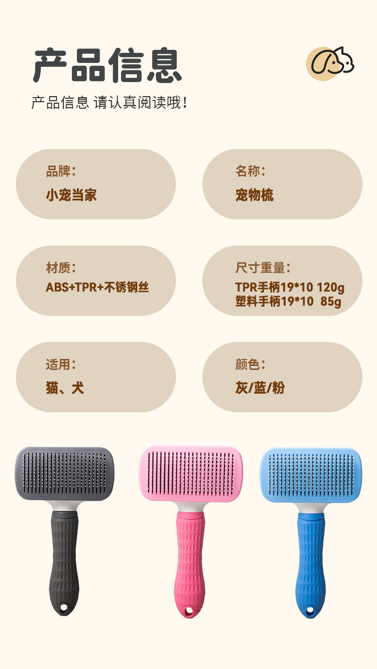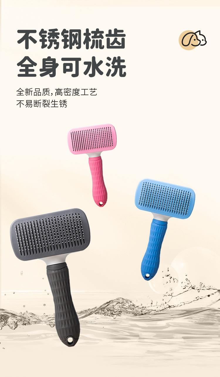Расческа для животных Уборка Уборка волос Однокнопочная расческа для собак Нержавеющая сталь Самоочищающаяся расческа для удаления волос