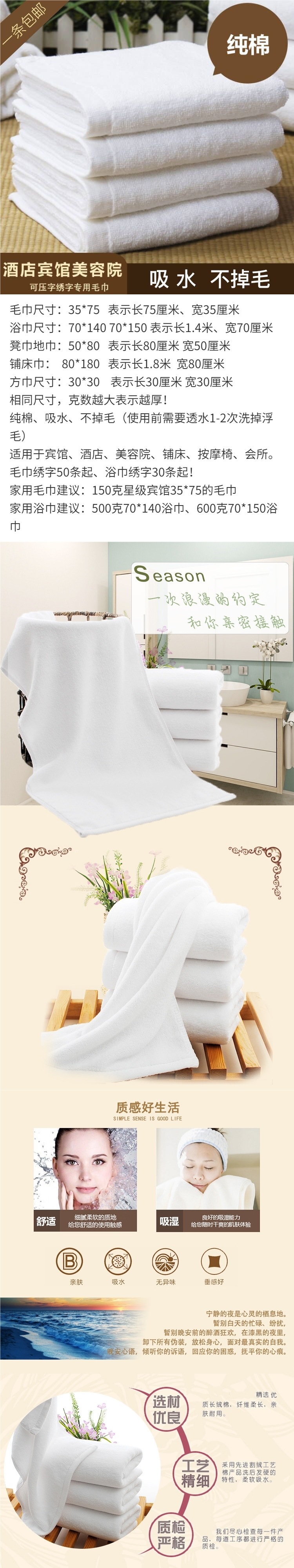 Банное полотенце для отелей, белое полотенце, 100% хлопок, оптовая продажа, для салонов красоты, утолщенное и без ворса