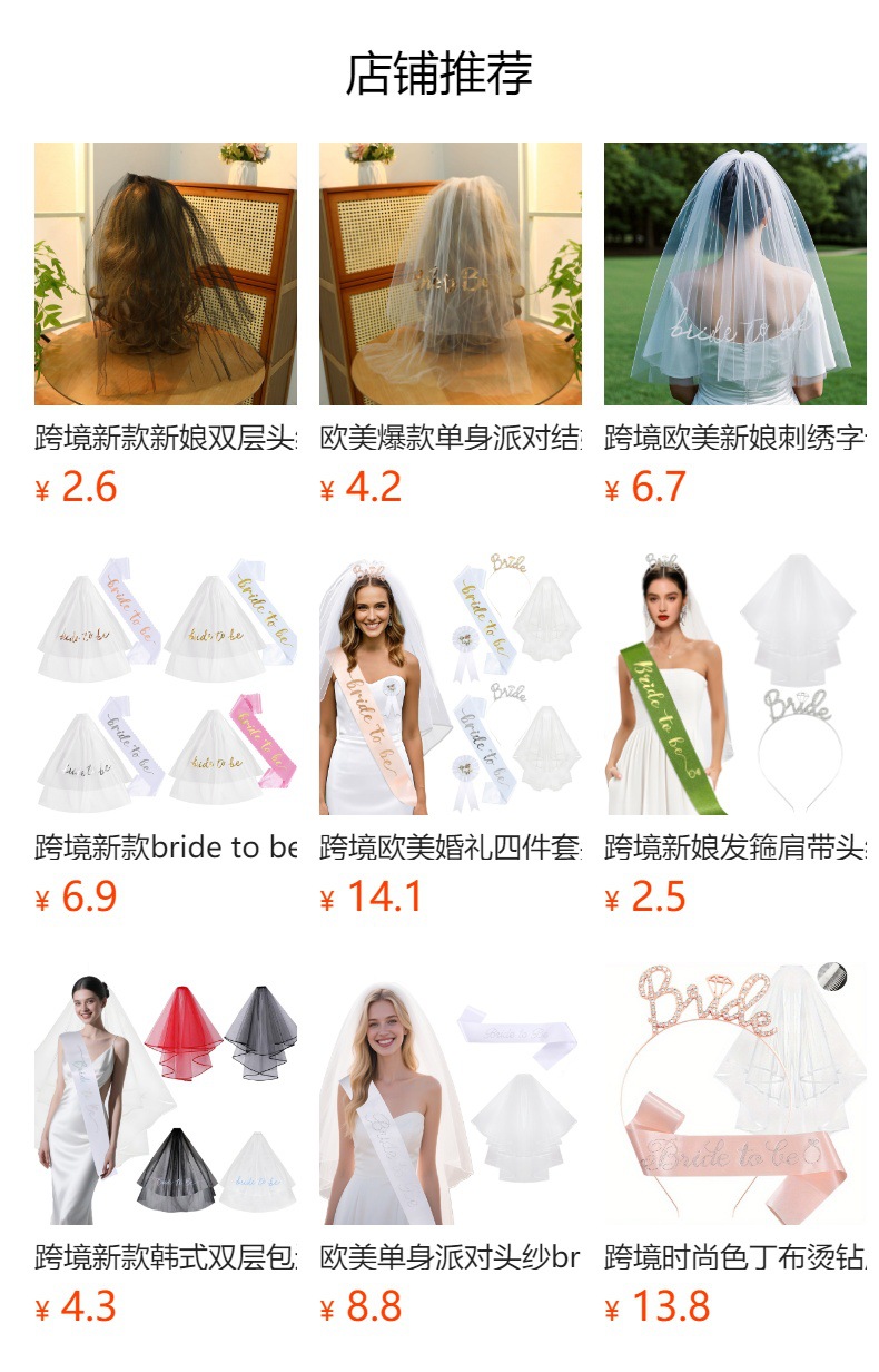 ![]() | Ts012 pearl embroidered veil | Below 60cm | ¥8.8 / ≈ 106 ₽ | 0 | 5946258921320 | |